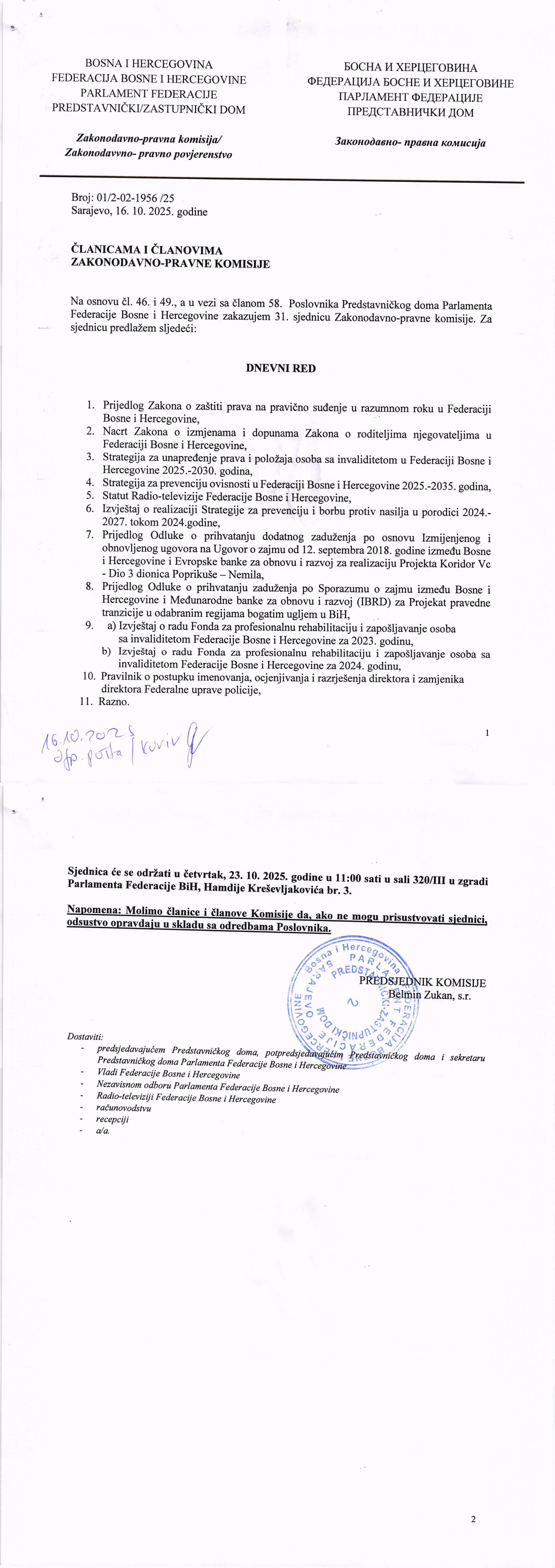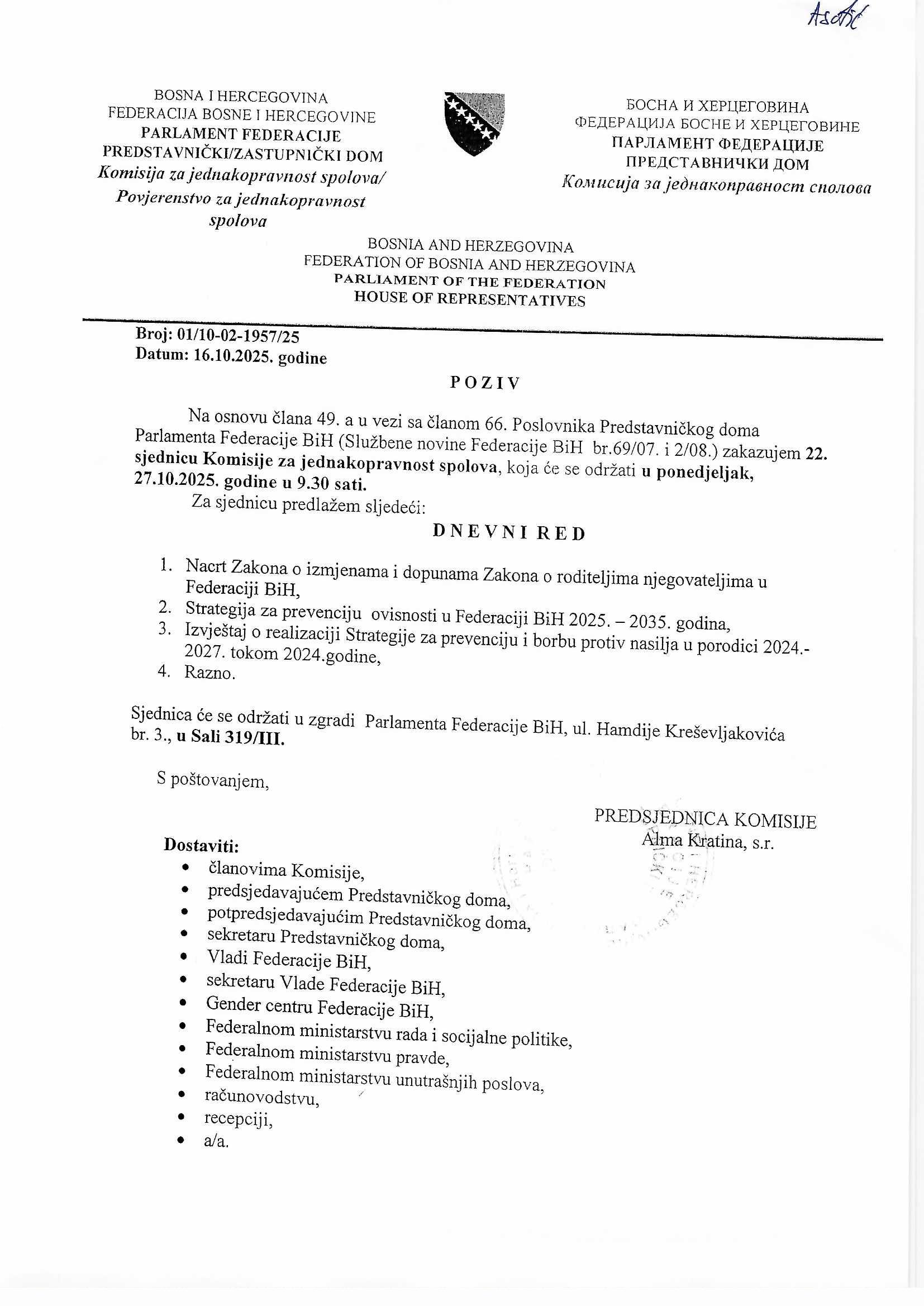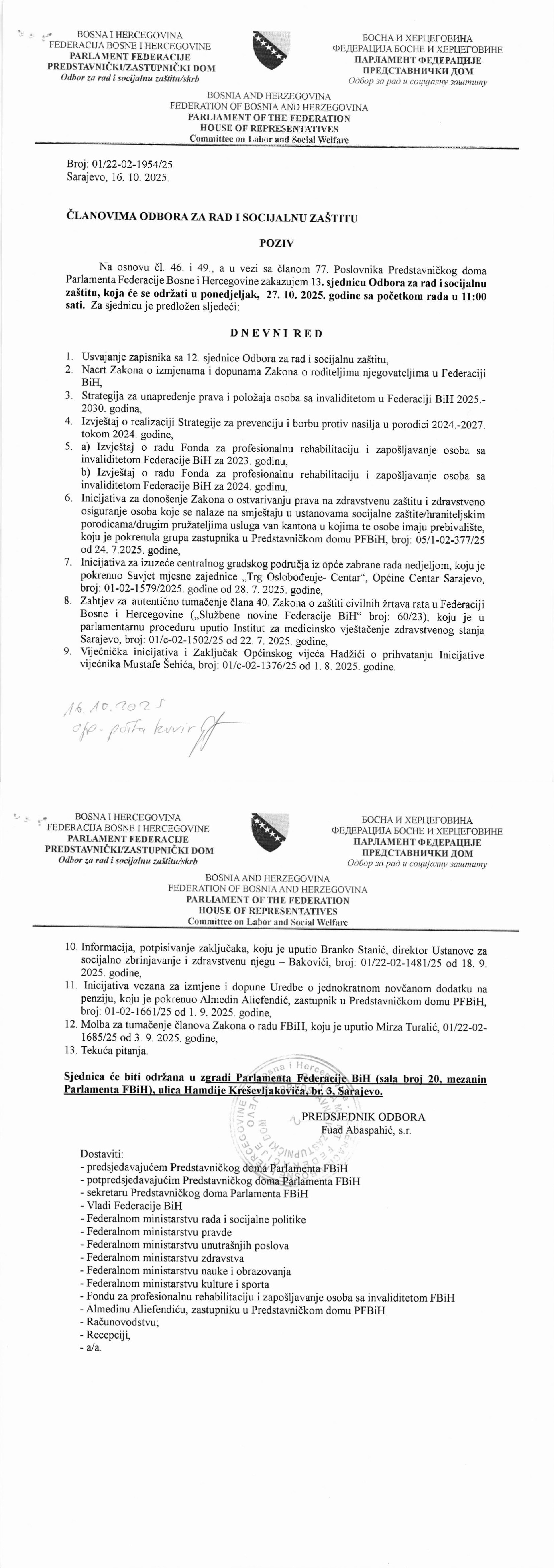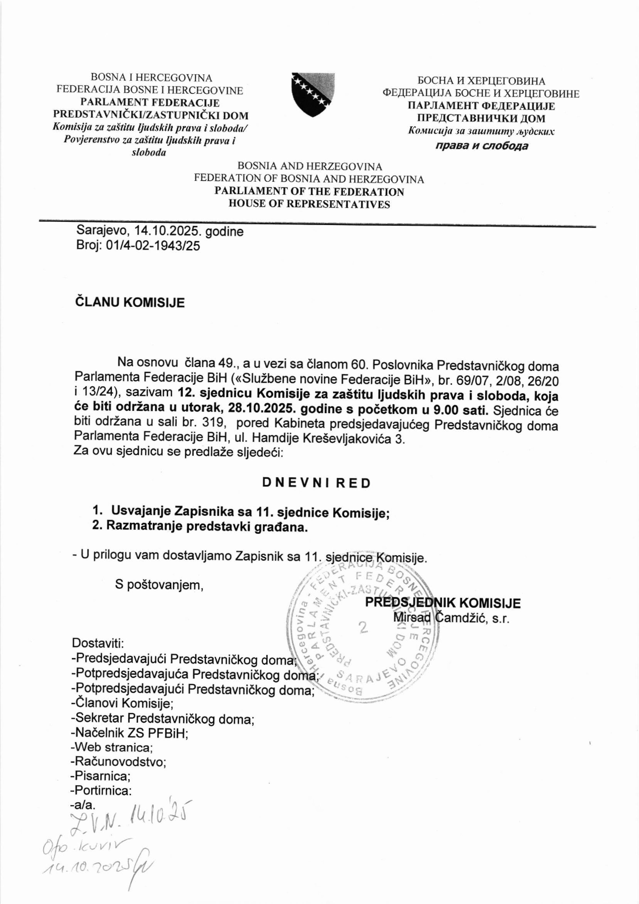 Poziv za 17. sjednicu Odbora za poljoprivredu, vodoprivredu i šumarstvo 22.10.2025 Najave Pročitaj više