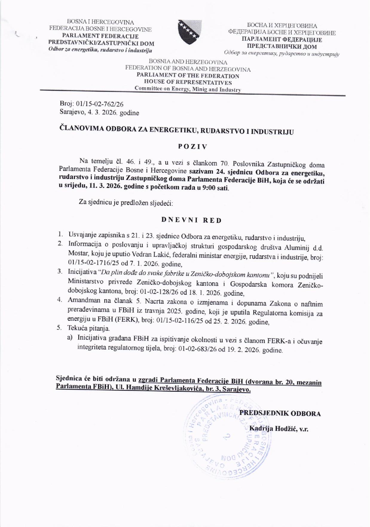 24. sjednica Odbora za energetiku, rudarstvo i industriju