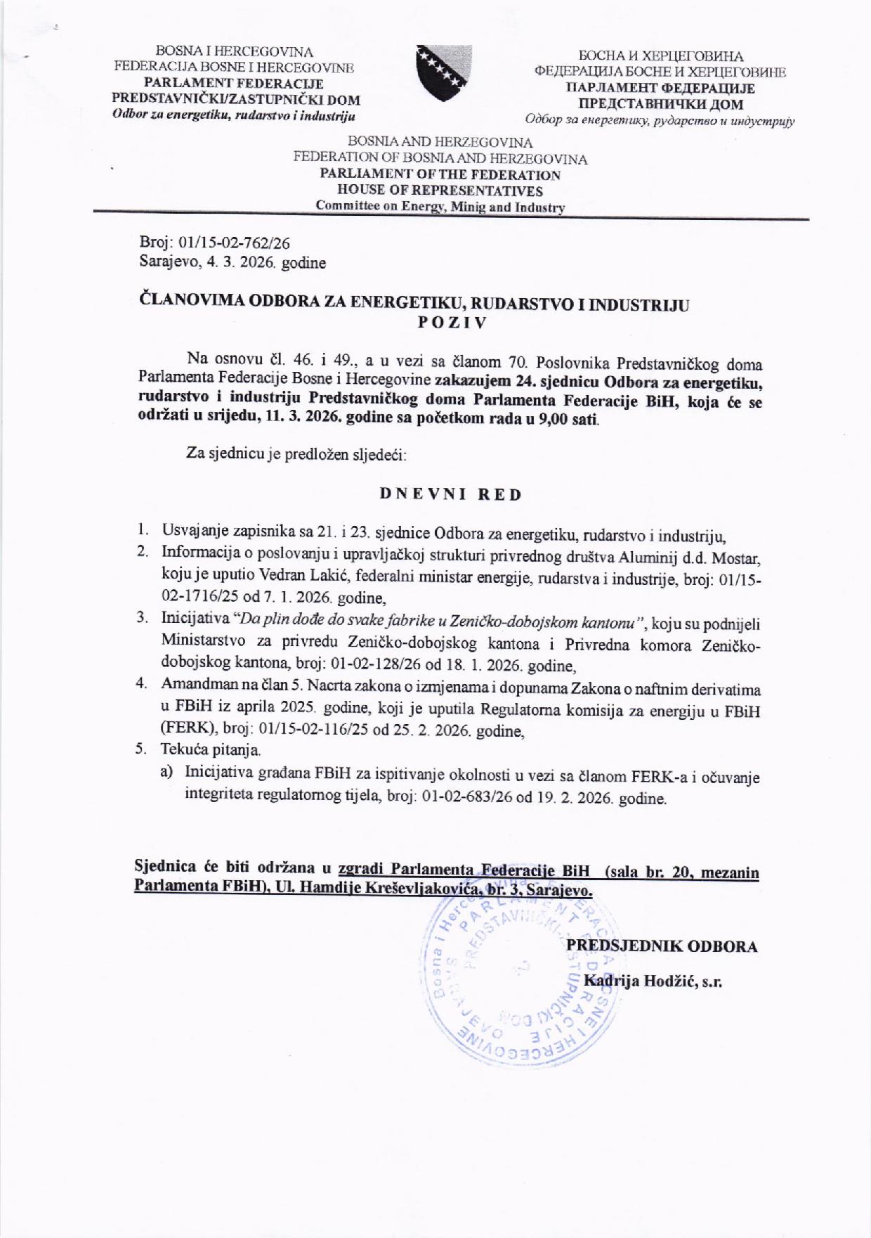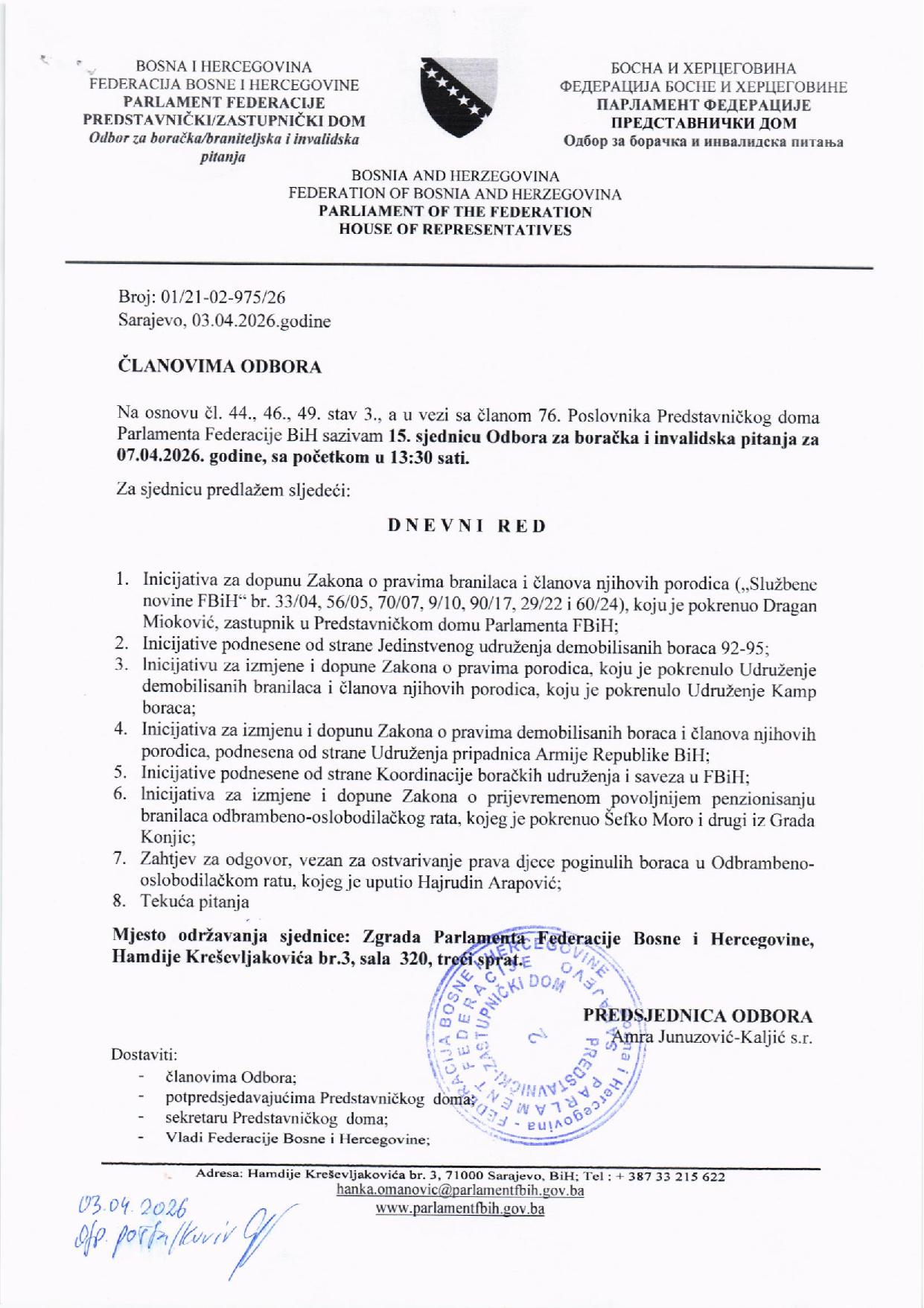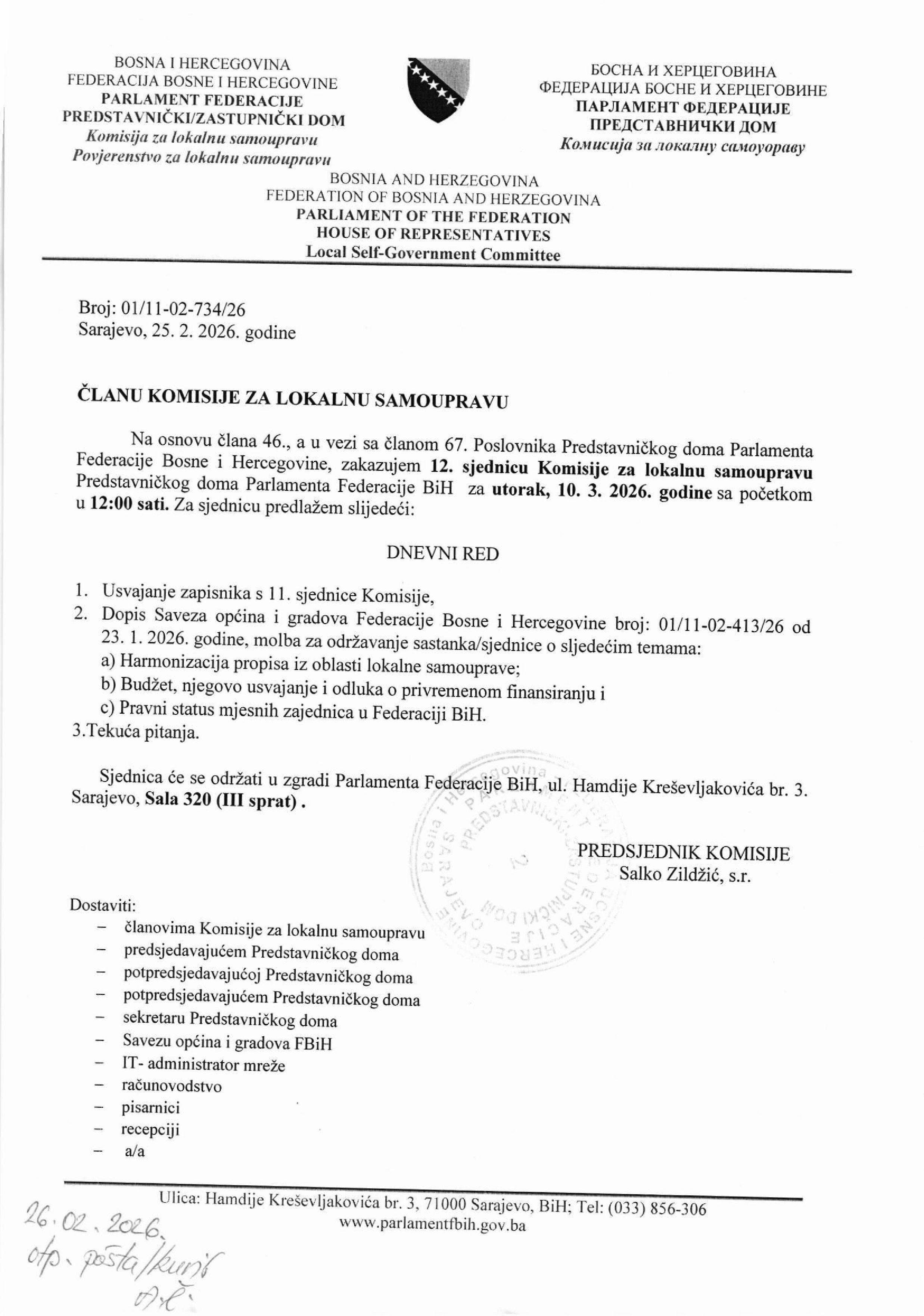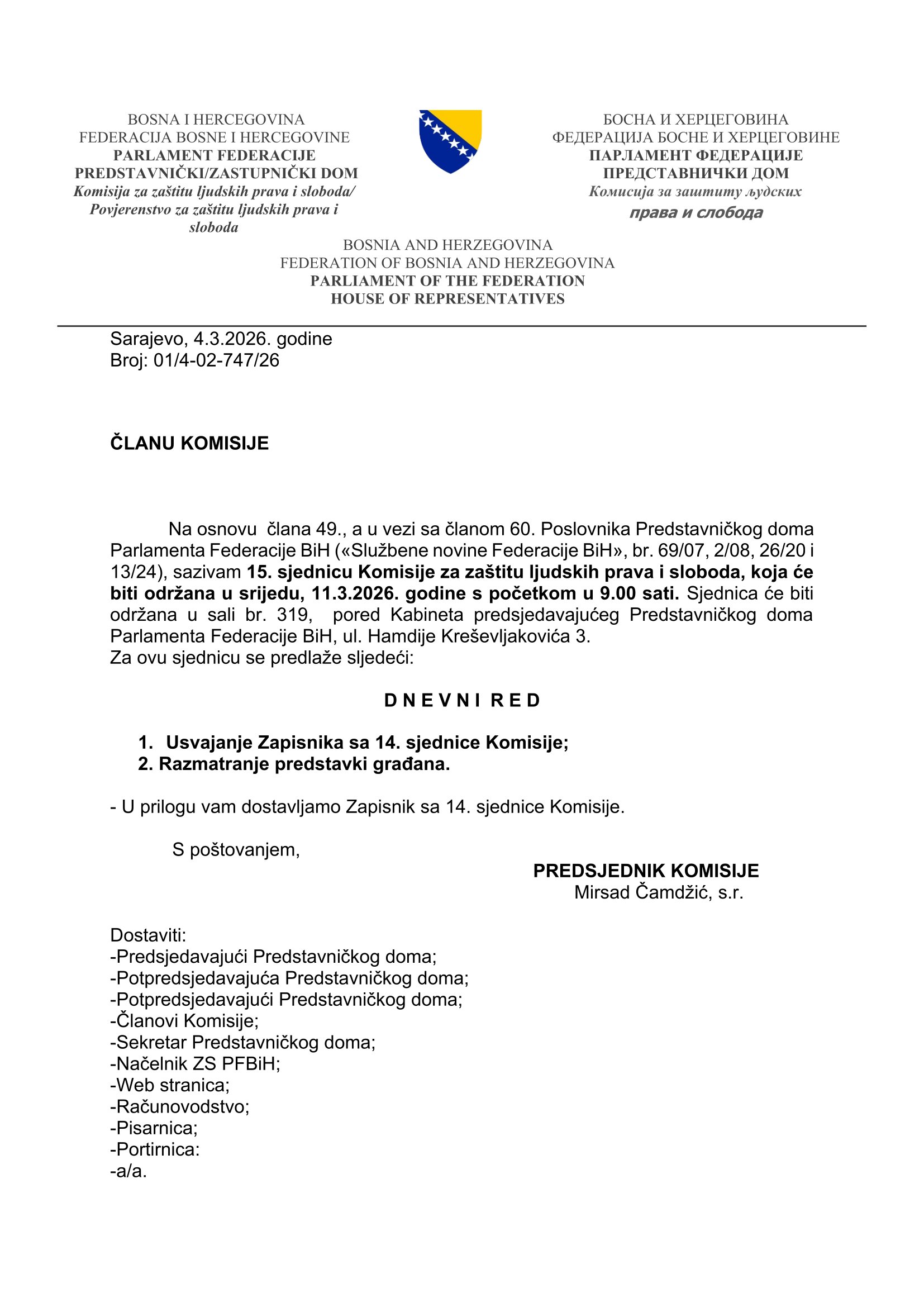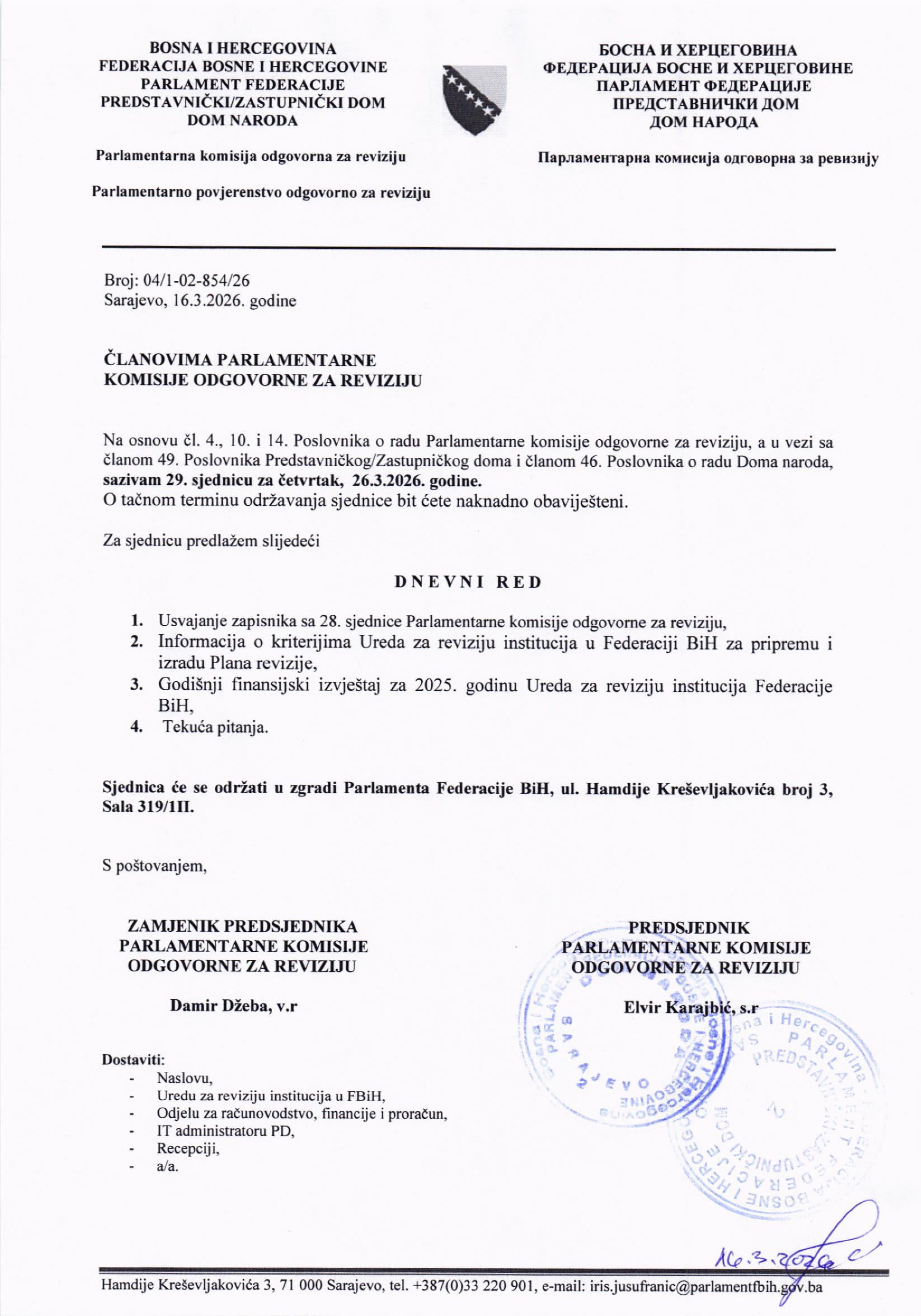 Poziv za 2. sjednicu Radne skupine za provedbu postupka izbora dvoje sudija Ustavnog suda BiH koje bira Predstavnički dom Parlamenta FBiH 15.04.2026 Najave Pročitaj više