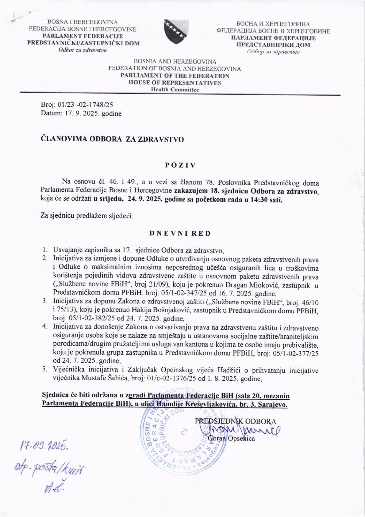 Poziv za 2. vanrednu sjednicu Odbora za prostorno uređenje, stambeno-komunalnu politiku, ekologiju i turizam 25.09.2025 Najave Pročitaj više