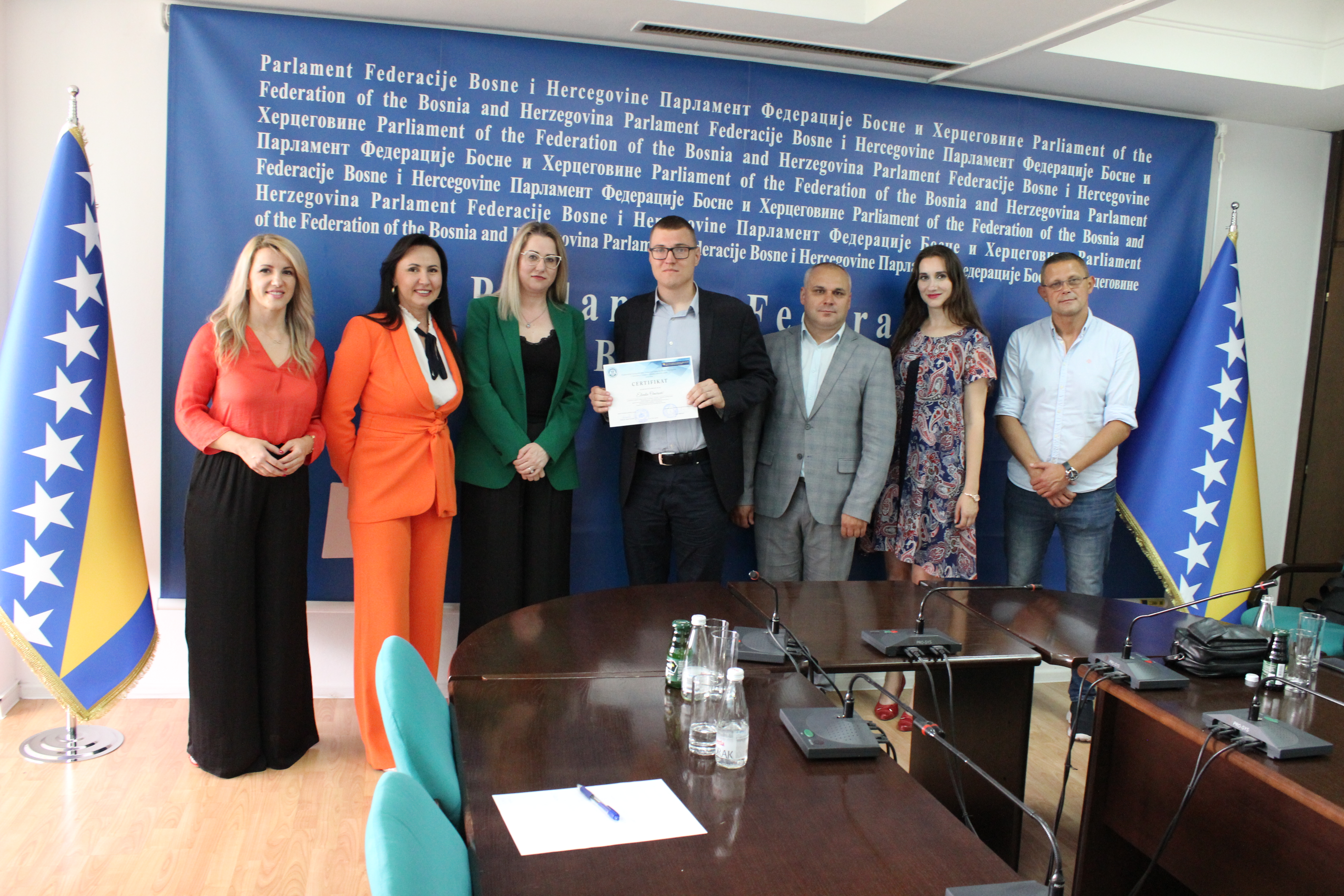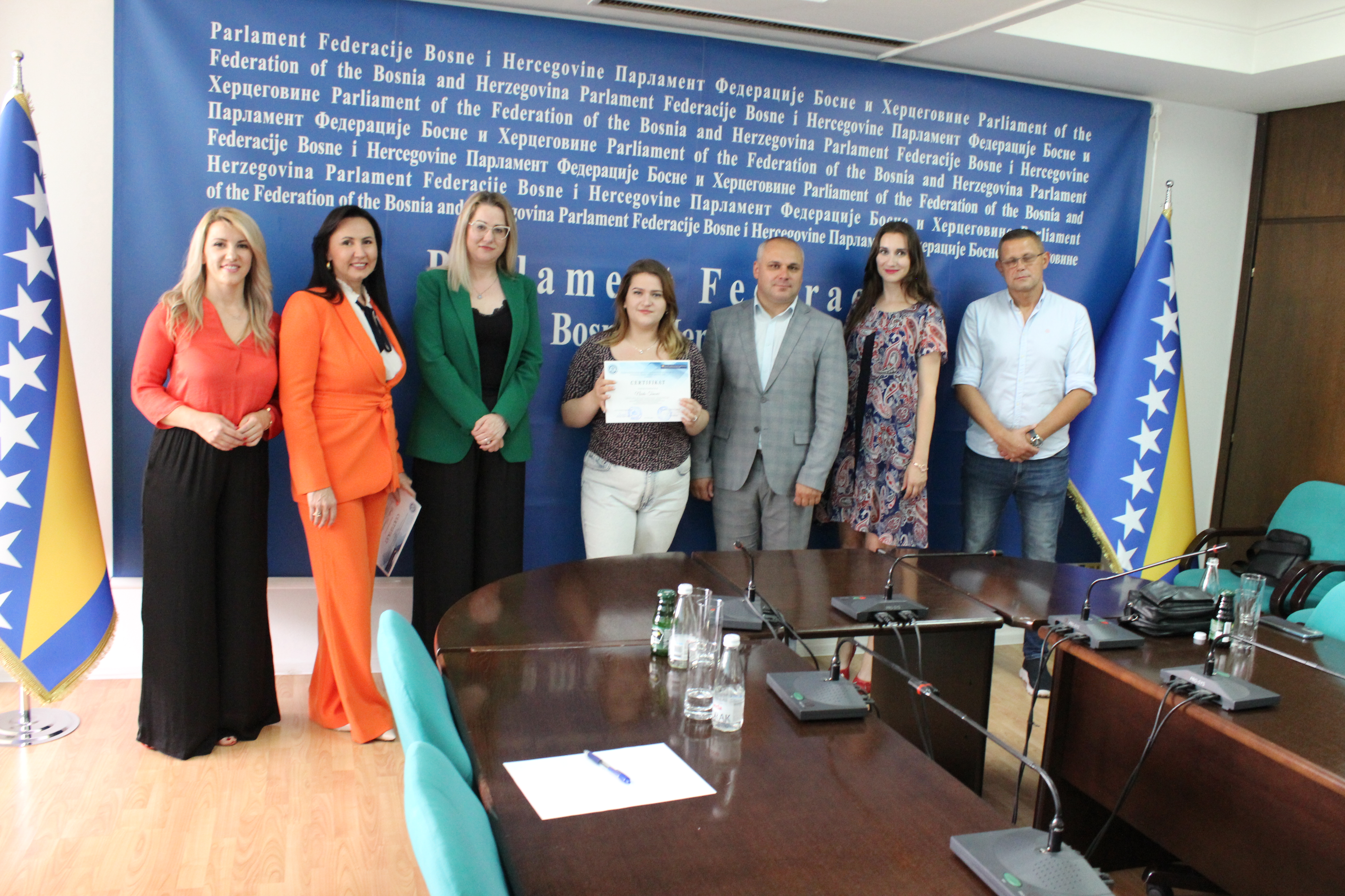 The House of Representatives of the Parliament of the Federation of Bosnia and Herzegovina ceremoniously awarded certificates to the students of the Faculty of Political Sciences for successful student internships