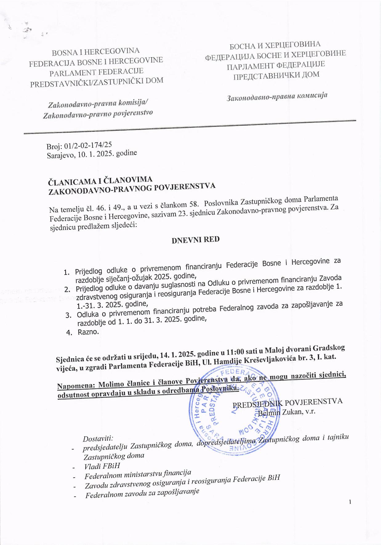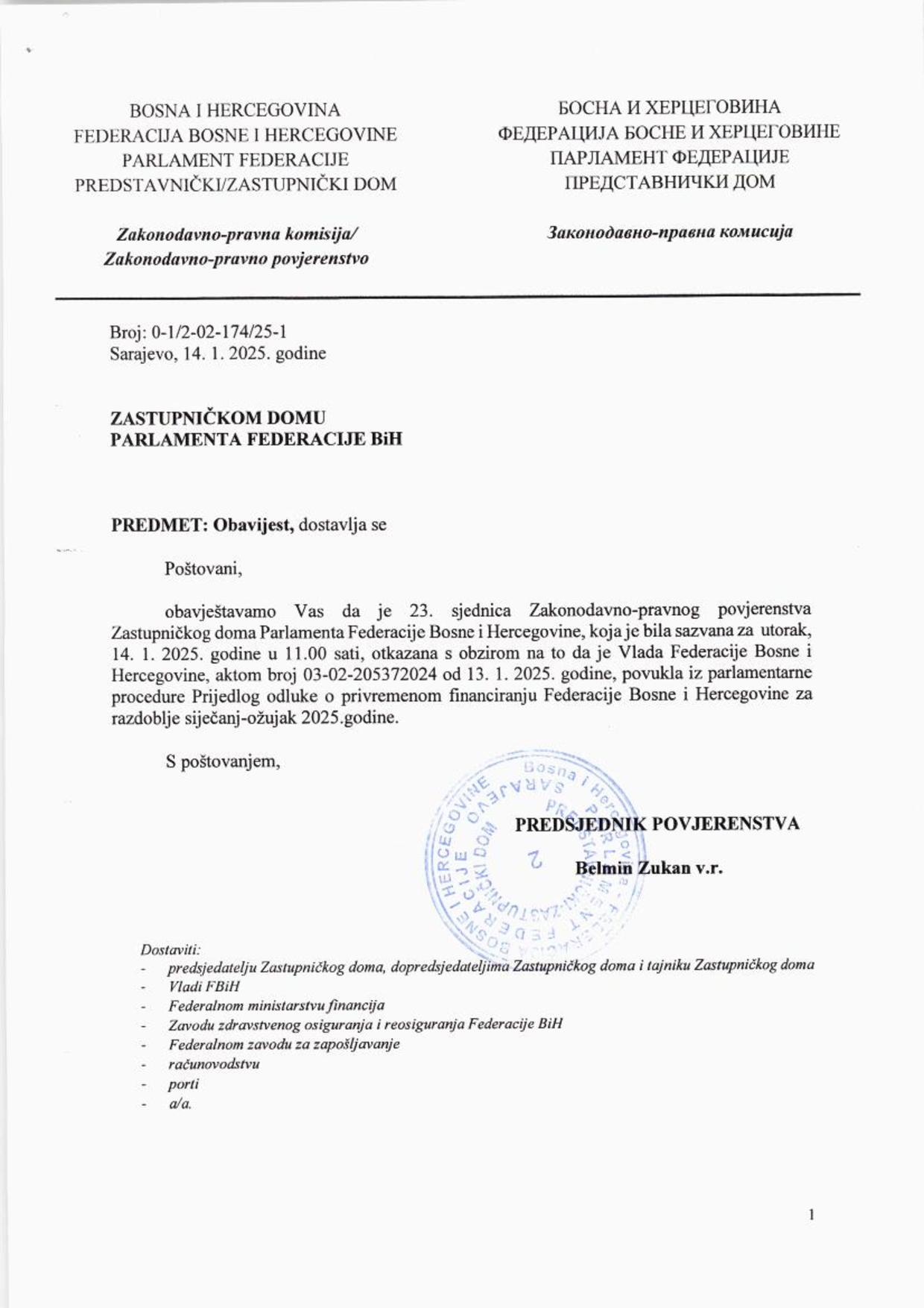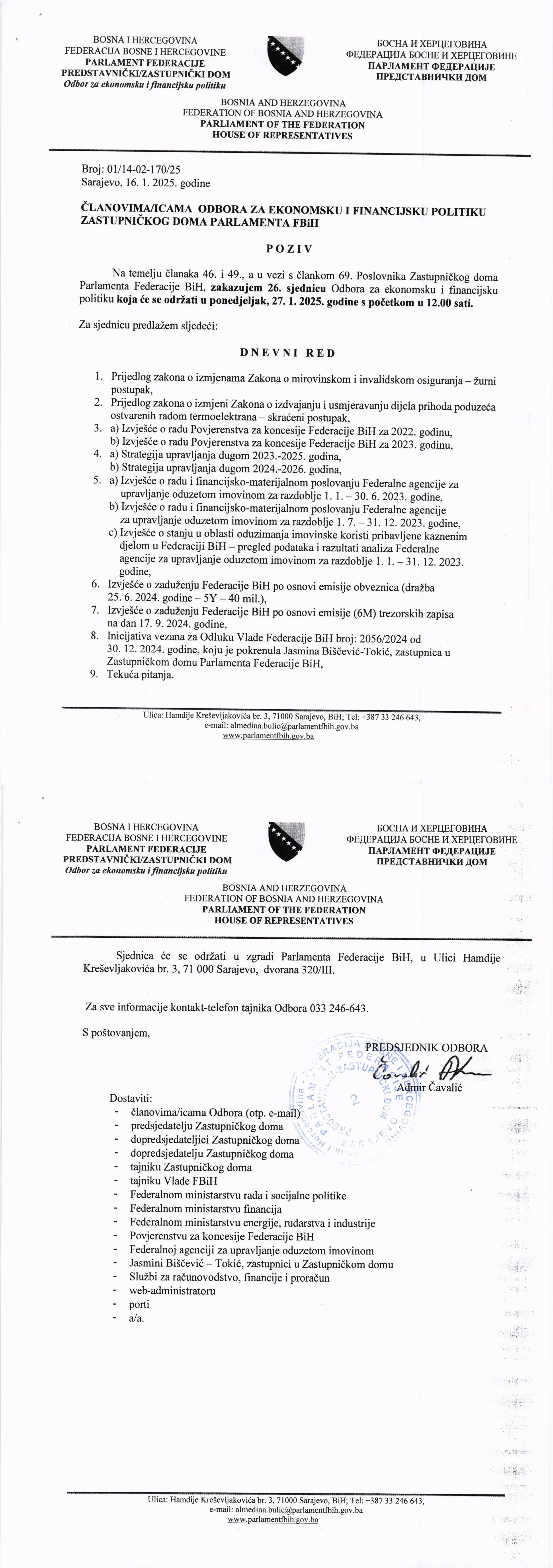 Obavijest o otkazivanju 26. sjednice Odbora za ekonomsku financijsku politiku 15.01.2025 Najave HR Pročitaj više
