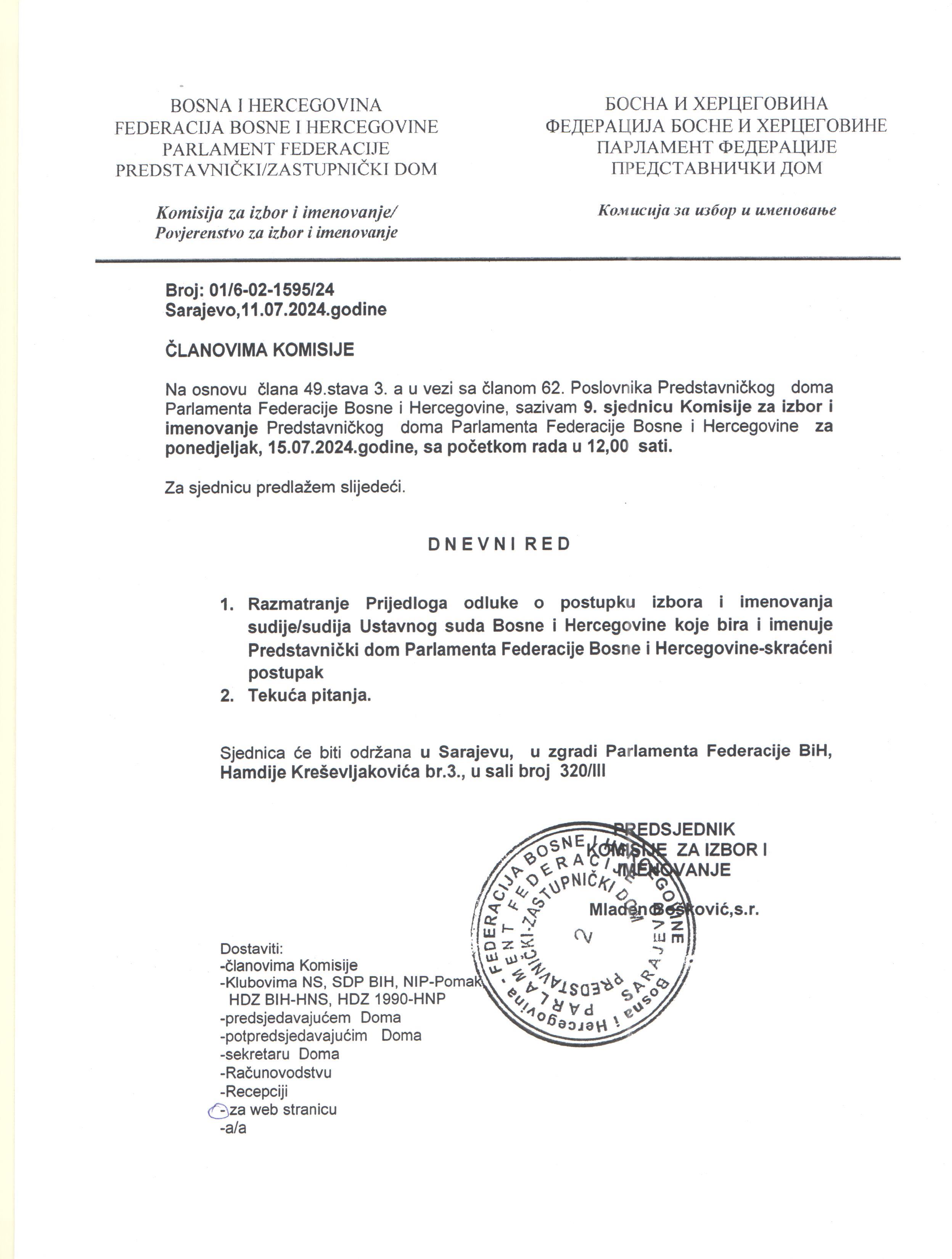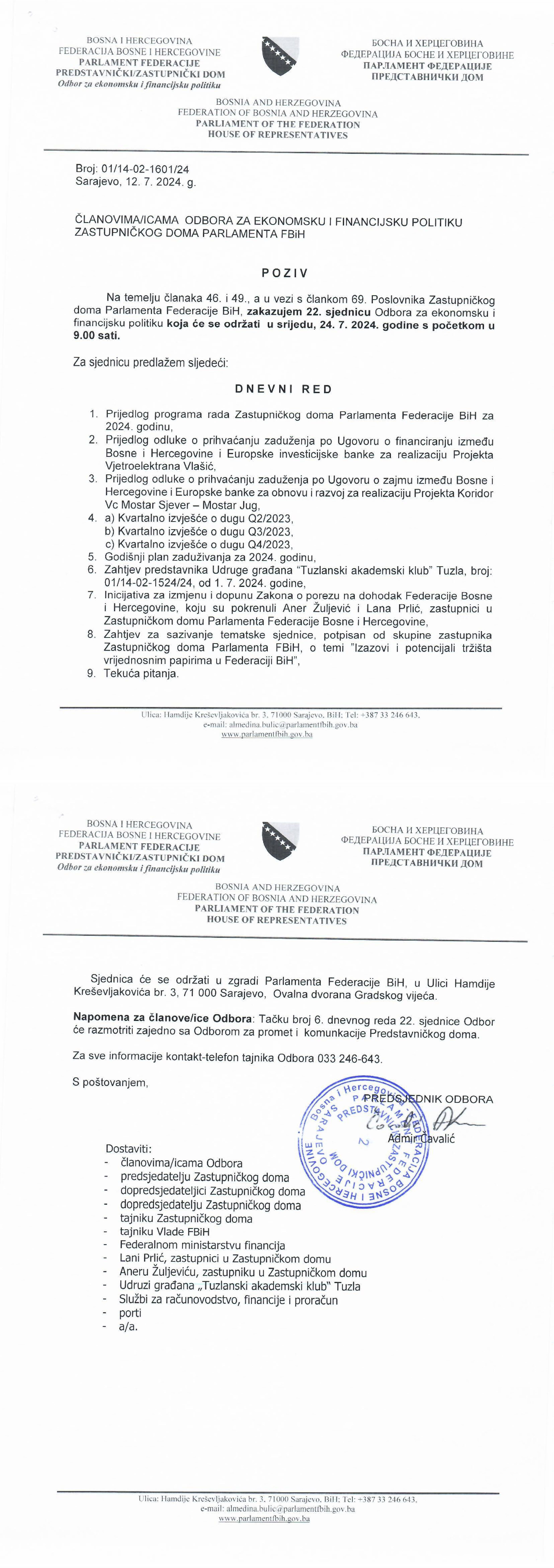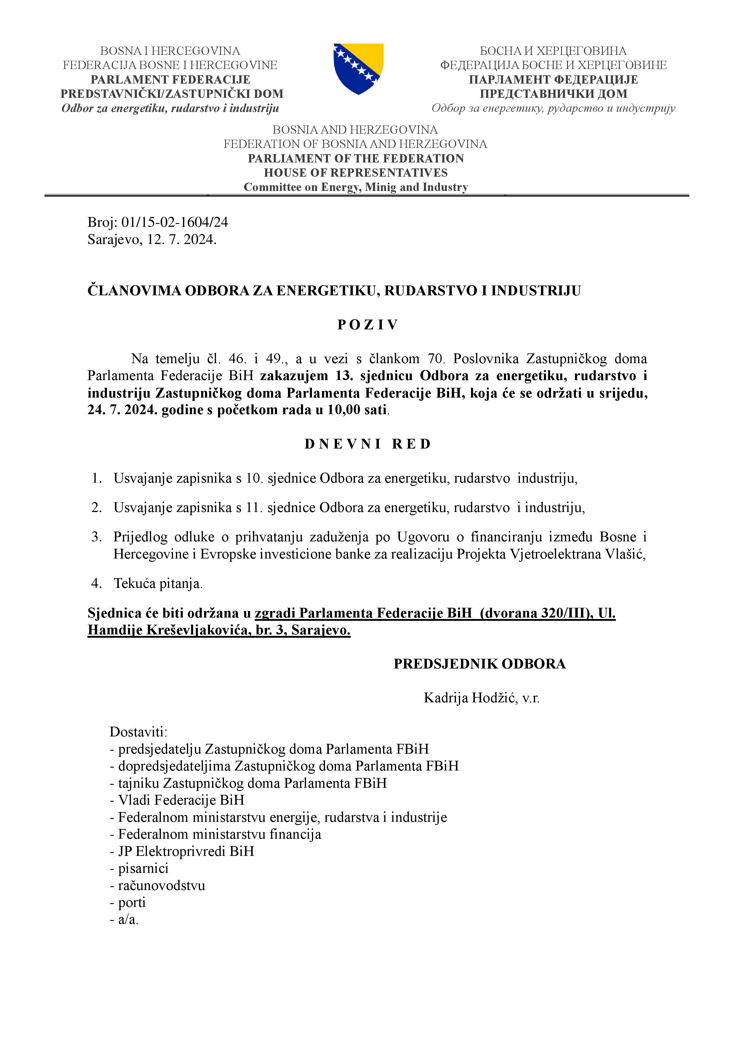 Poziv za 13. sjednicu Odbora za energetiku, rudarstvo i industriju 12.07.2024 Najave HR Pročitaj više