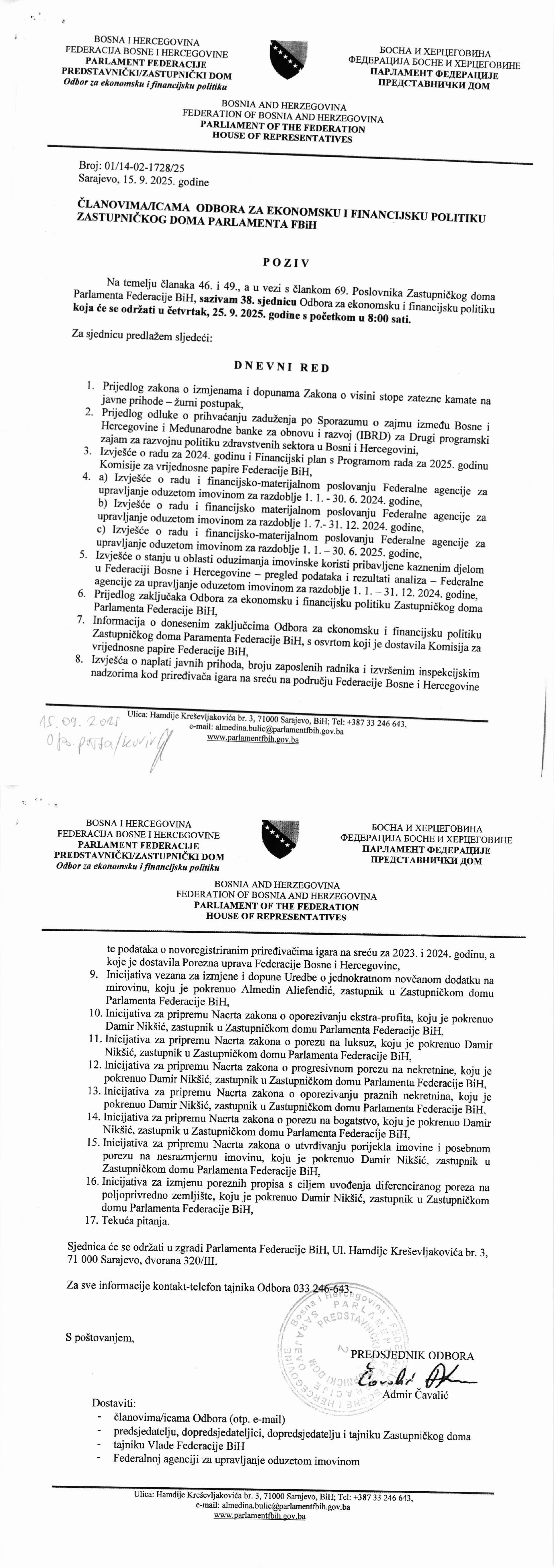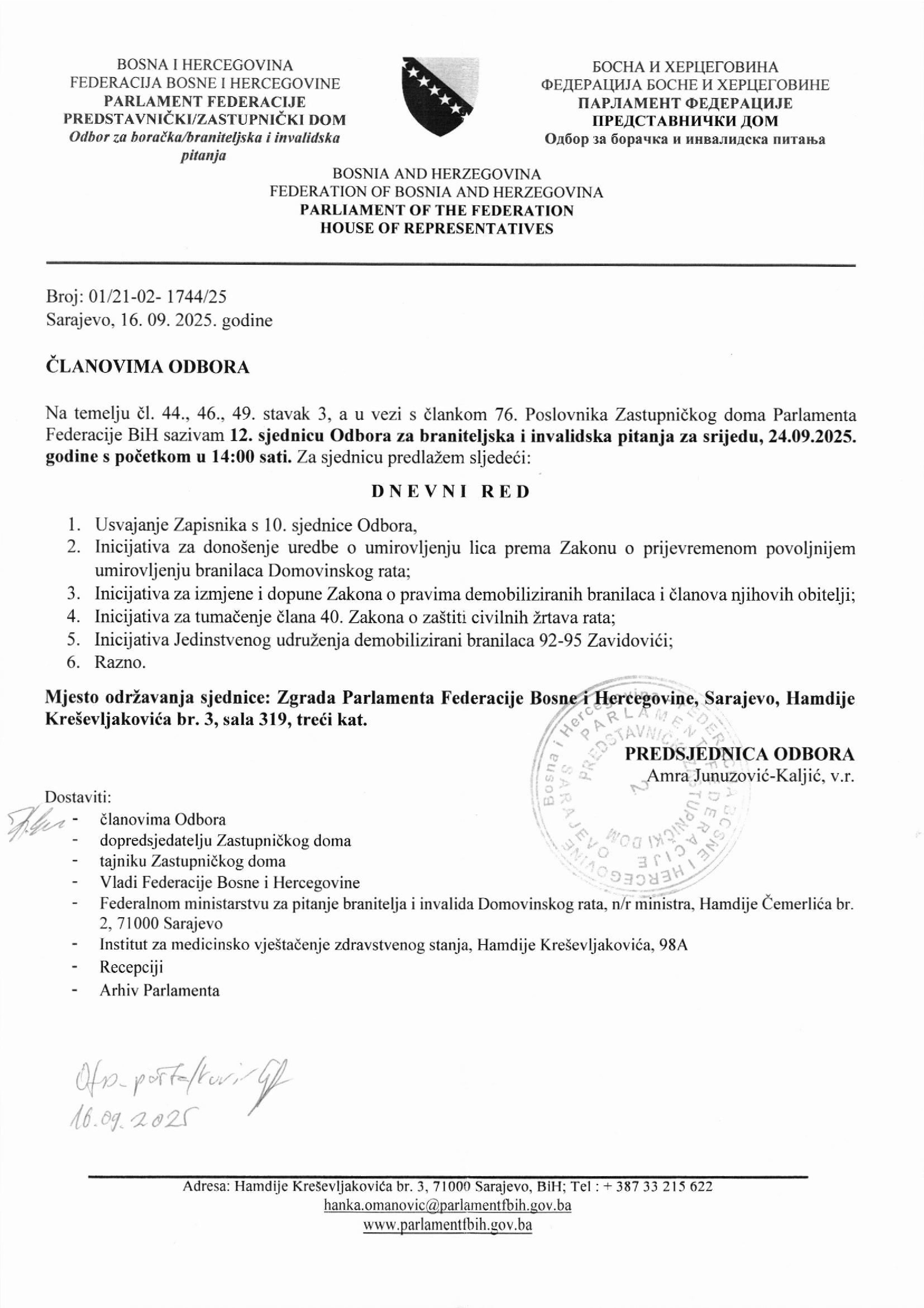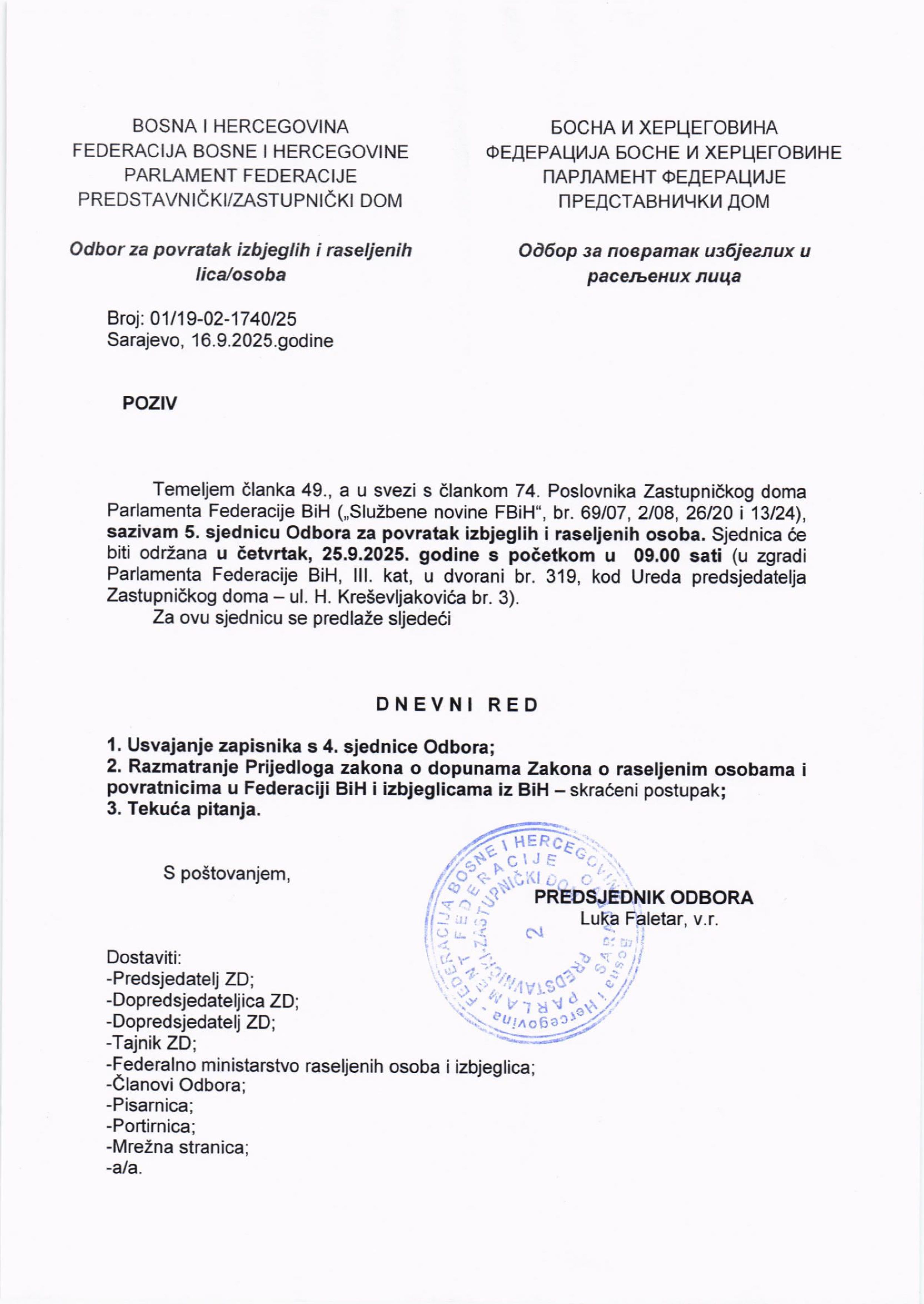 Poziv za 5. sjednicu Odbora za povratak izbjeglih i raseljenih osoba 16.09.2025 Najave HR Pročitaj više