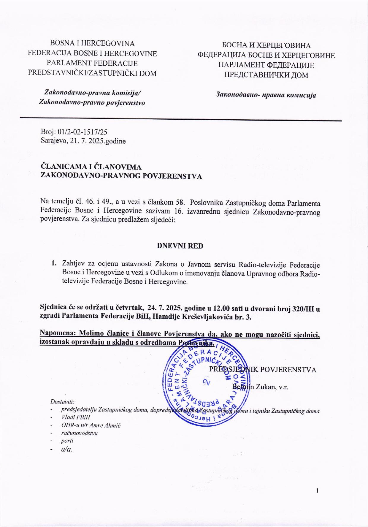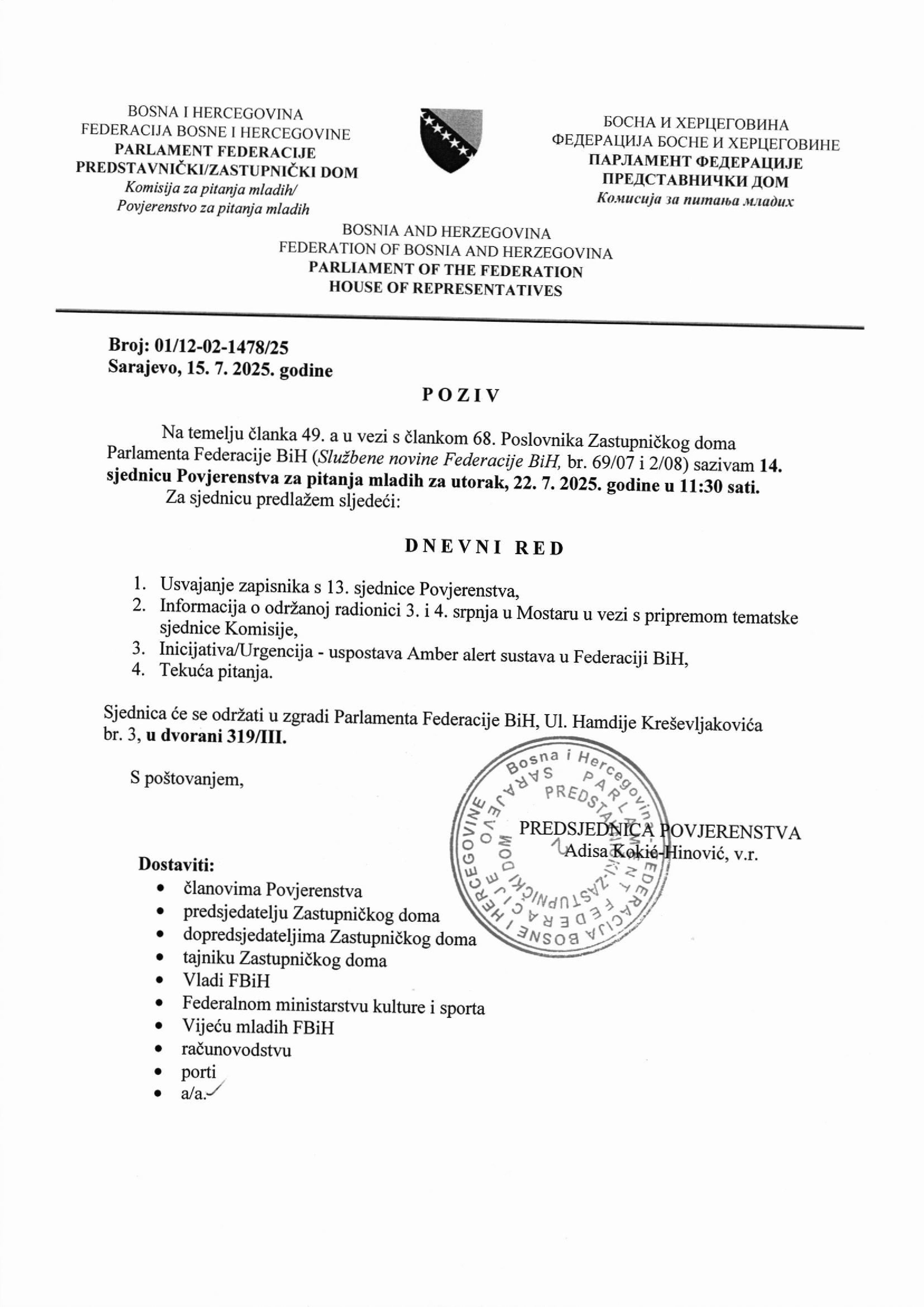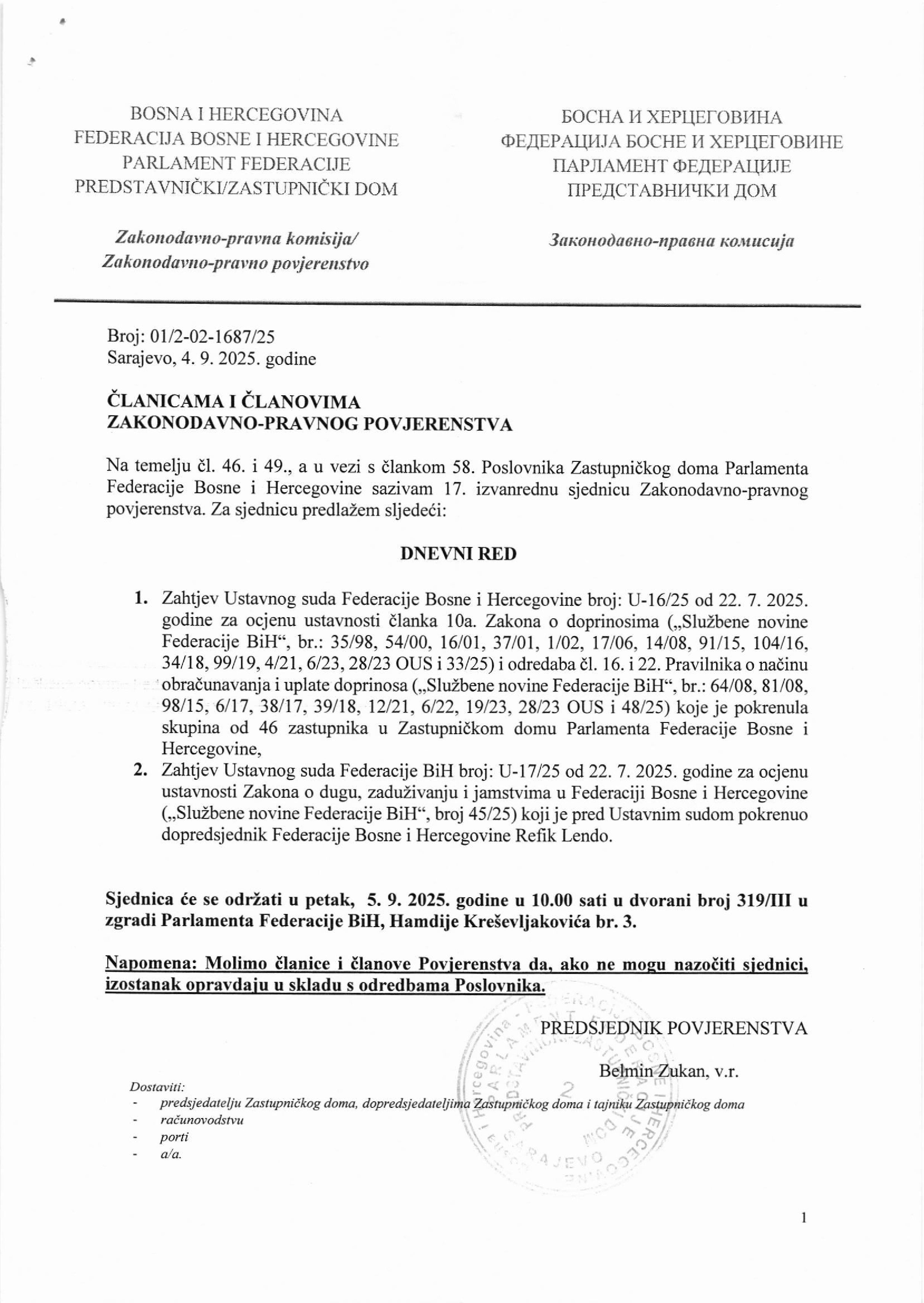 Poziv za 5. sjednicu Odbora za povratak izbjeglih i raseljenih osoba 16.09.2025 Najave HR Pročitaj više