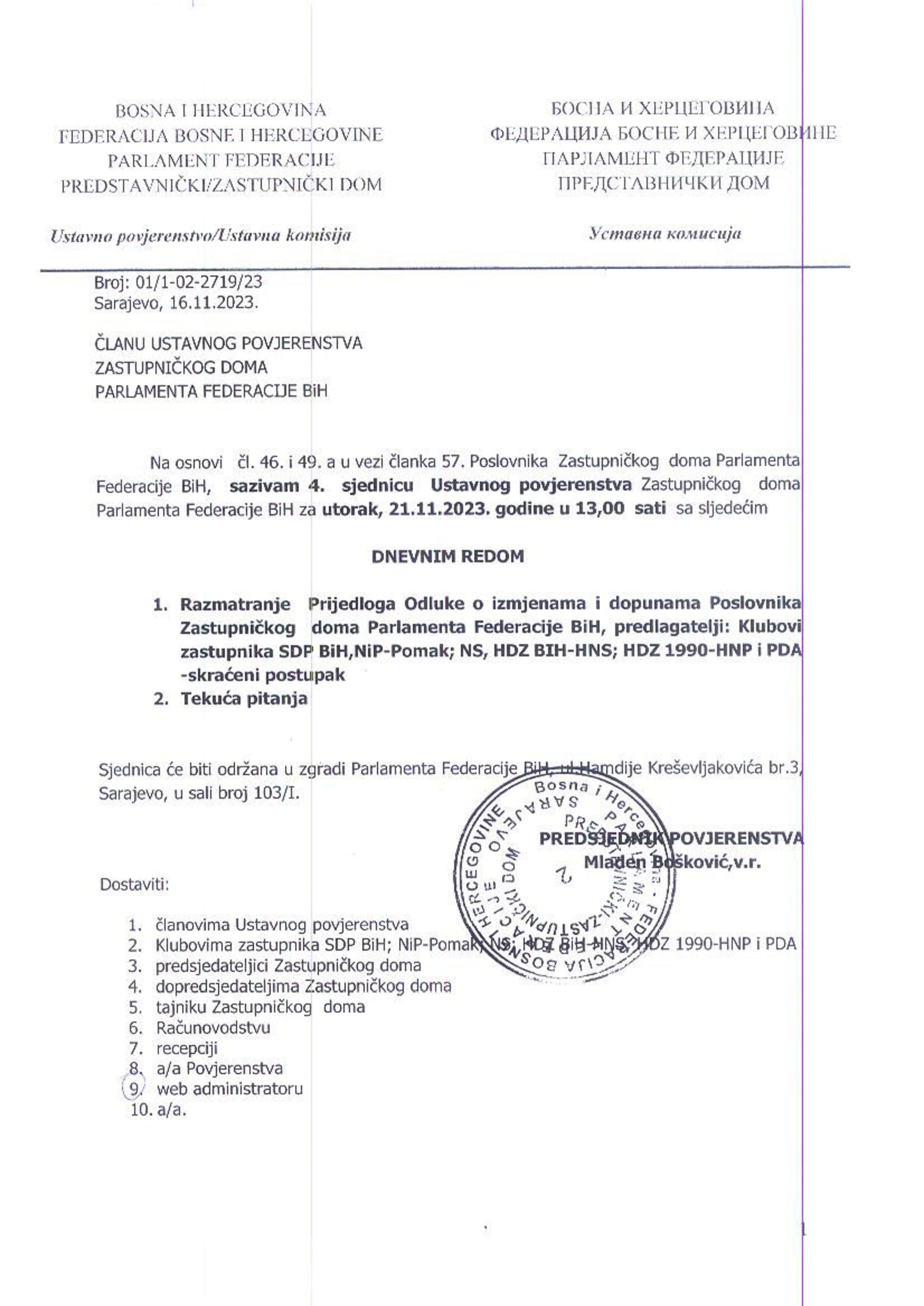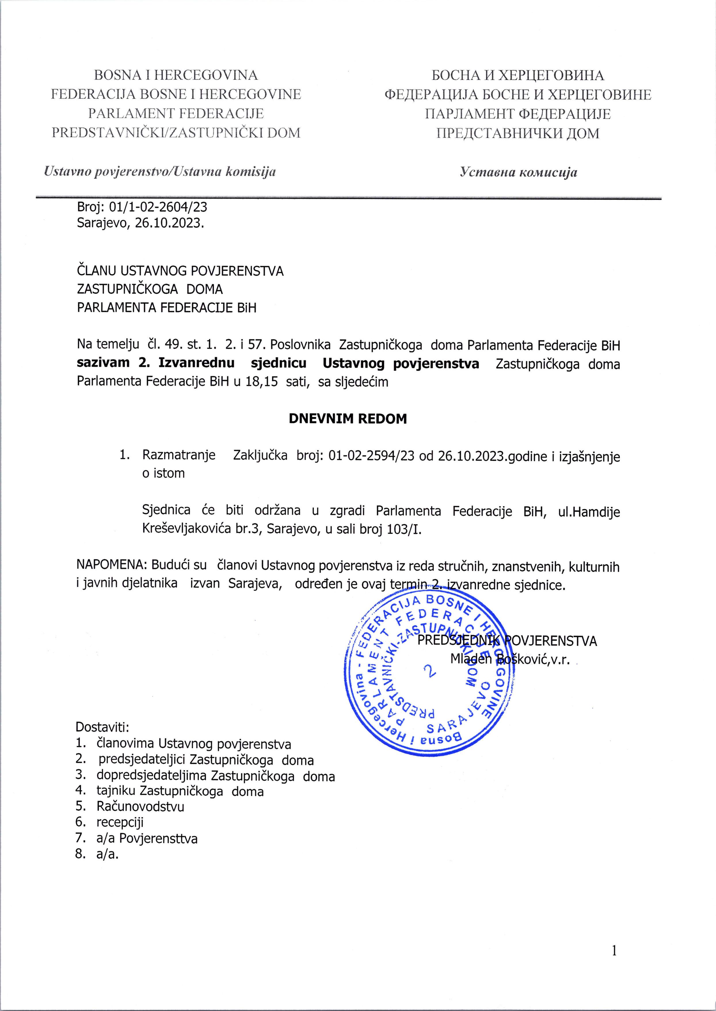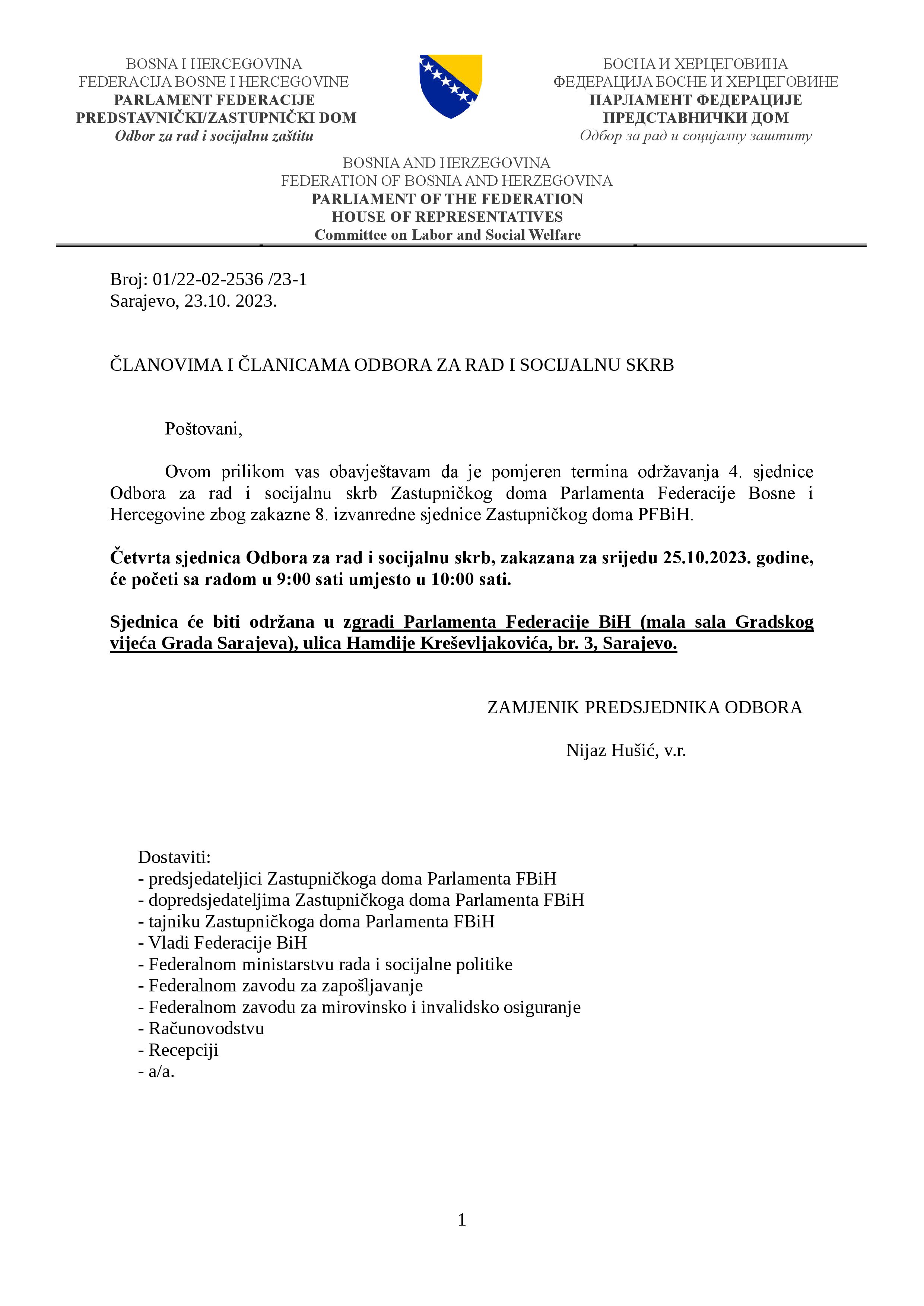 Obavijest o pomjeranju termina održavanja 4. sjednice Odbora za rad i socijalnu skrb 23.10.2023 Najave HR Pročitaj više