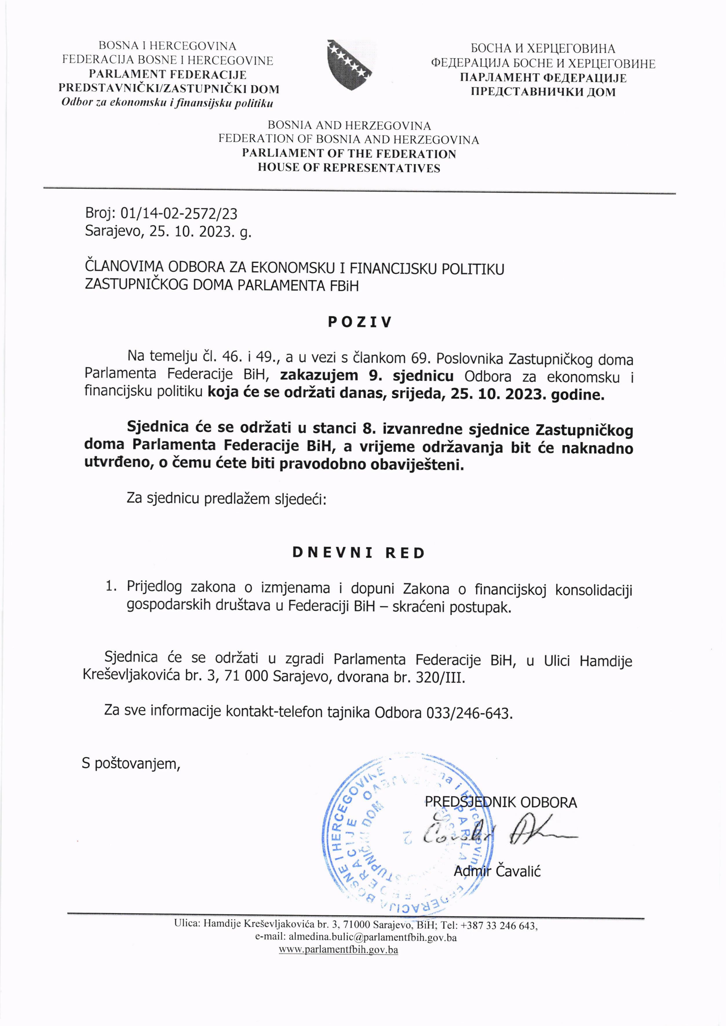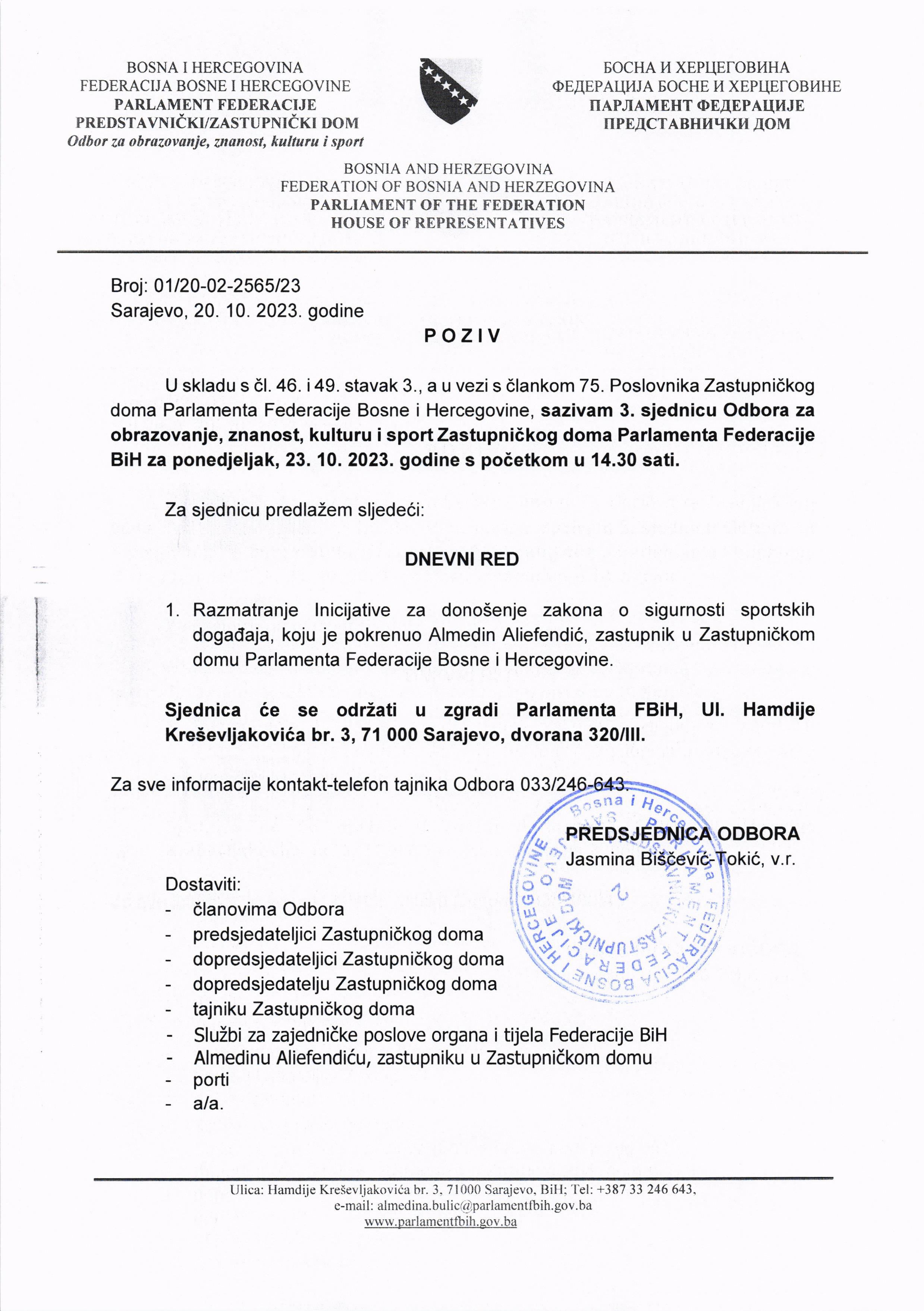 Poziv za 3. sjednicu Odbora za obrazovanje, nauku, kulturu i šport 20.10.2023 Najave HR Pročitaj više