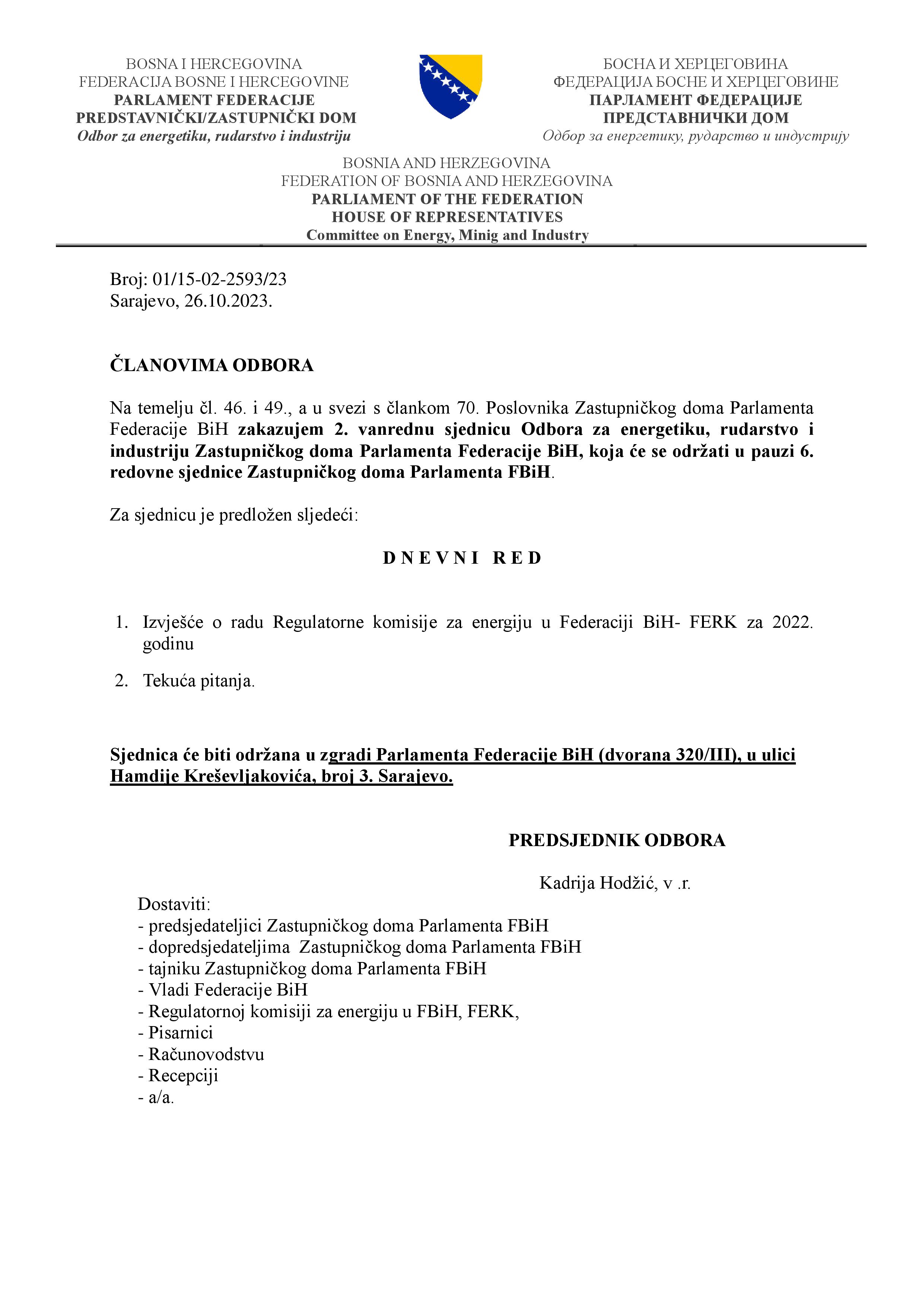 Poziv za 2. izvanrednu sjednicu Odbora za energetiku, rudarstvo i industriju 26.10.2023 Najave HR Pročitaj više