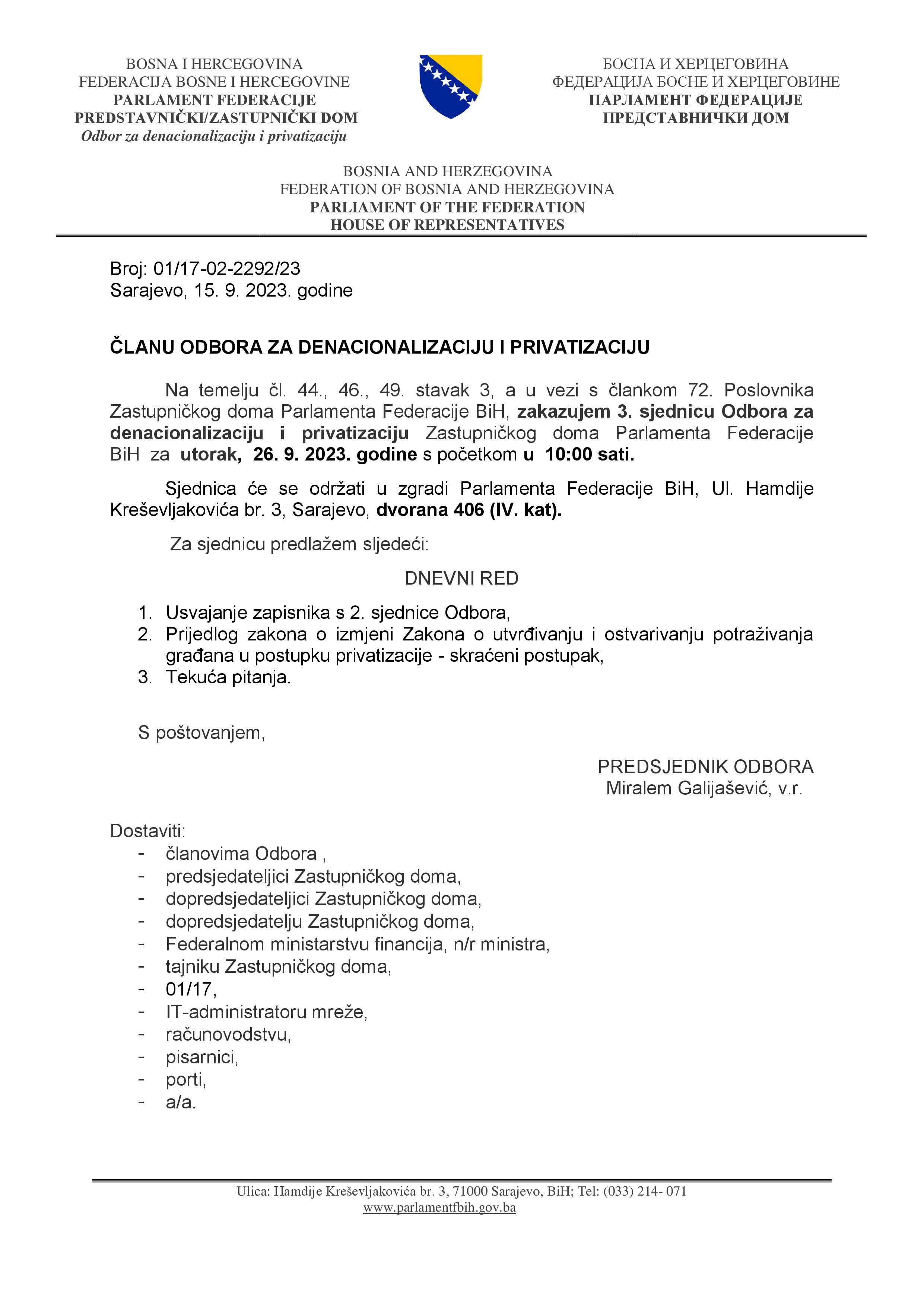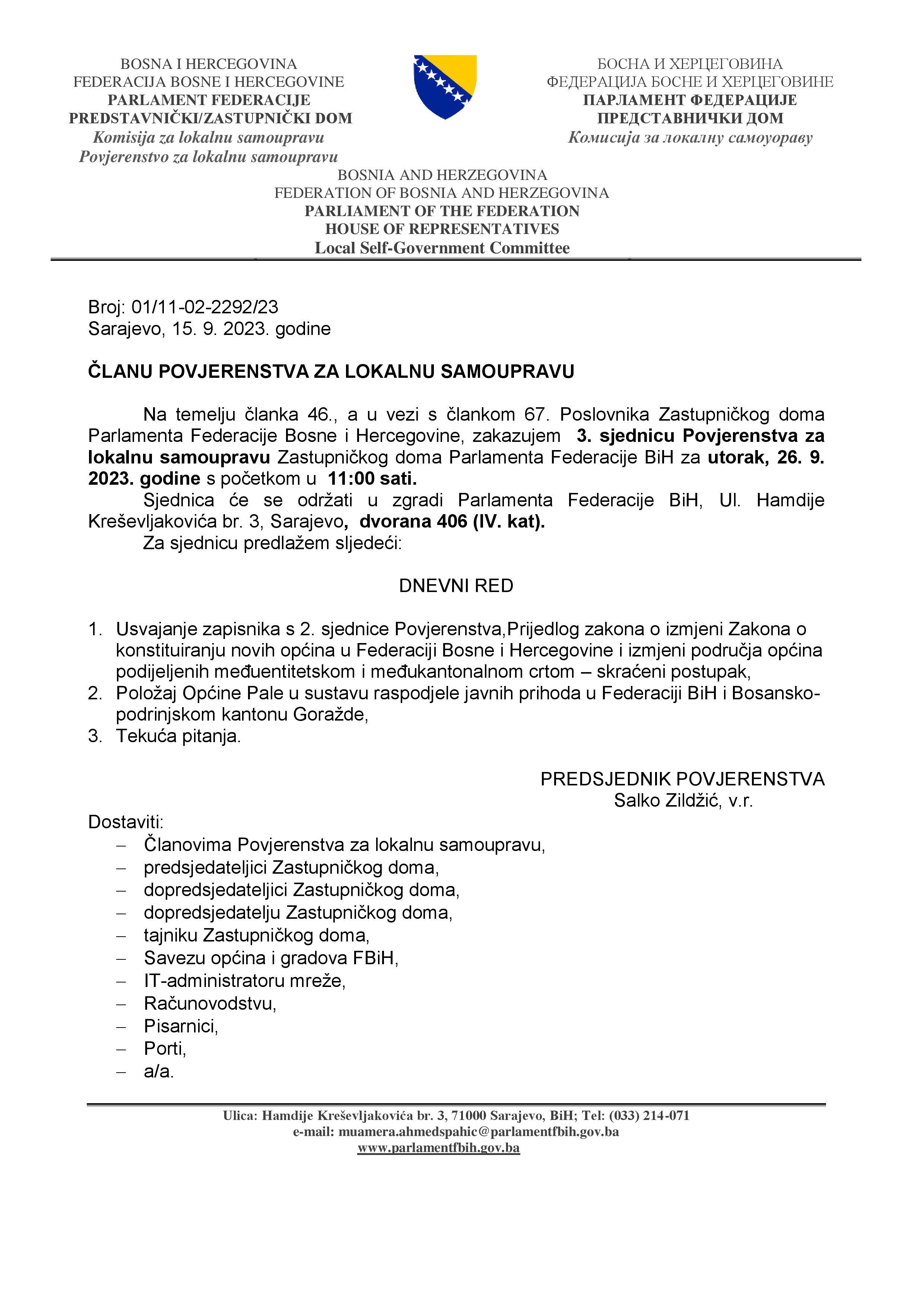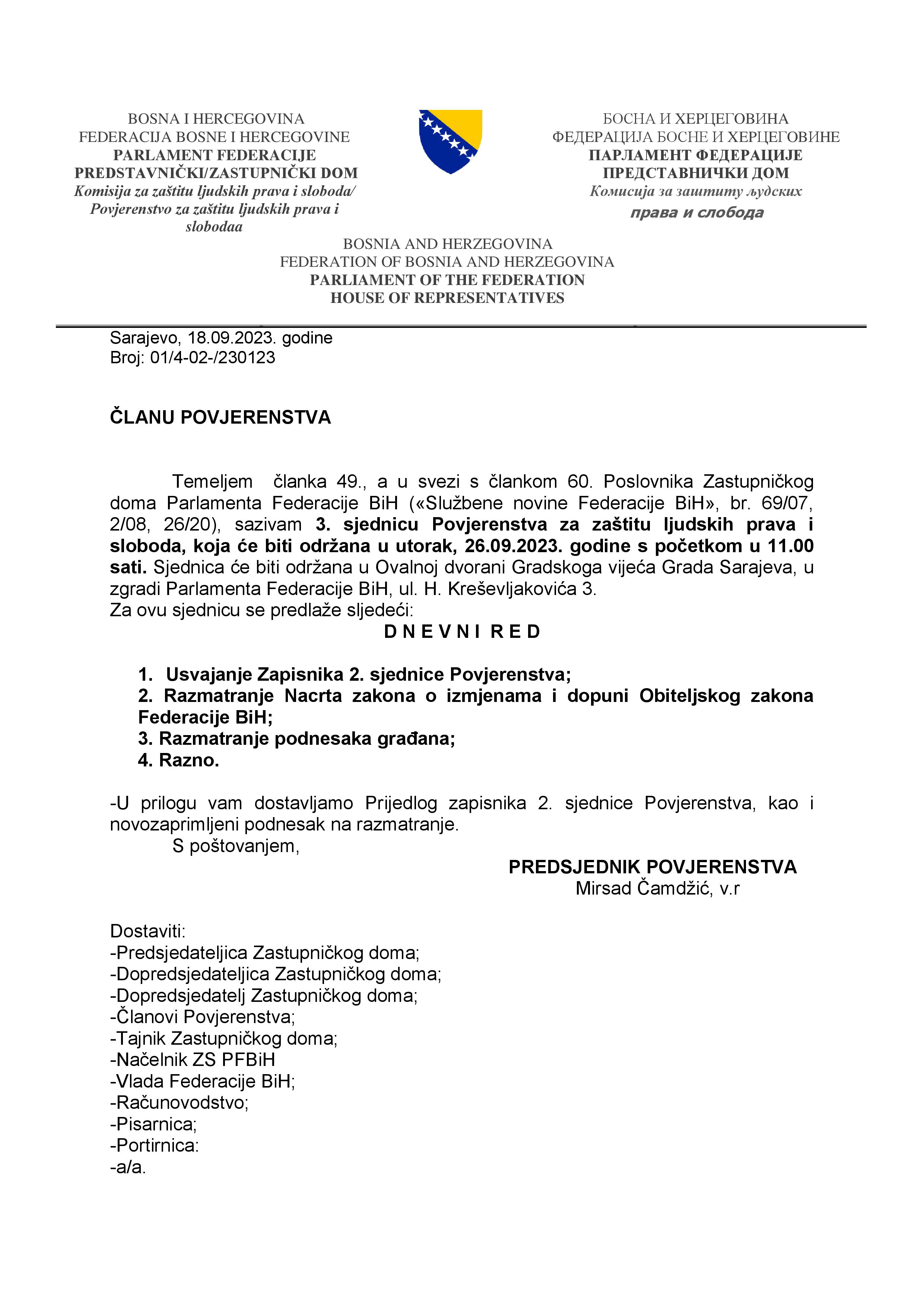 Poziv za 3. sjednicu Povjerenstva za zaštitu ljudskih prava i sloboda 18.09.2023 Najave HR Pročitaj više