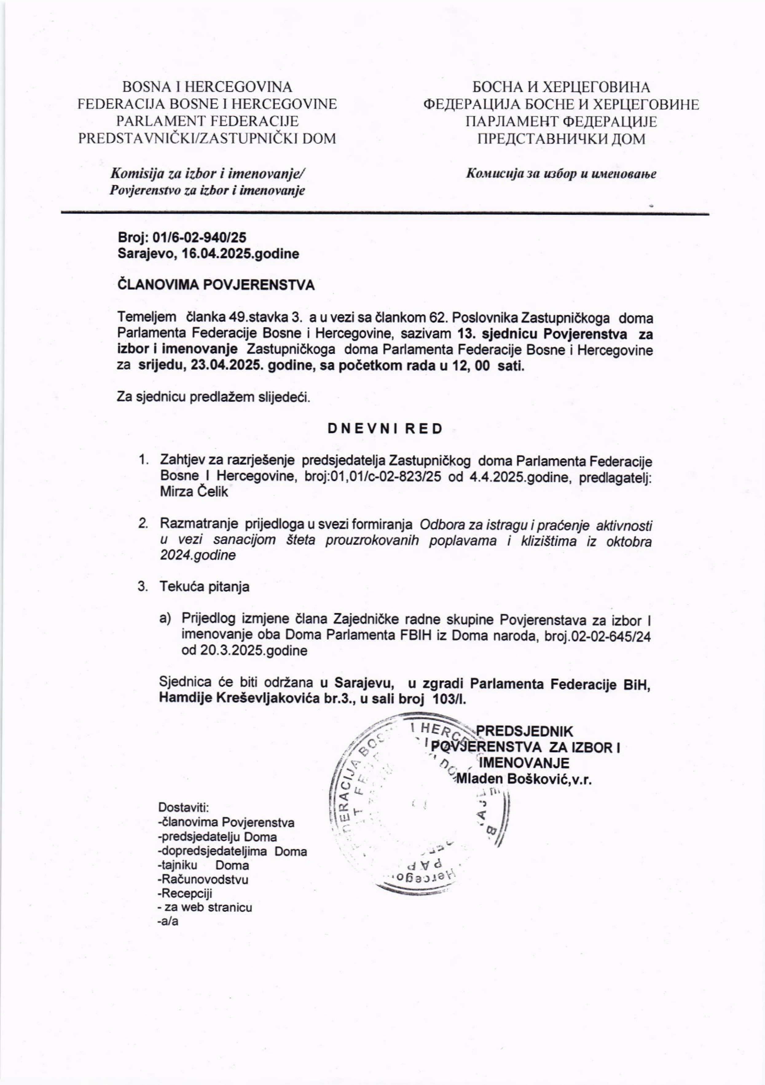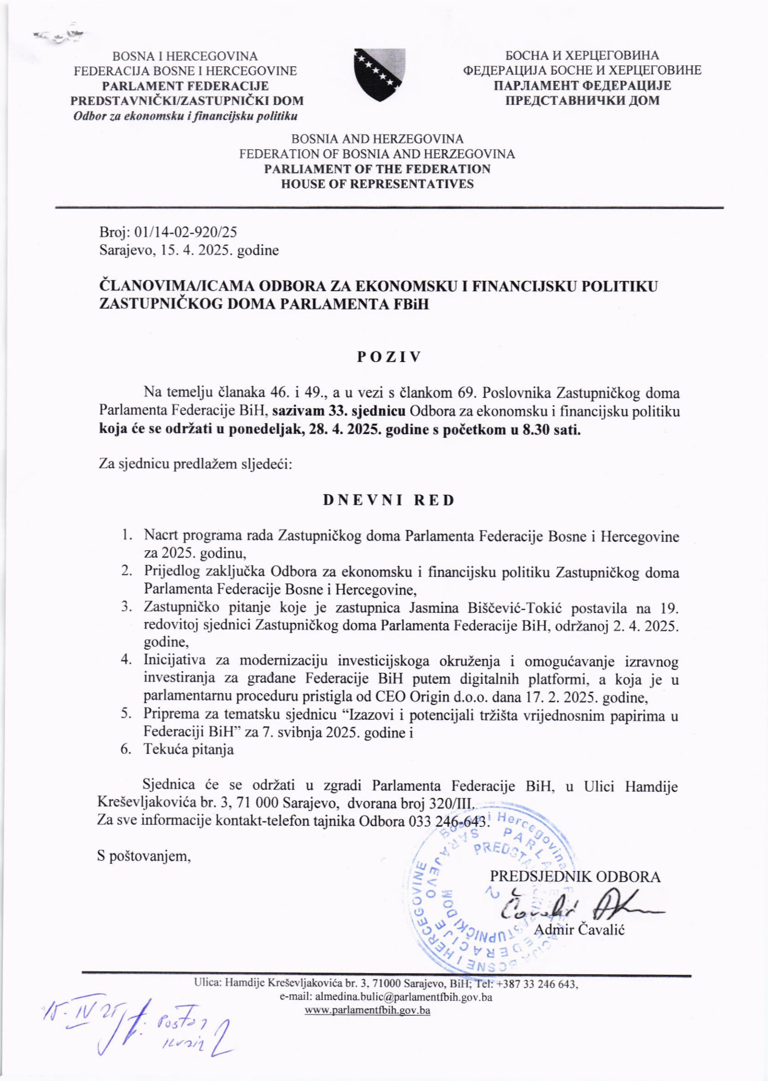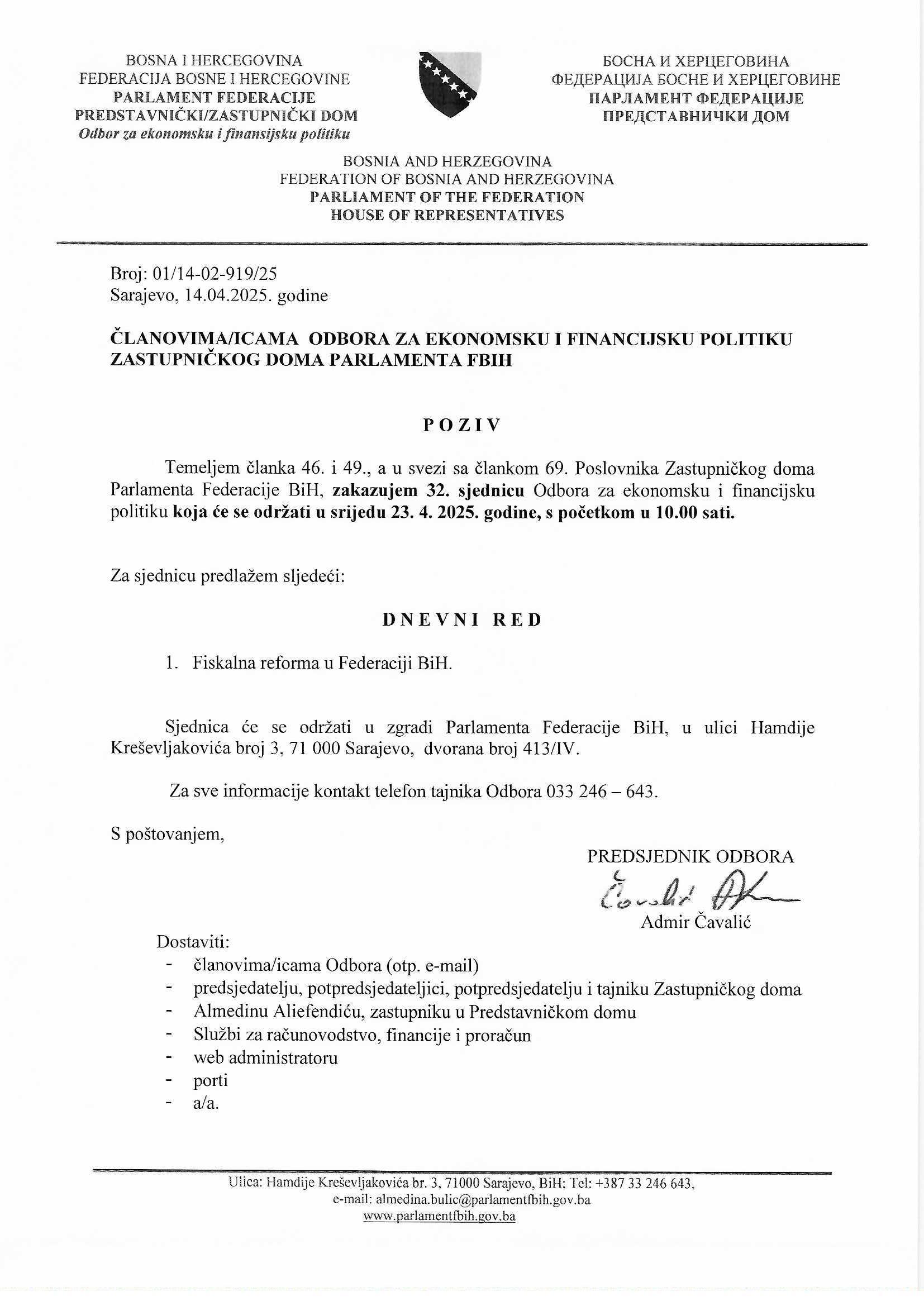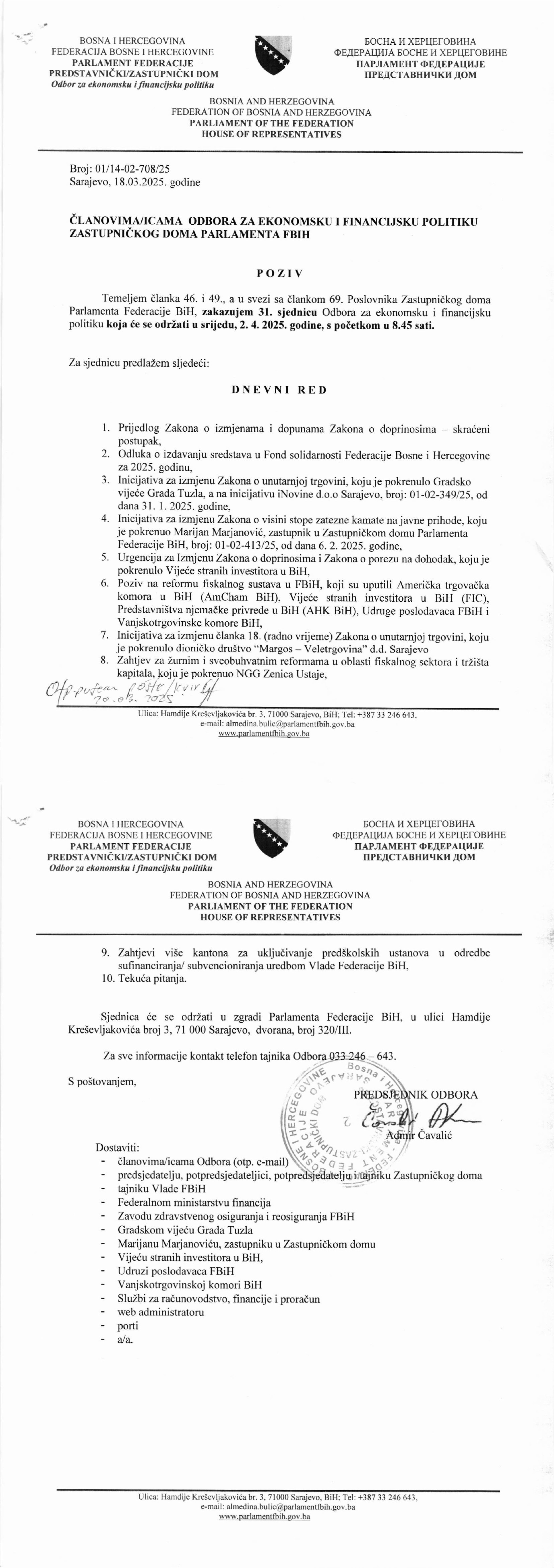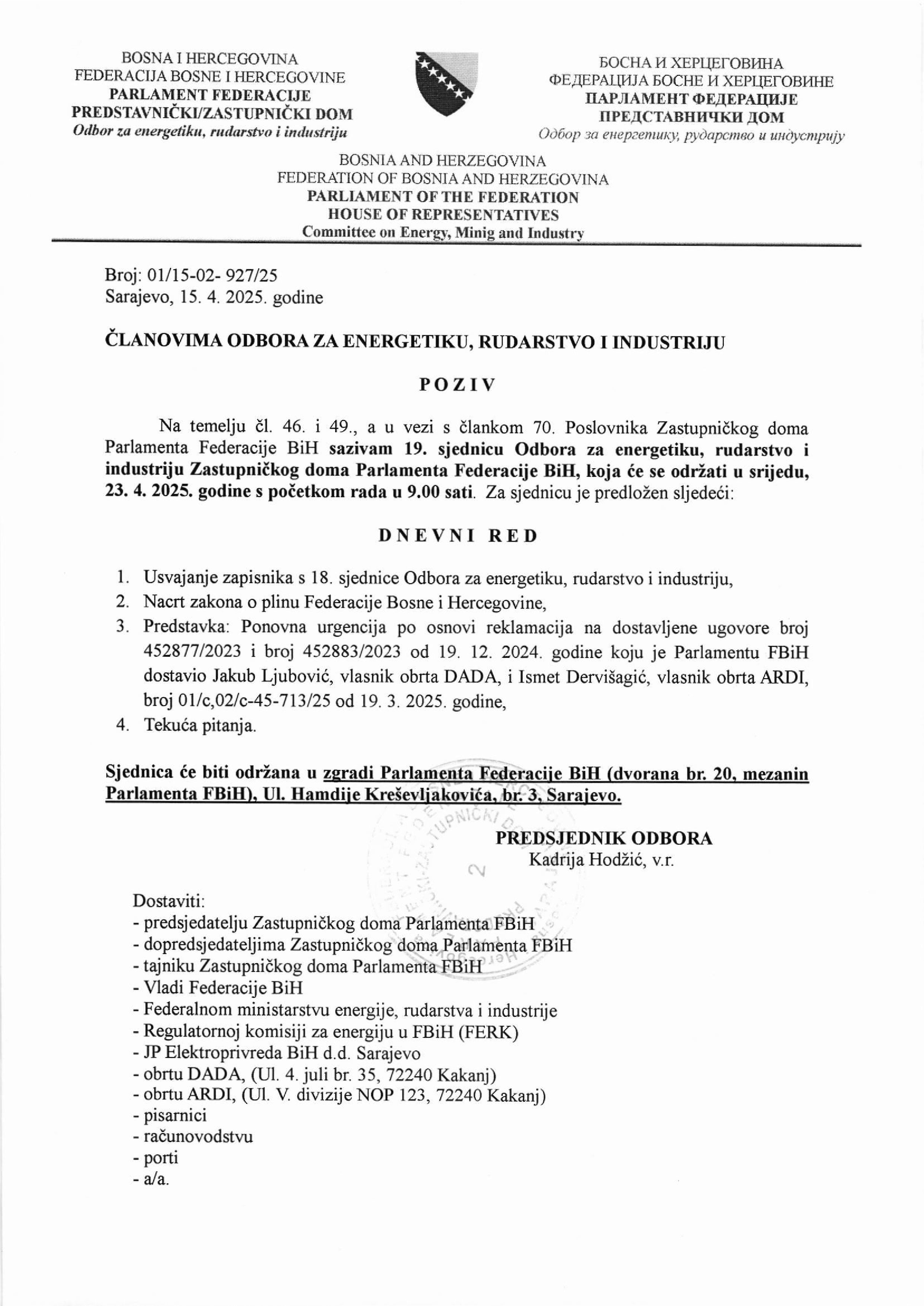 Poziv za 19. sjednicu Odbora za energetiku, rudarstvo i industriju 15.04.2025 Najave HR Pročitaj više