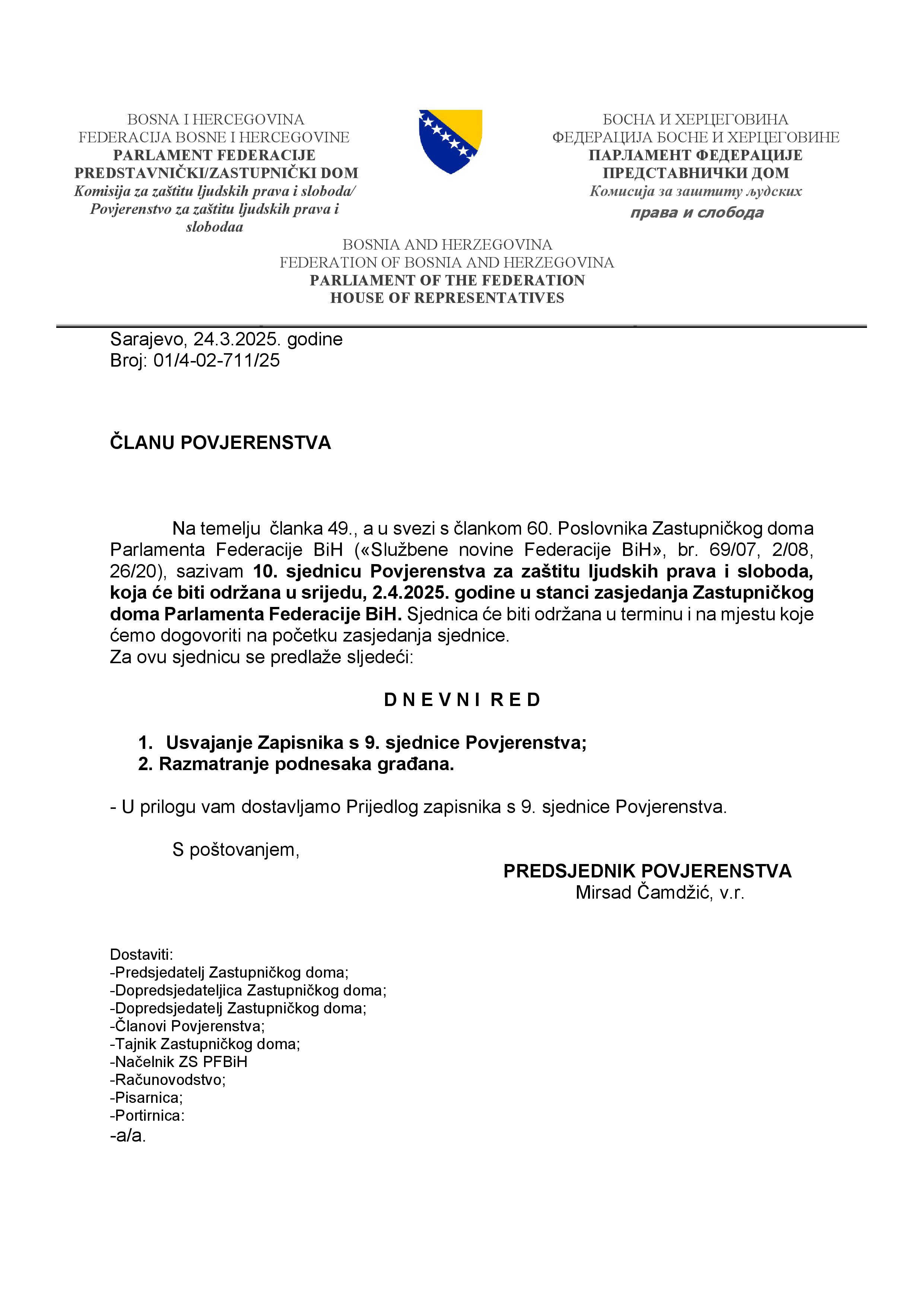 Poziv za 10. sjednicu Povjerenstva za zaštitu ljudskih prava i sloboda 24.03.2025 Najave HR Pročitaj više