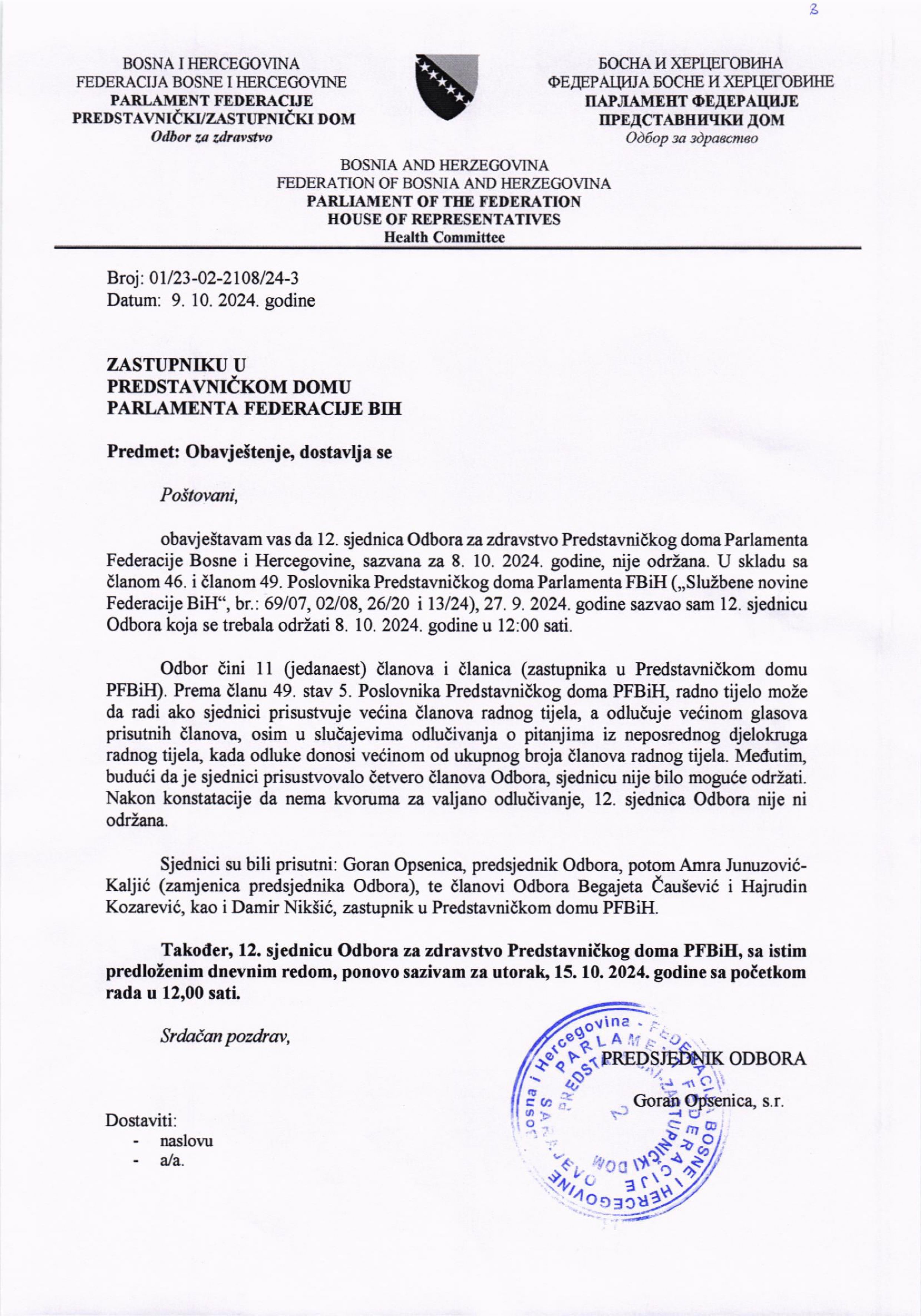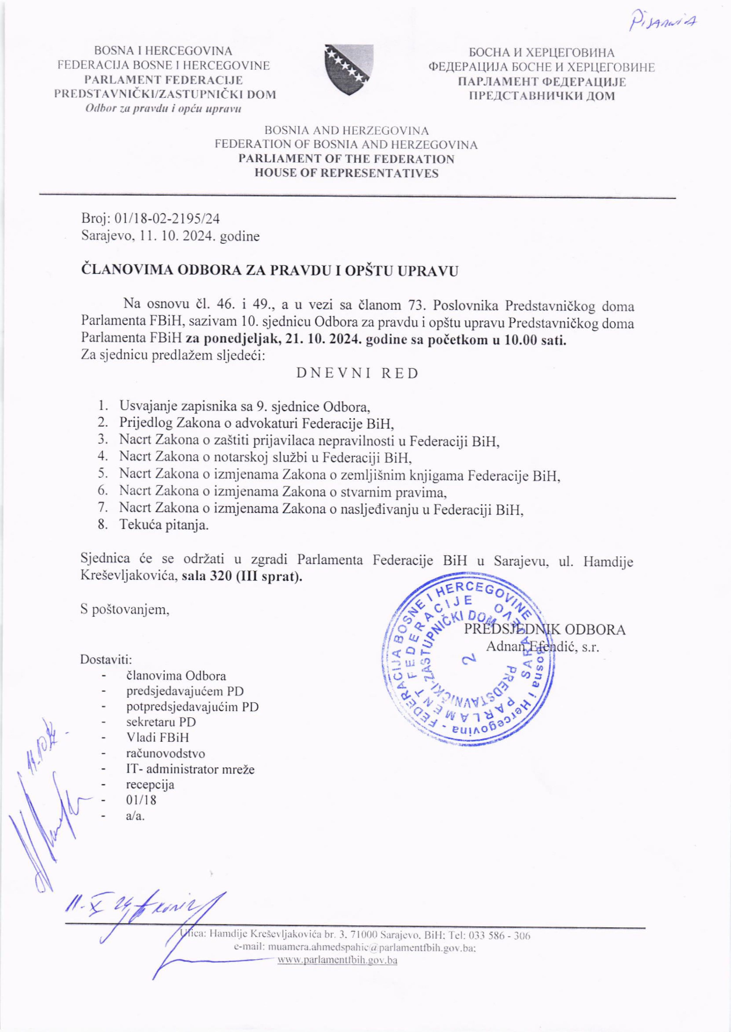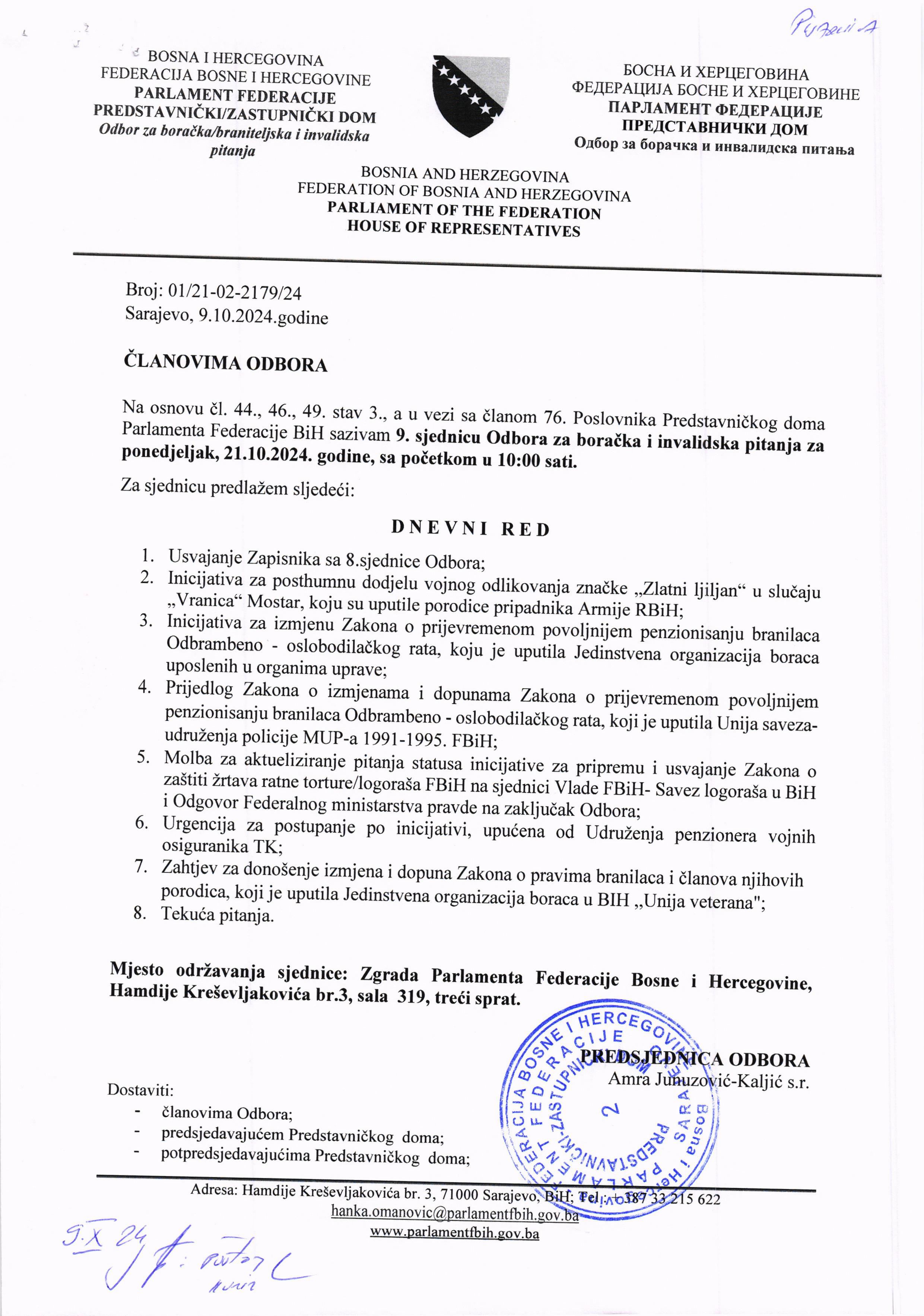 Poziv za 8. sjednicu Parlamentarne komisije odgovorne za reviziju - NOVI TERMIN 14.10.2024 Najave Pročitaj više