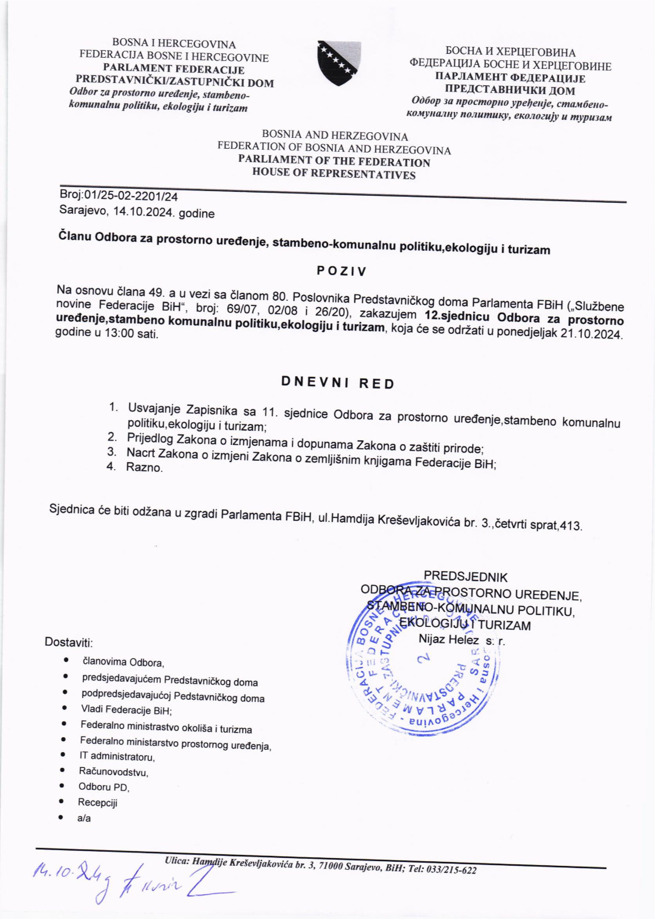 Poziv za 12. sjednicu Odbora za prostorno uređenje, stambeno komunalnu politiku, ekologiju i turizam 14.10.2024 Najave Pročitaj više
