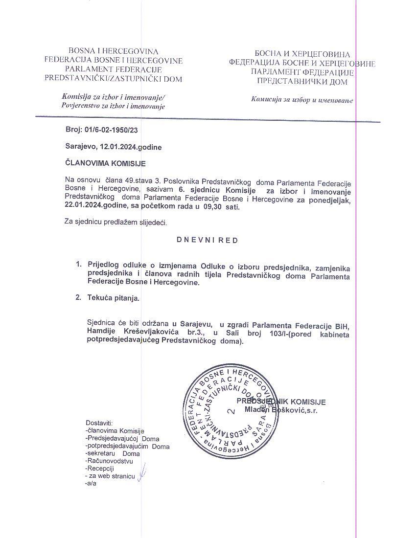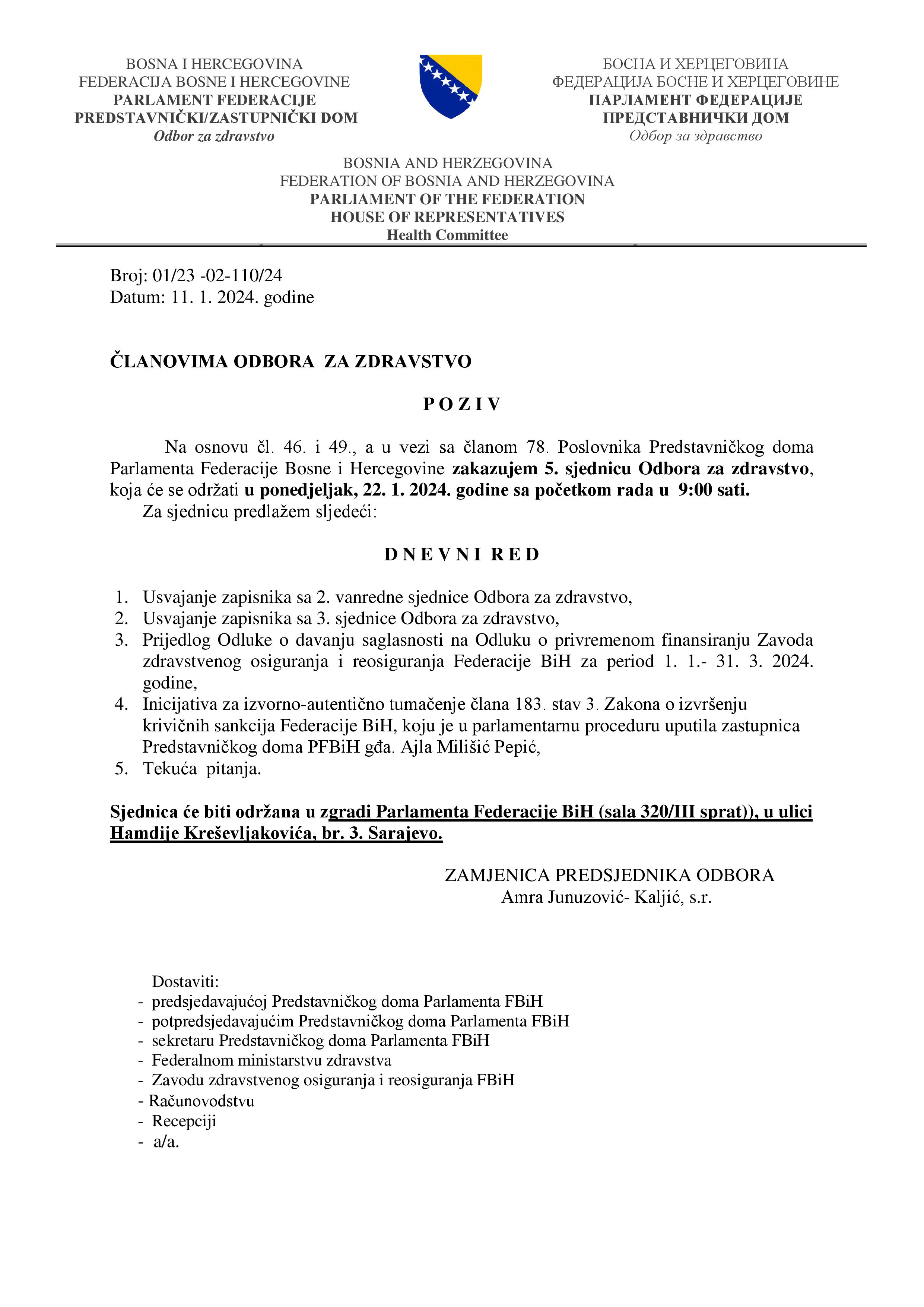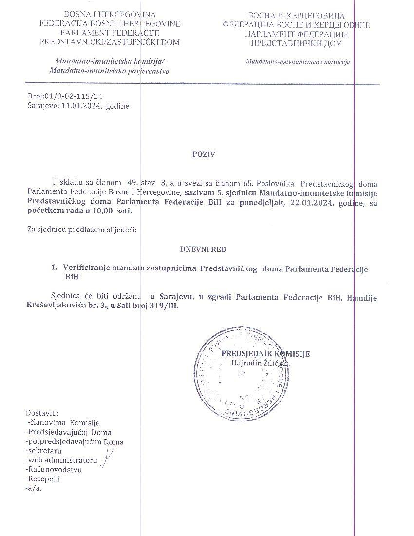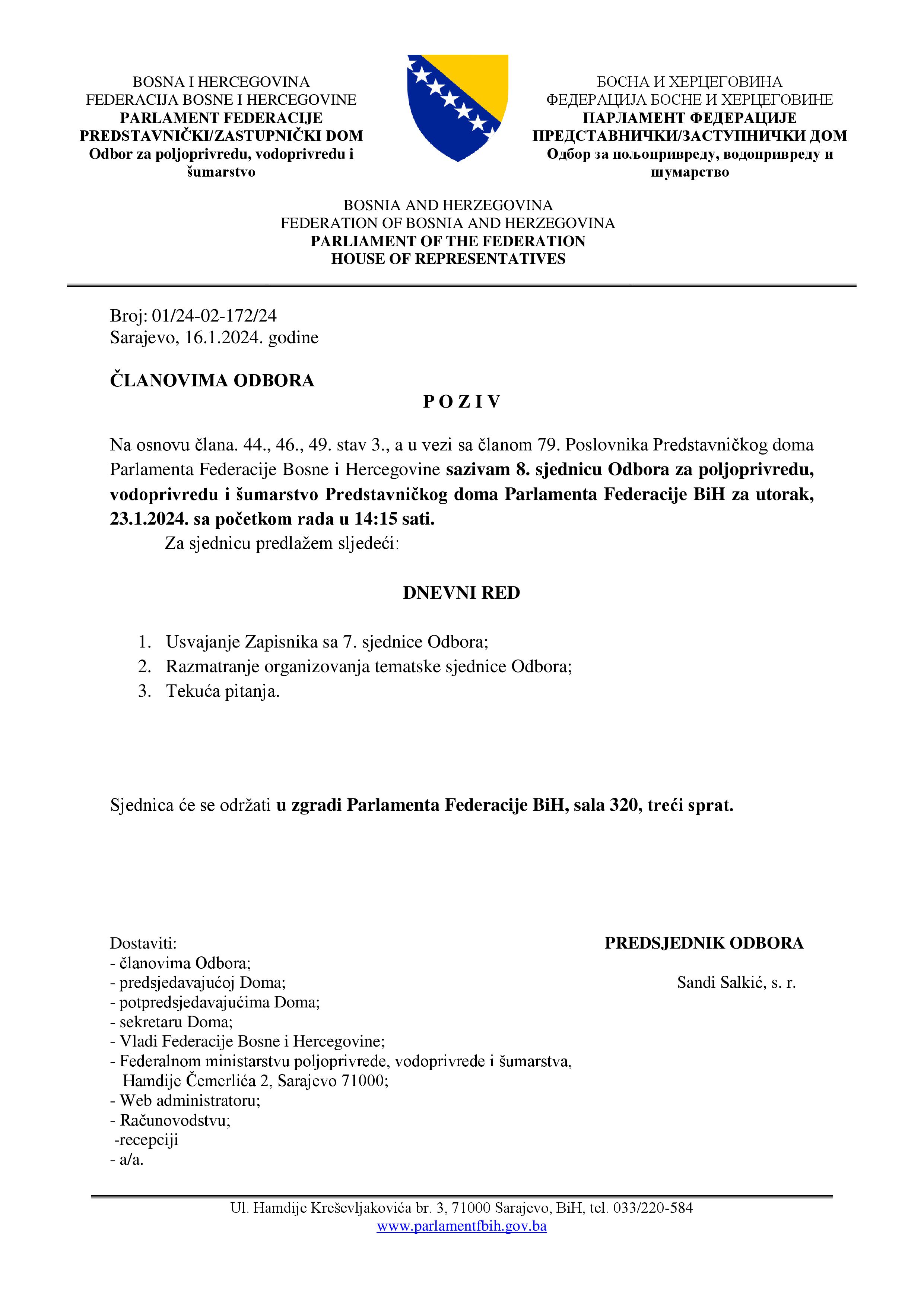 Poziv za 8. sjednicu Odbora za poljoprivredu, vodoprivredu i šumarstvo 16.01.2024 Najave Pročitaj više