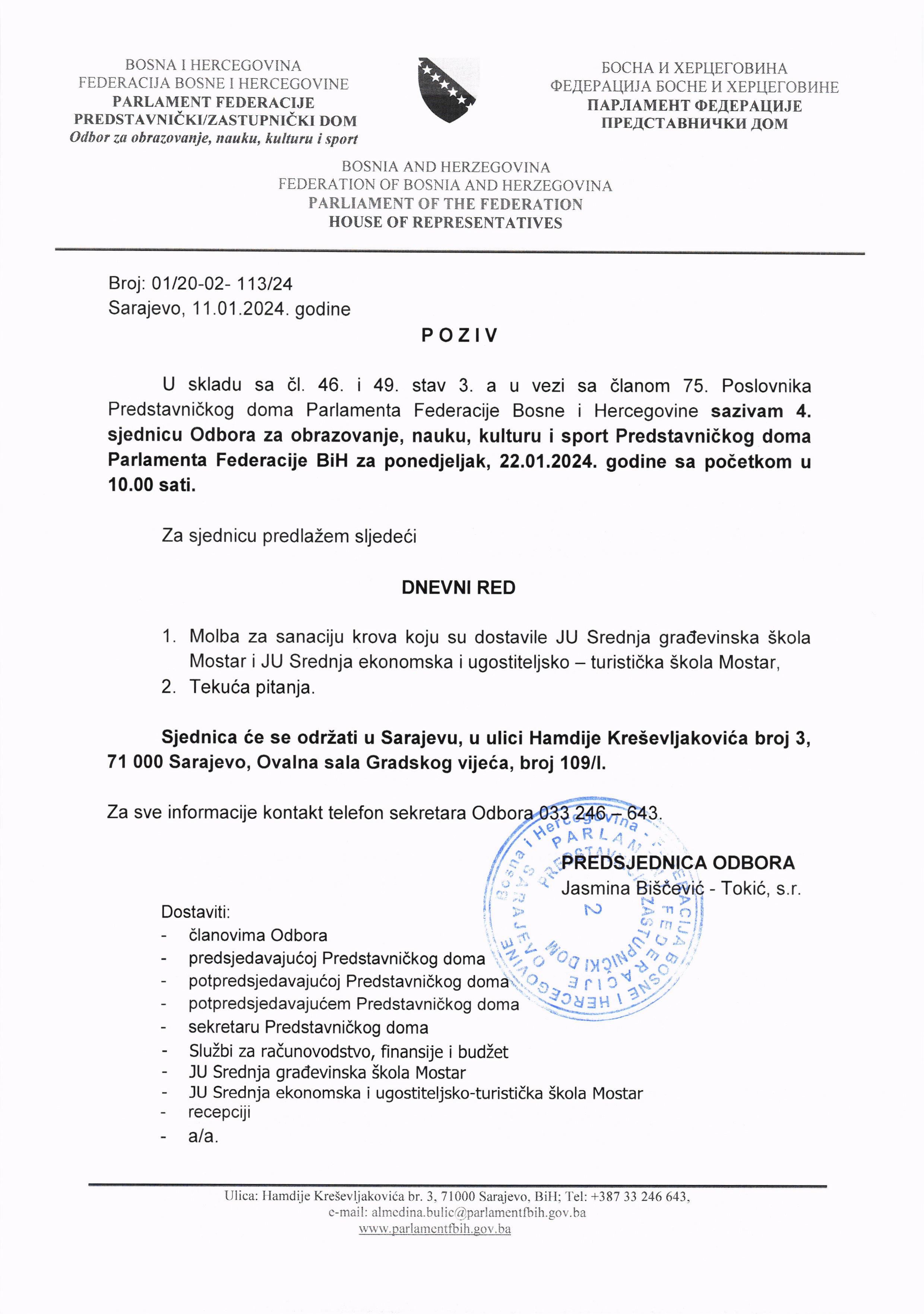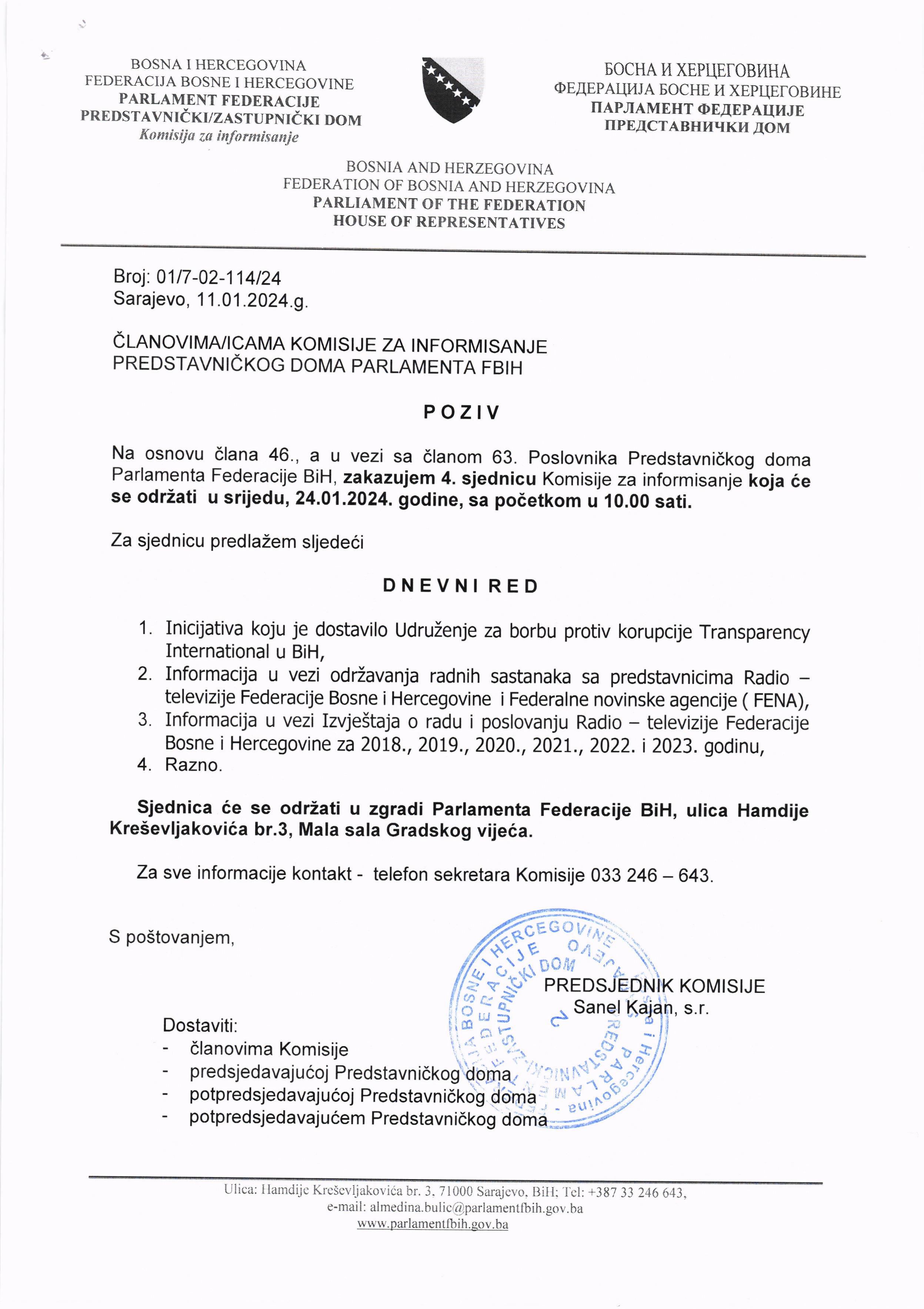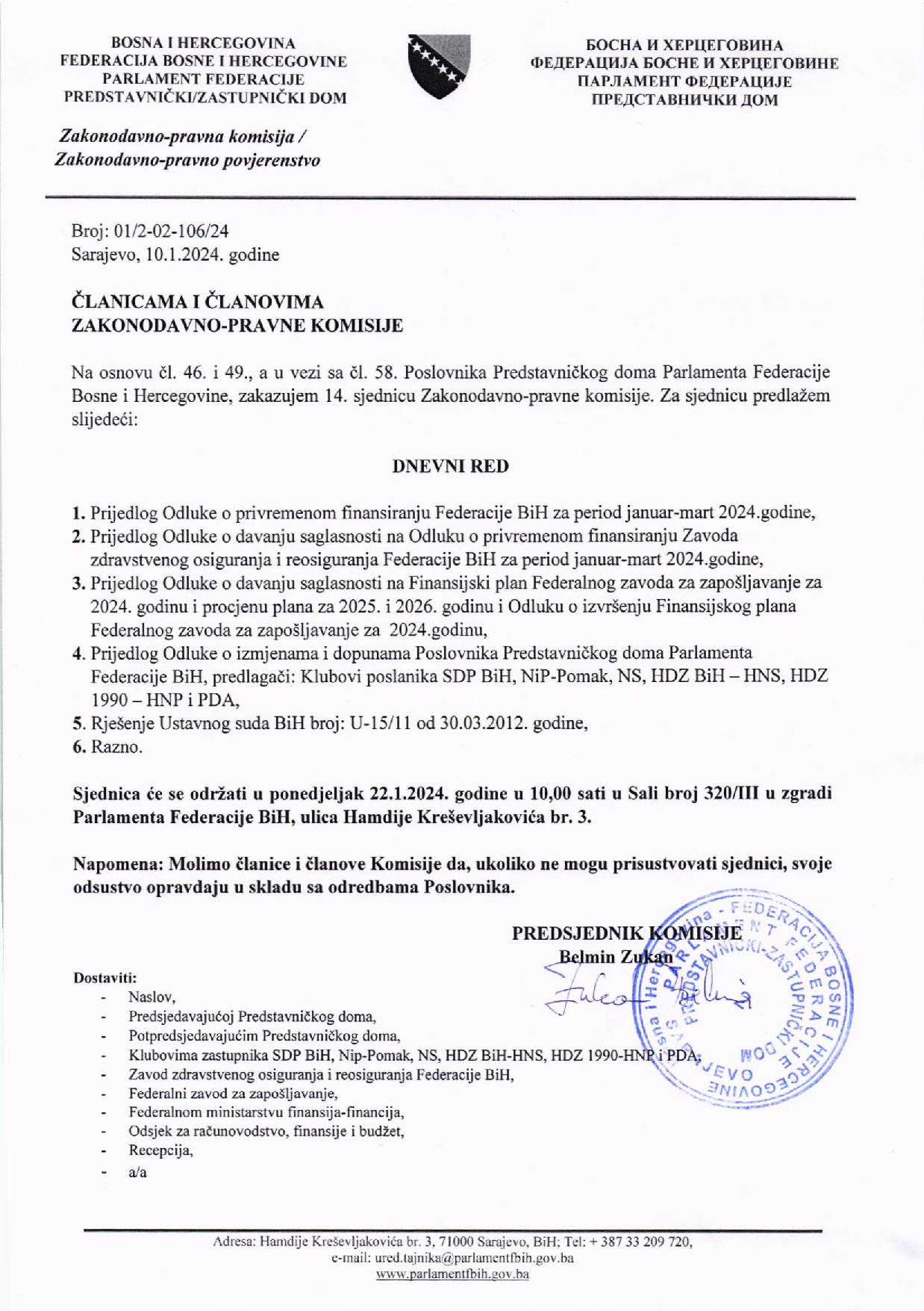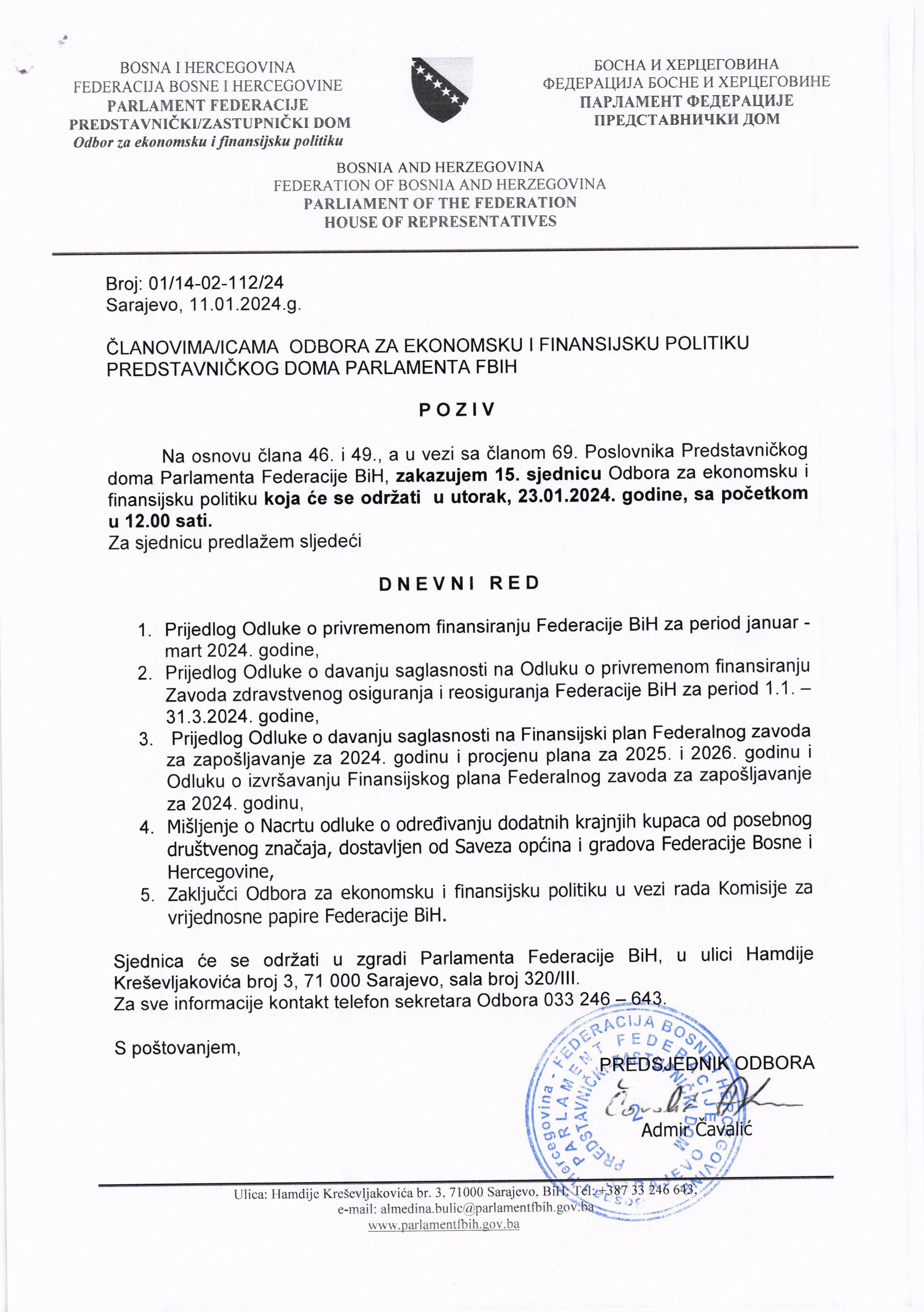 Poziv za 8. sjednicu Odbora za poljoprivredu, vodoprivredu i šumarstvo 16.01.2024 Najave Pročitaj više