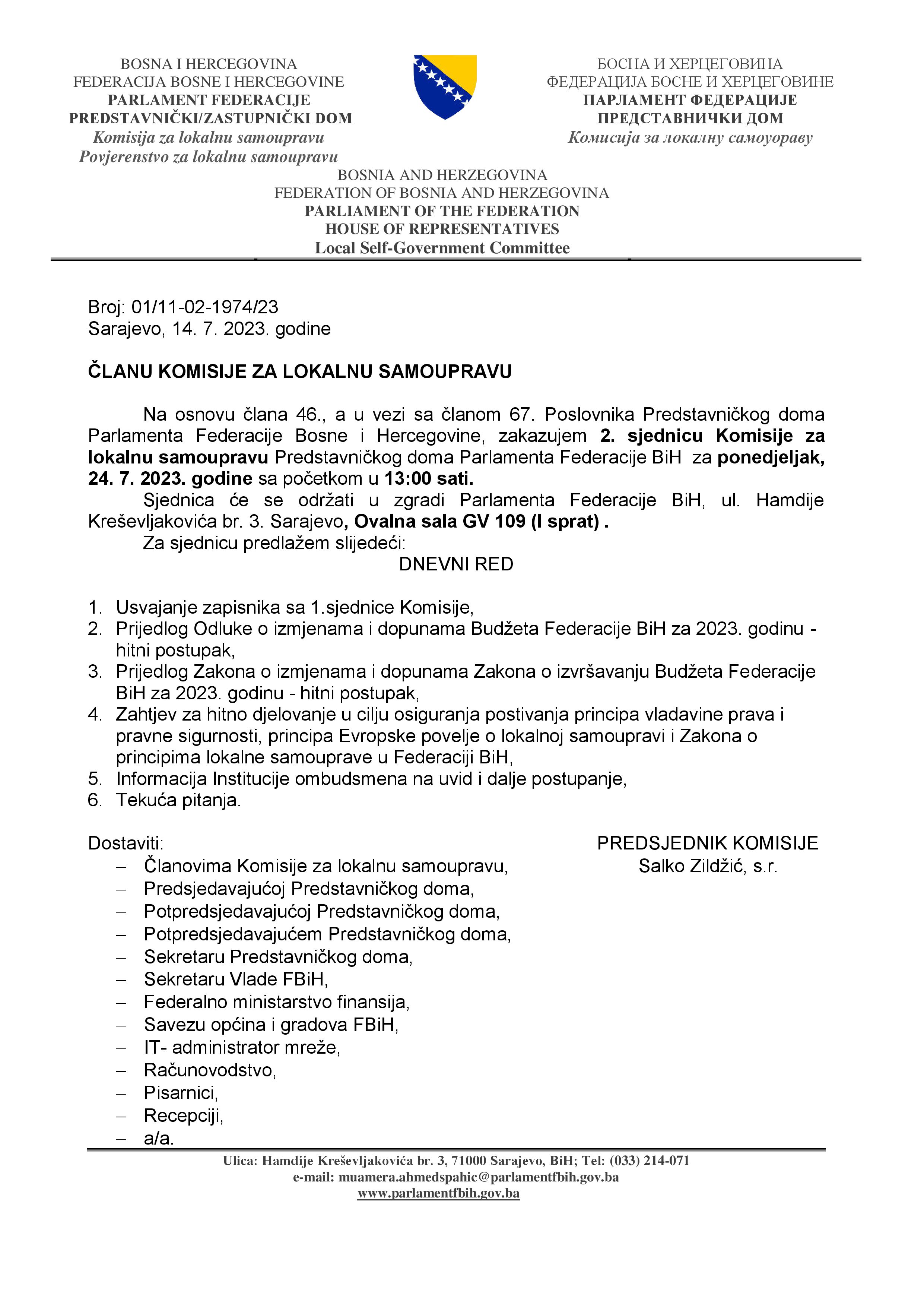 Poziv za 2. sjednicu Komisije za lokalnu samoupravu