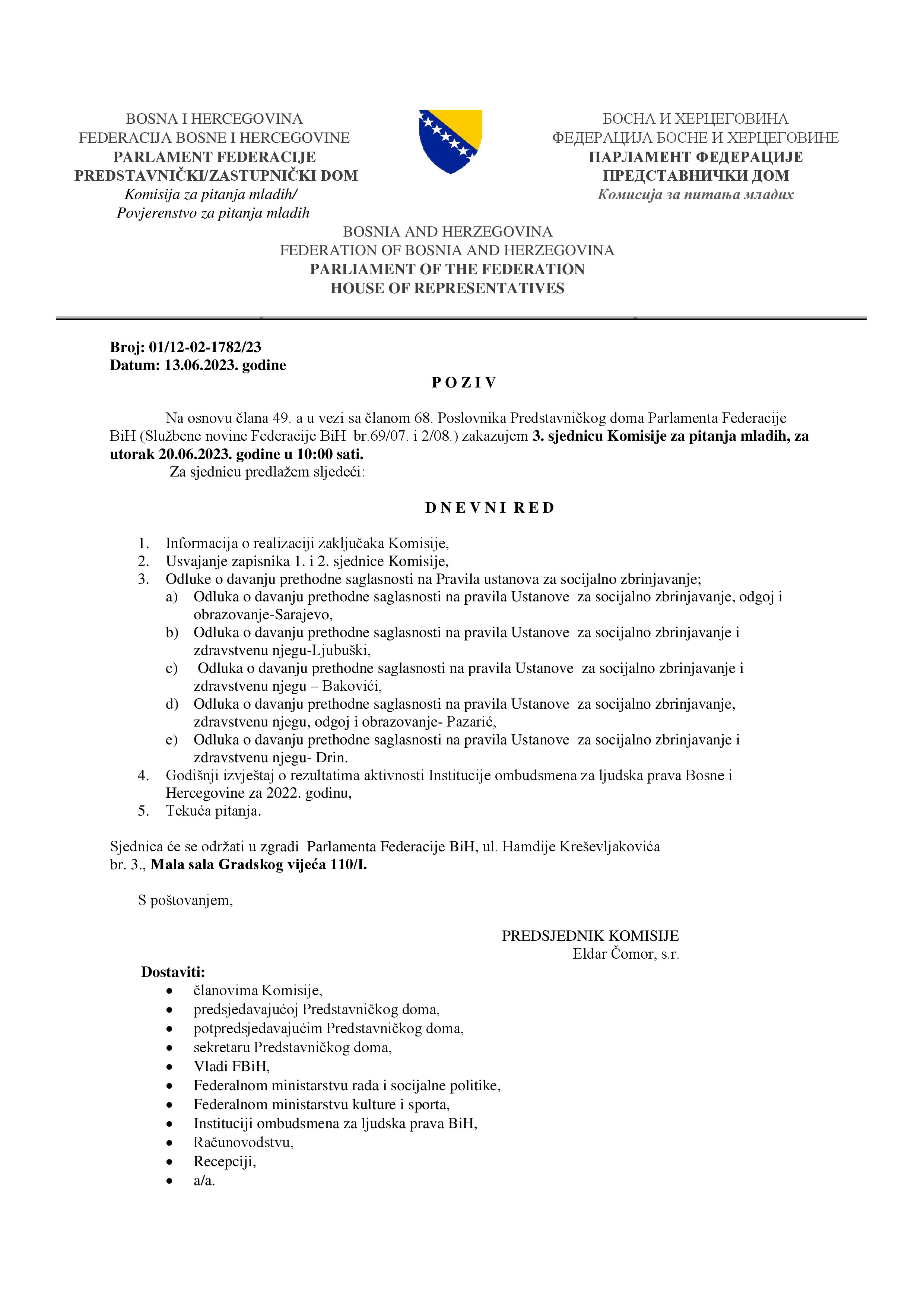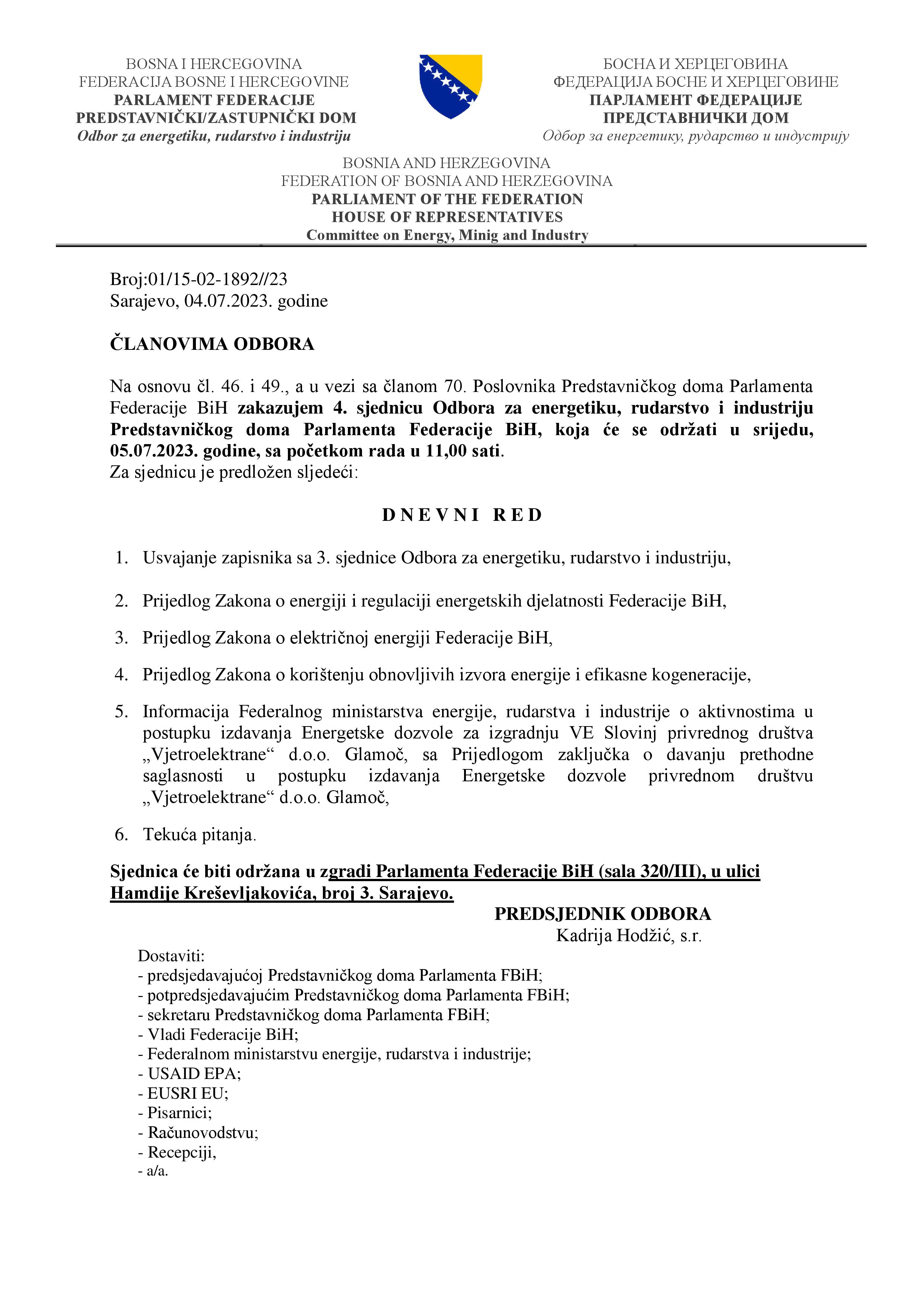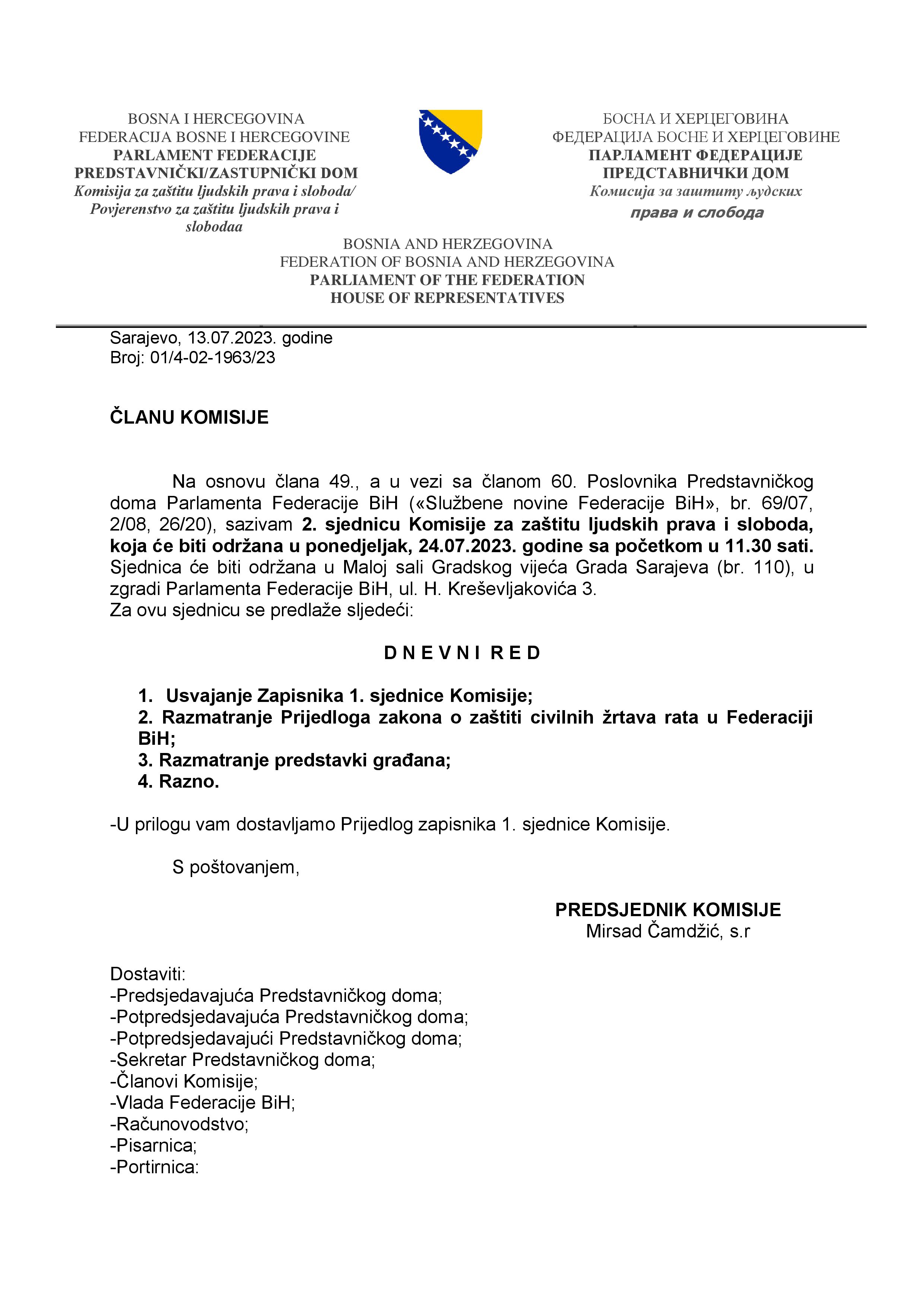 Obavještenje o održavanju 2.vanredne sjednice Zakonodavno-pravne komisije 05.07.2023 Najave Pročitaj više