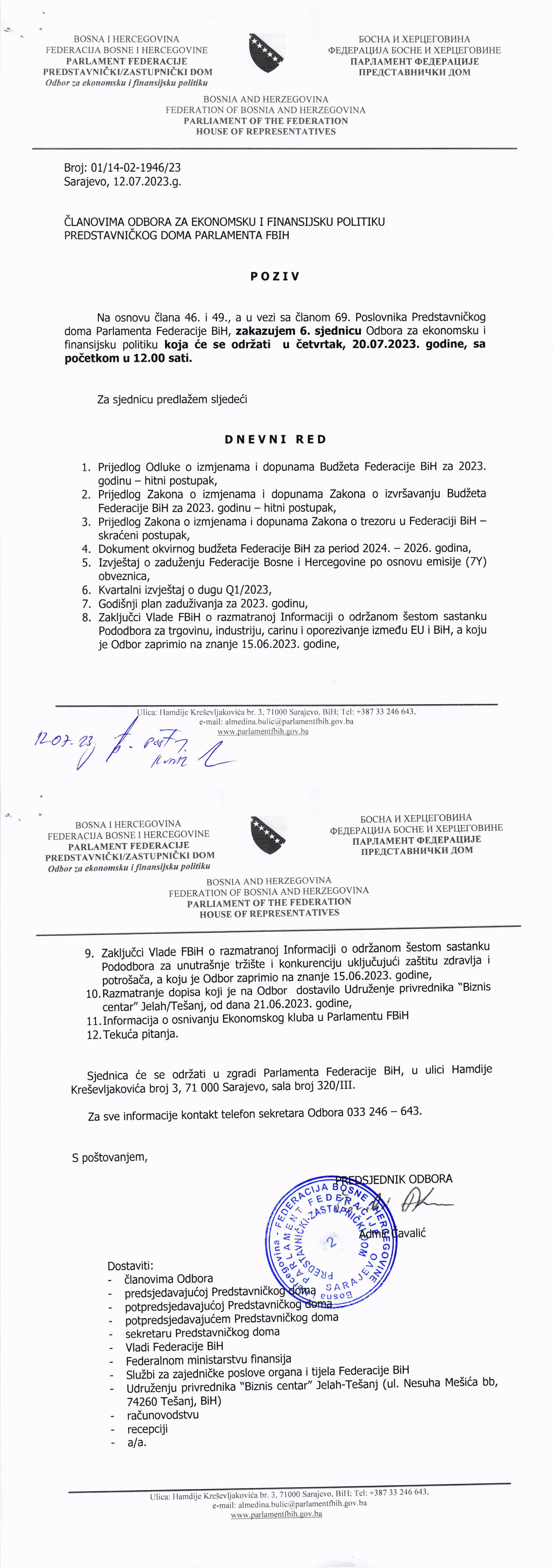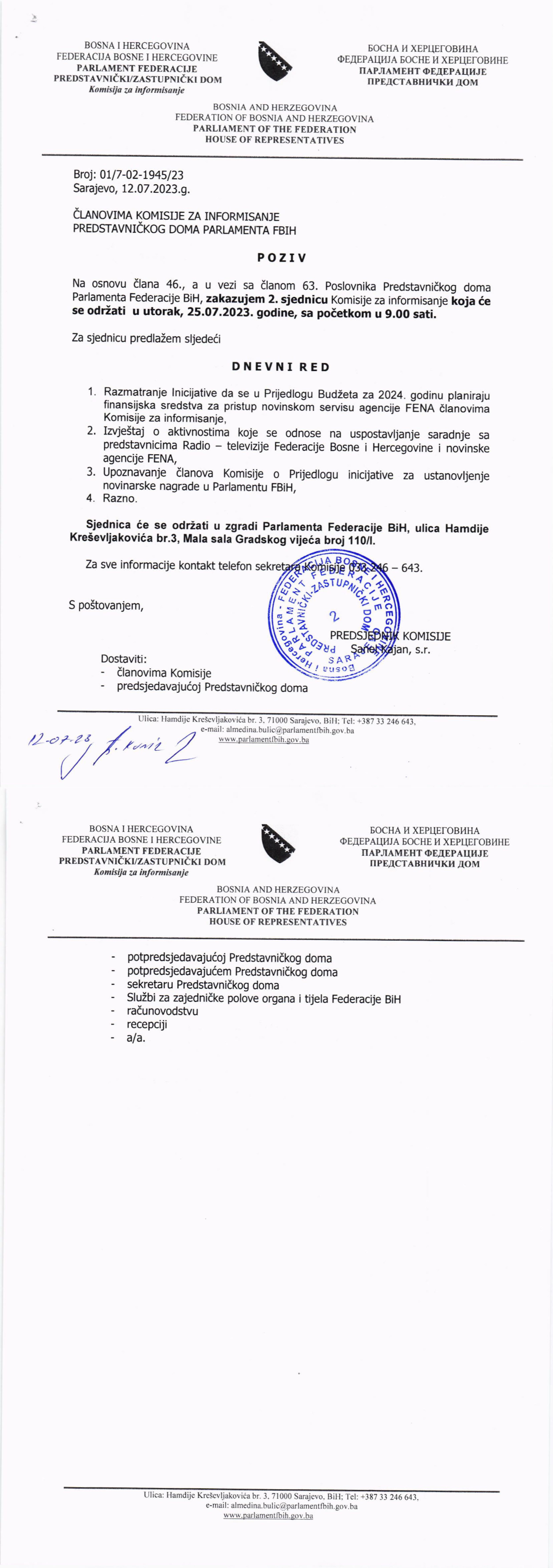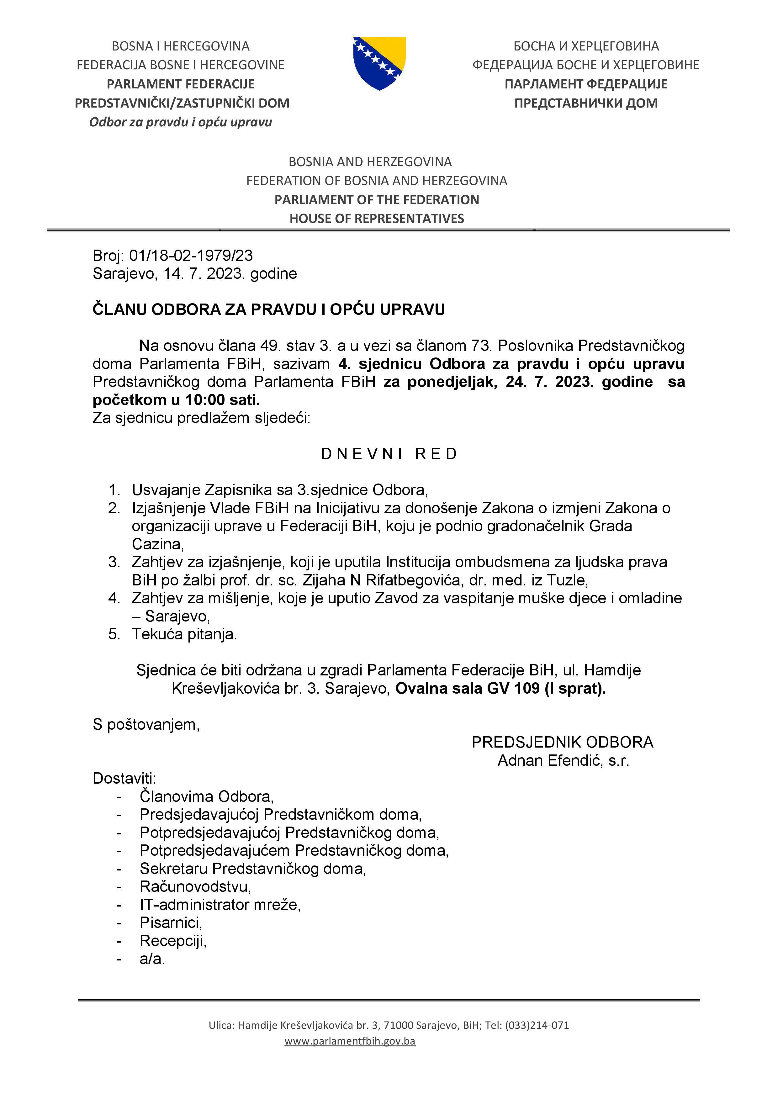 Obavještenje o održavanju 2.vanredne sjednice Zakonodavno-pravne komisije 05.07.2023 Najave Pročitaj više