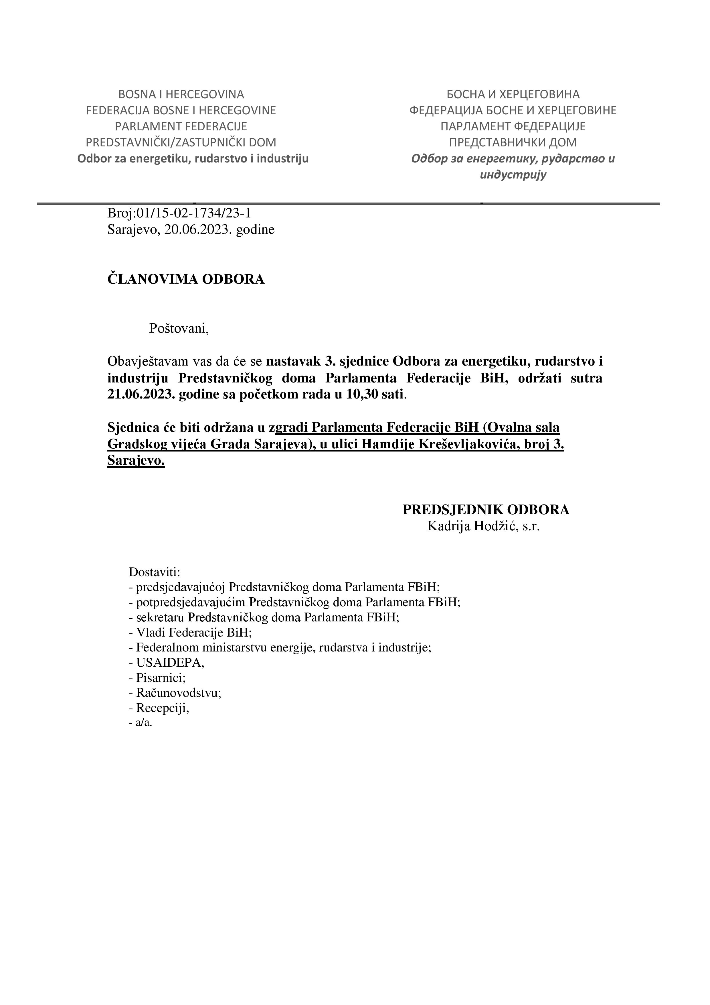 Obavijest o nastavku 3. sjednice Odbora za energetiku, rudarstvo i industriju 20.06.2023 Najave Pročitaj više