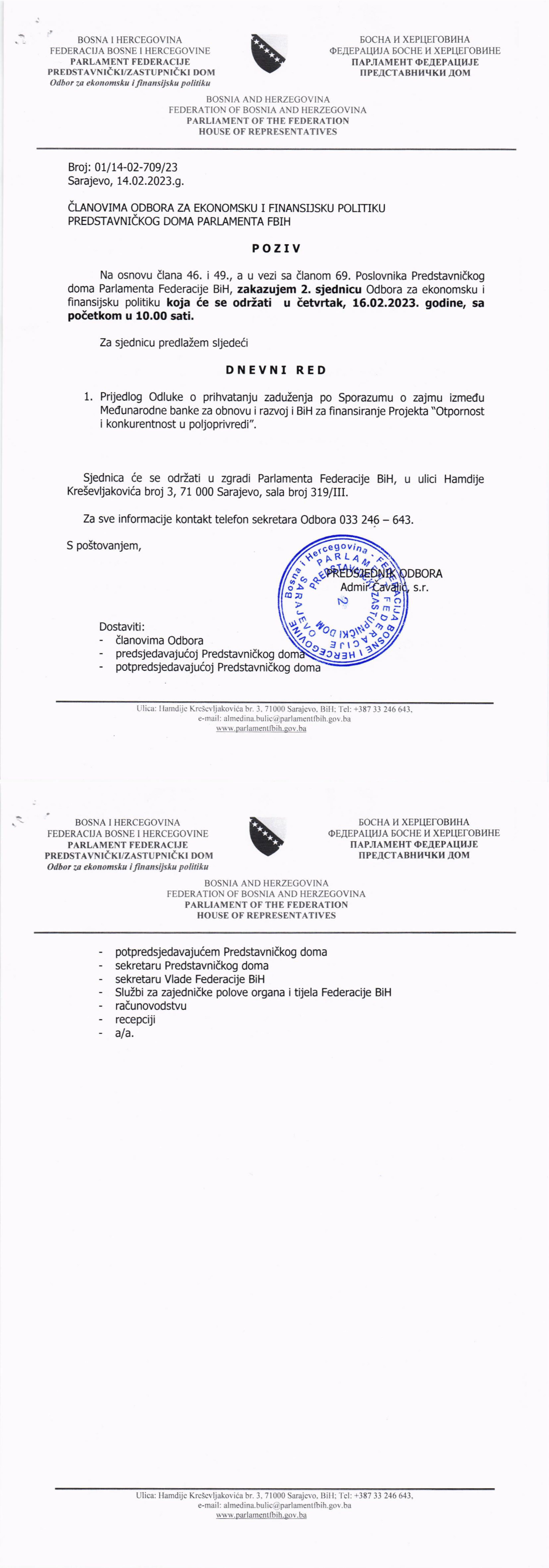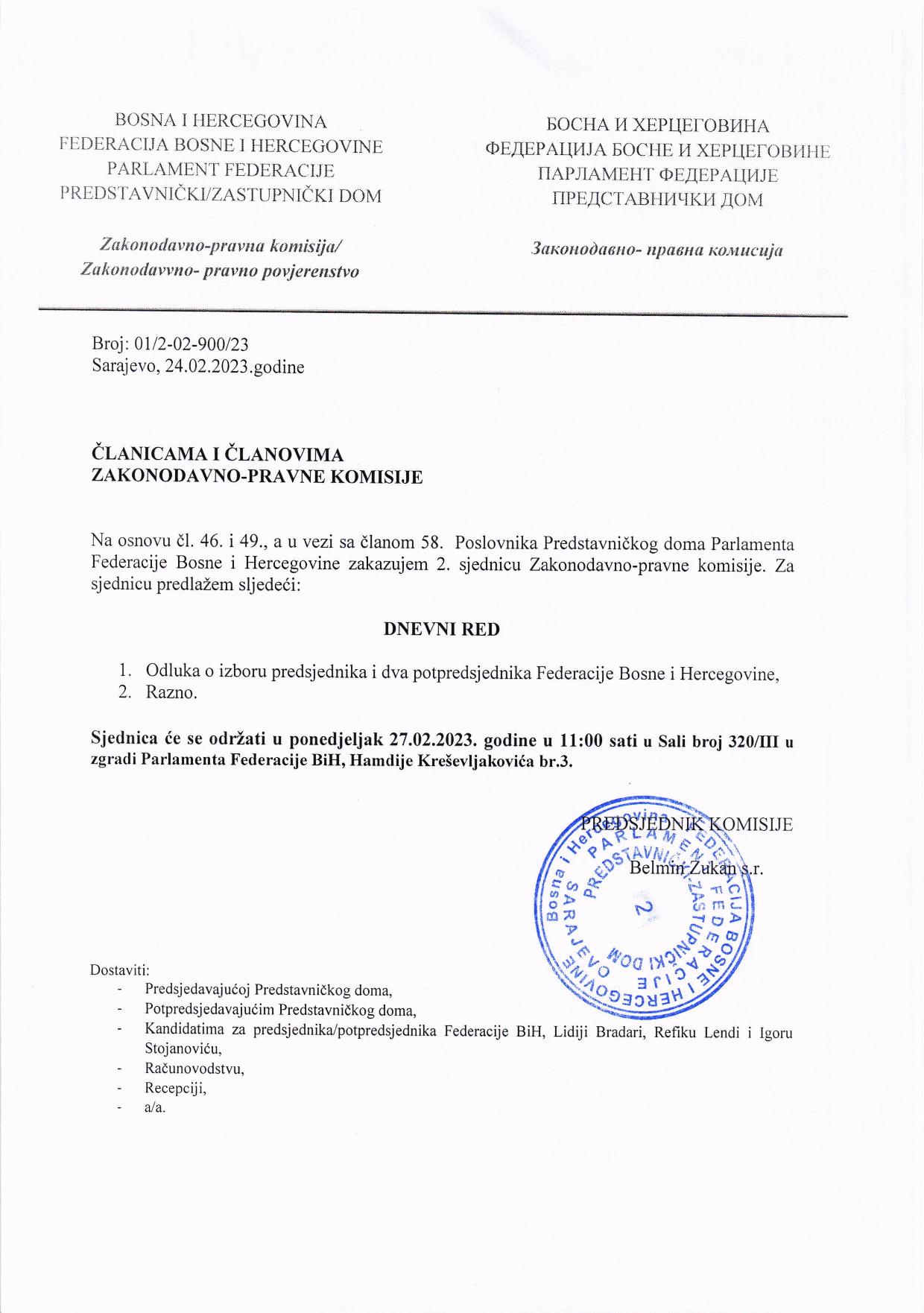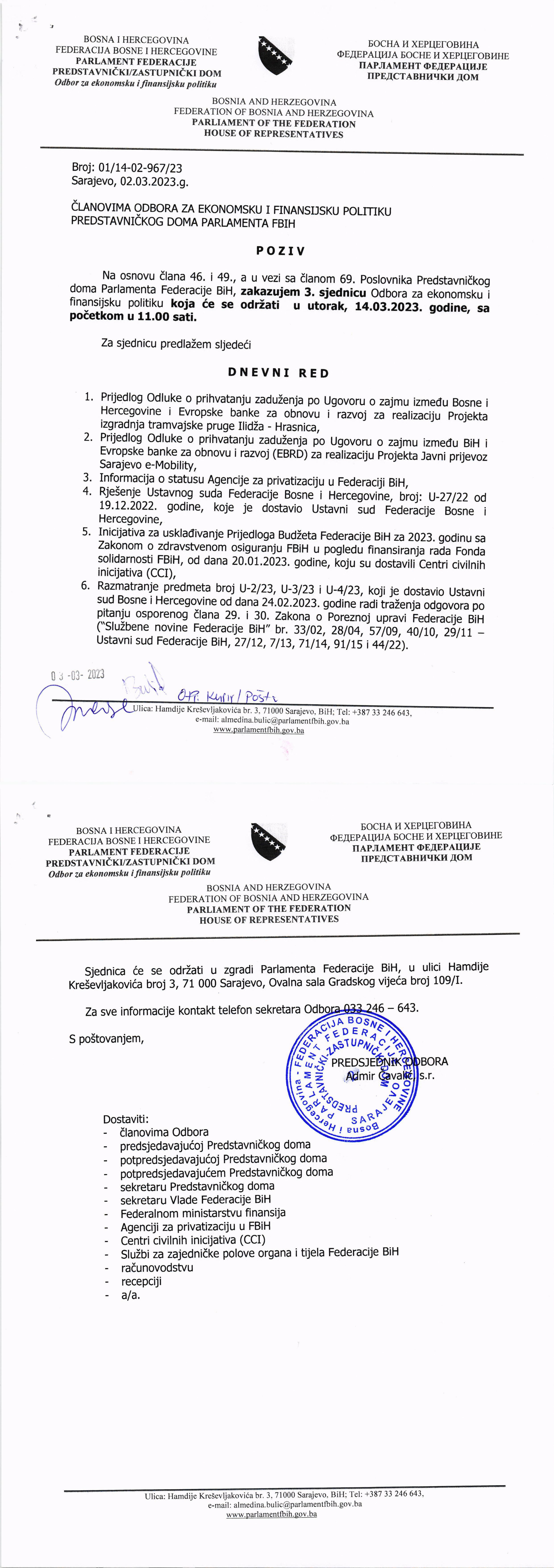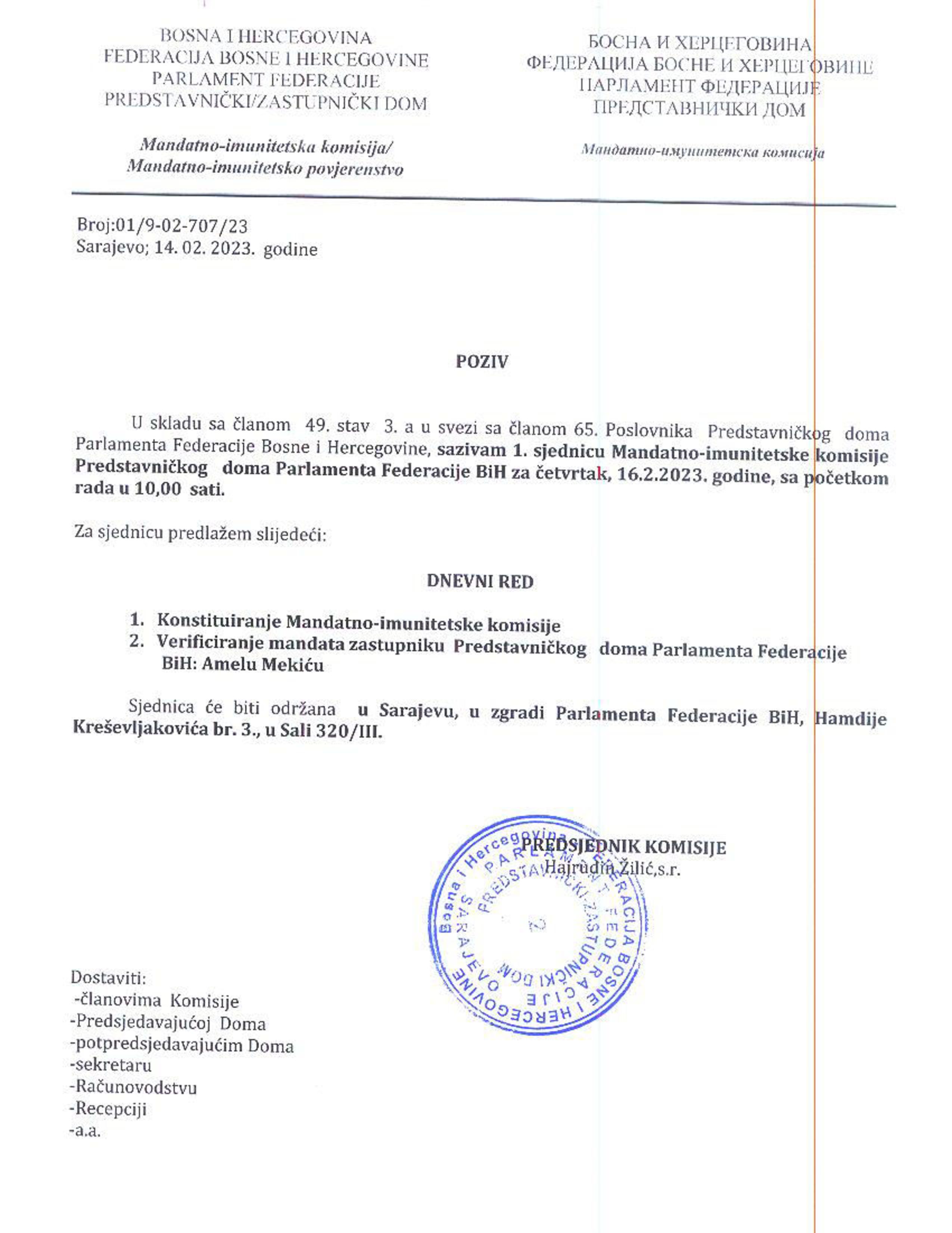 Poziv za 4. sjednicu Radne grupe za provođenje postupka izbora sudije Ustavnog suda BIH 01.02.2023 Najave Pročitaj više