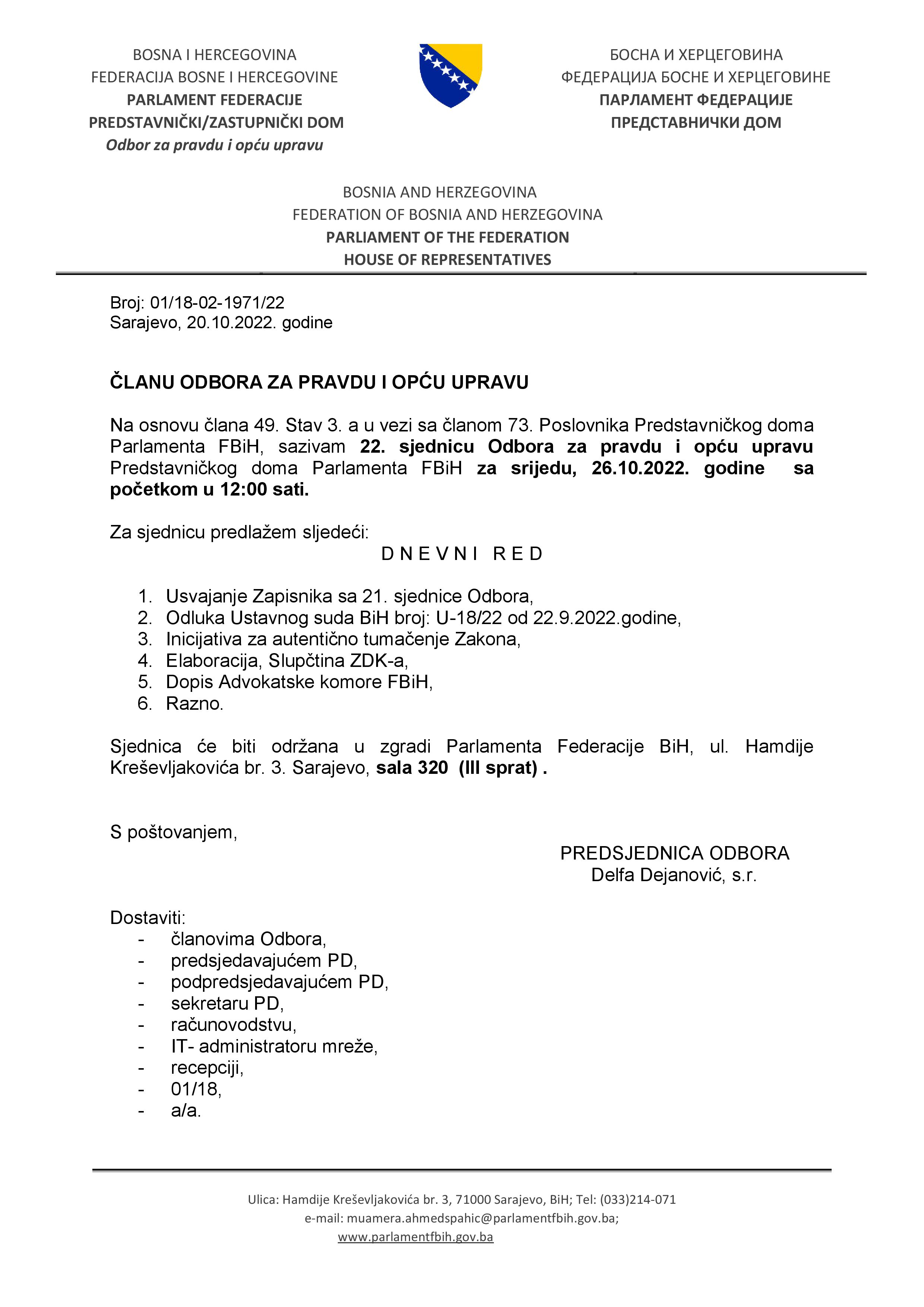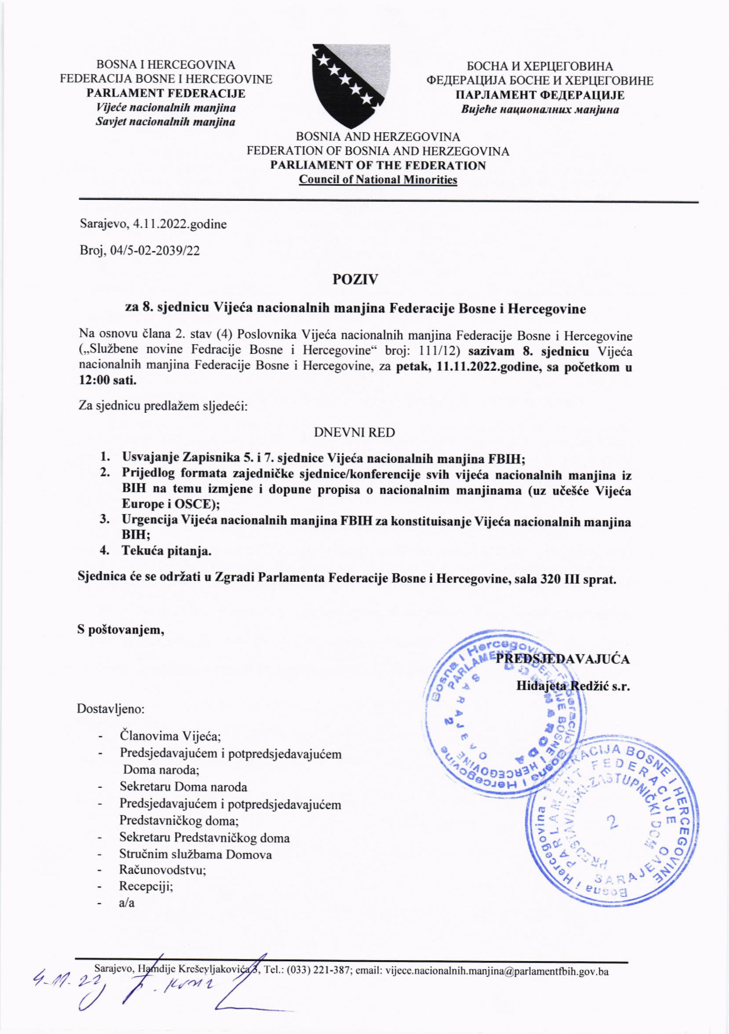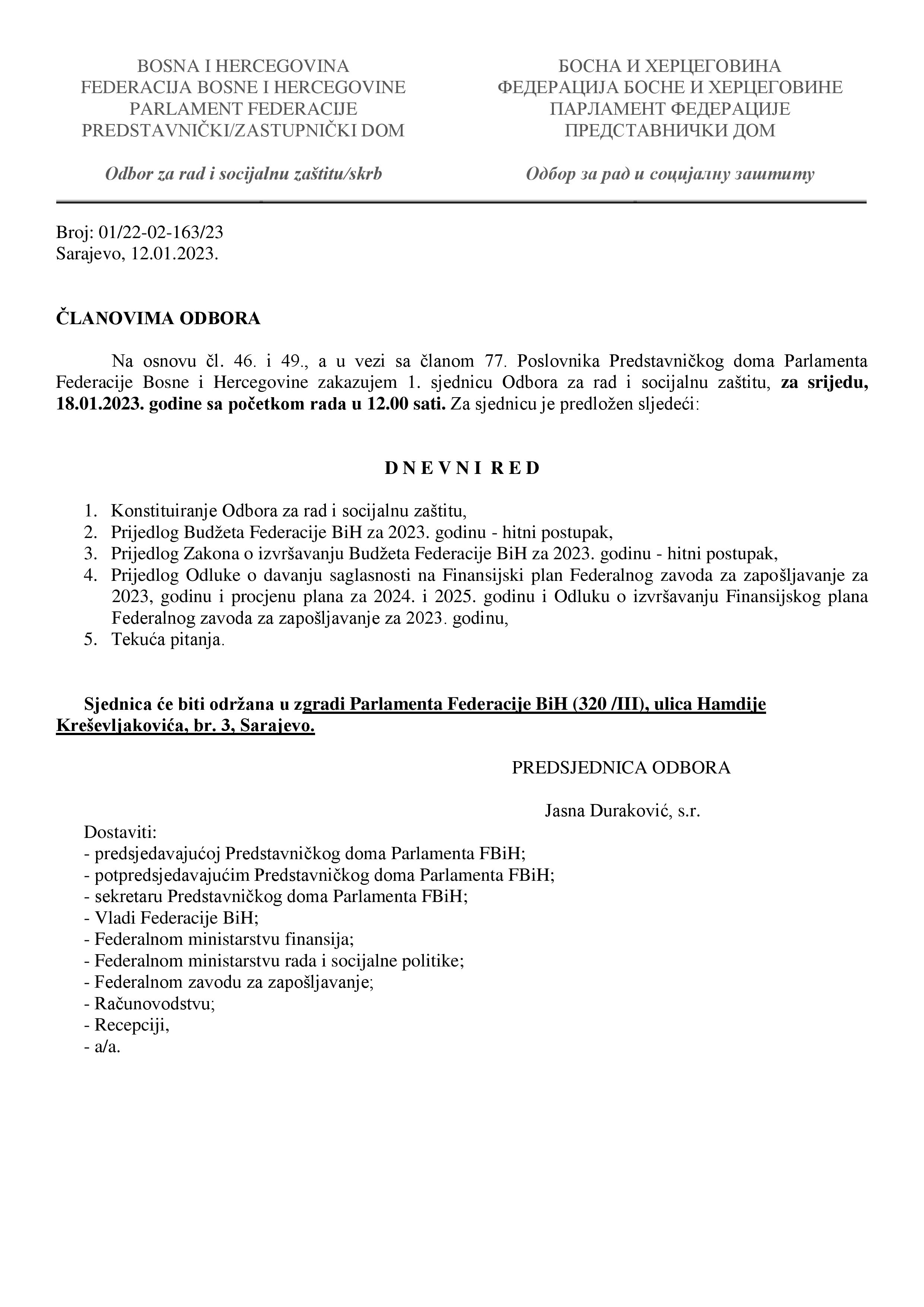 Poziv za nastavak 2. sjednice Privremene komisije za izbor i imenovanje 10.01.2023 Najave Pročitaj više