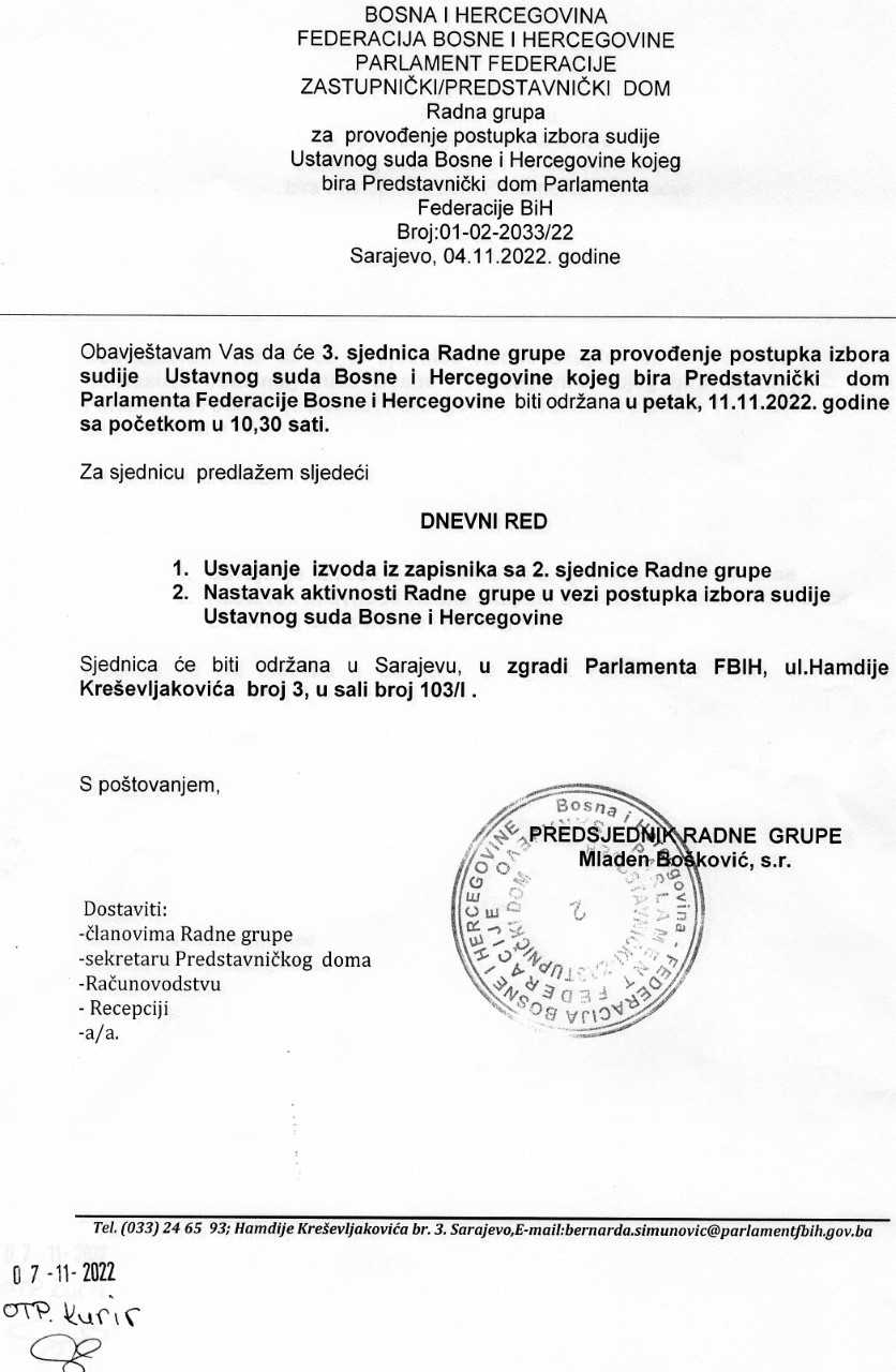 3. sjednica Radne grupe za provođenje postupka izbora sudije Ustavnog suda Bosne i Hercegovine 07.11.2022 Najave Pročitaj više