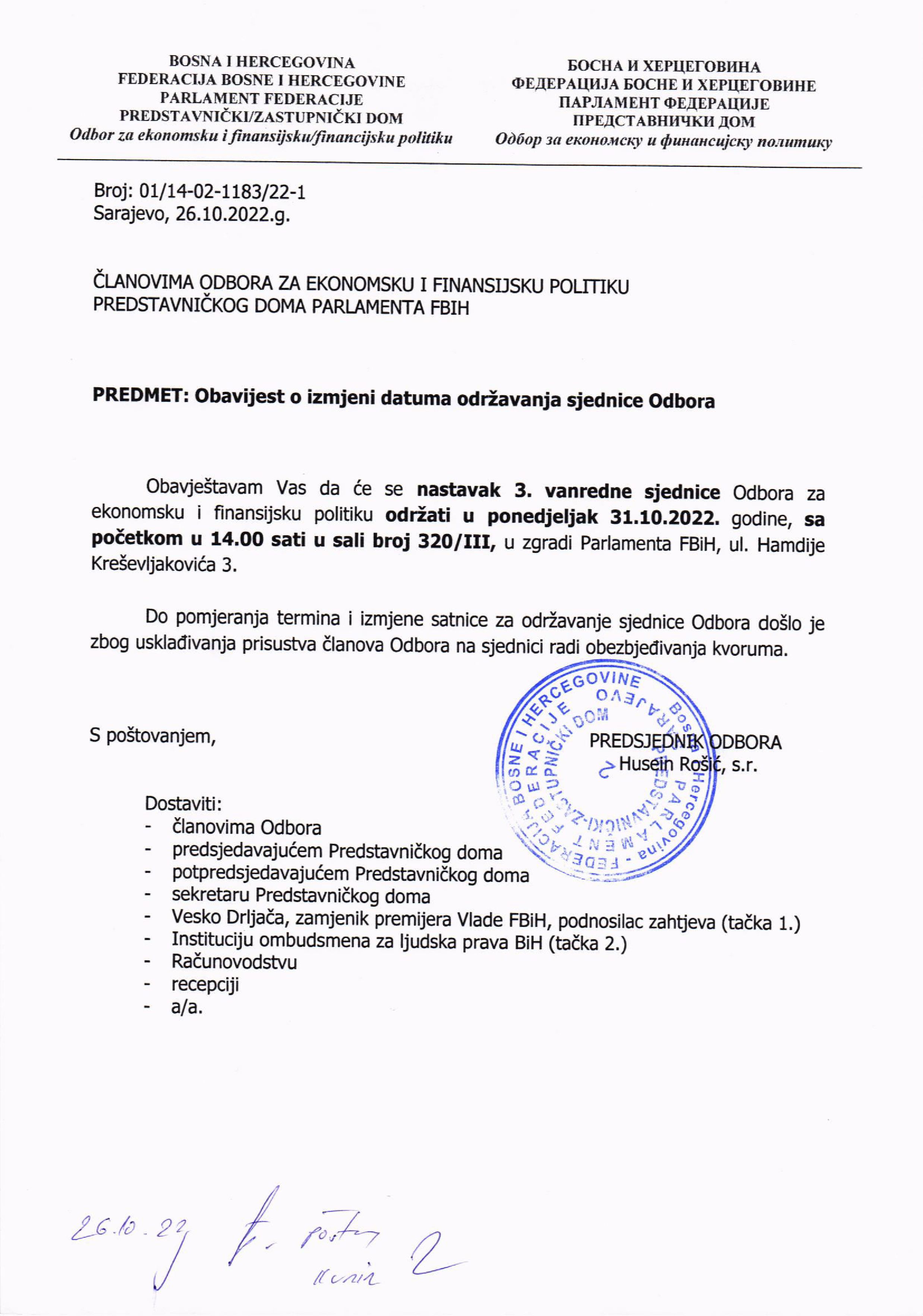Obavijest o izmjeni datuma održavanja 3. izvanredne sjednice Odbora za ekonomsku i financijsku politiku 26.10.2022 Najave HR Pročitaj više
