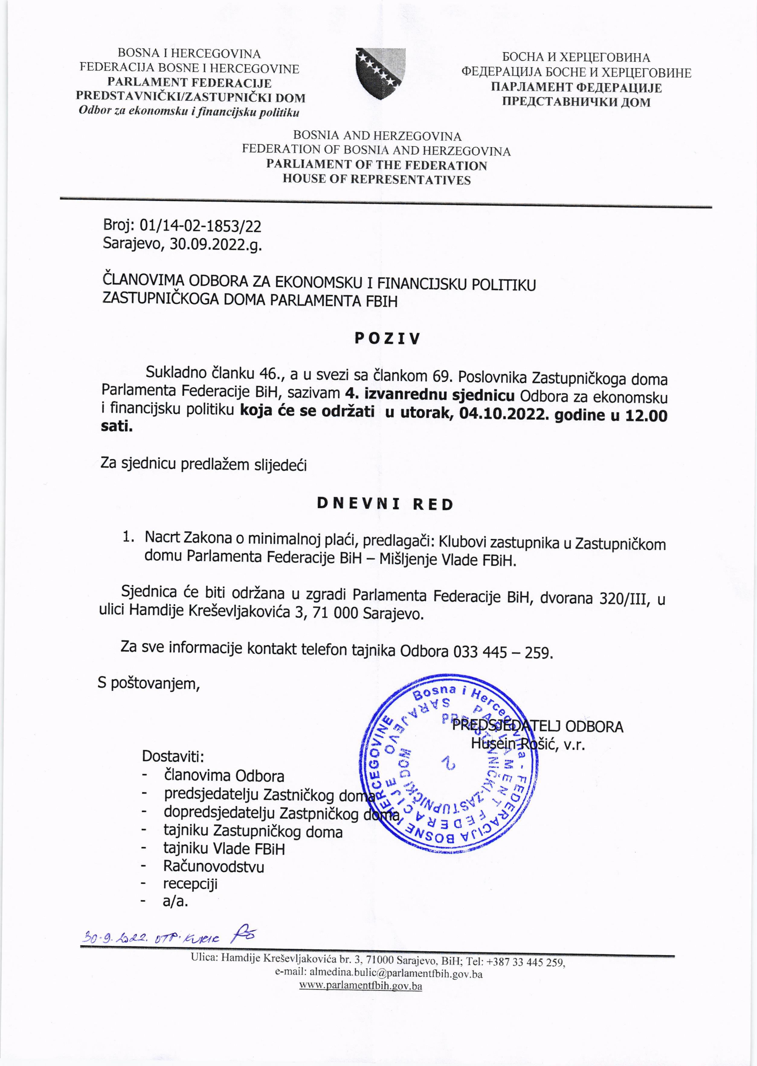 Poziv za 4. vanrednu sjednicu Odbora za ekonomsku i financijsku politiku 30.09.2022 Najave HR Pročitaj više