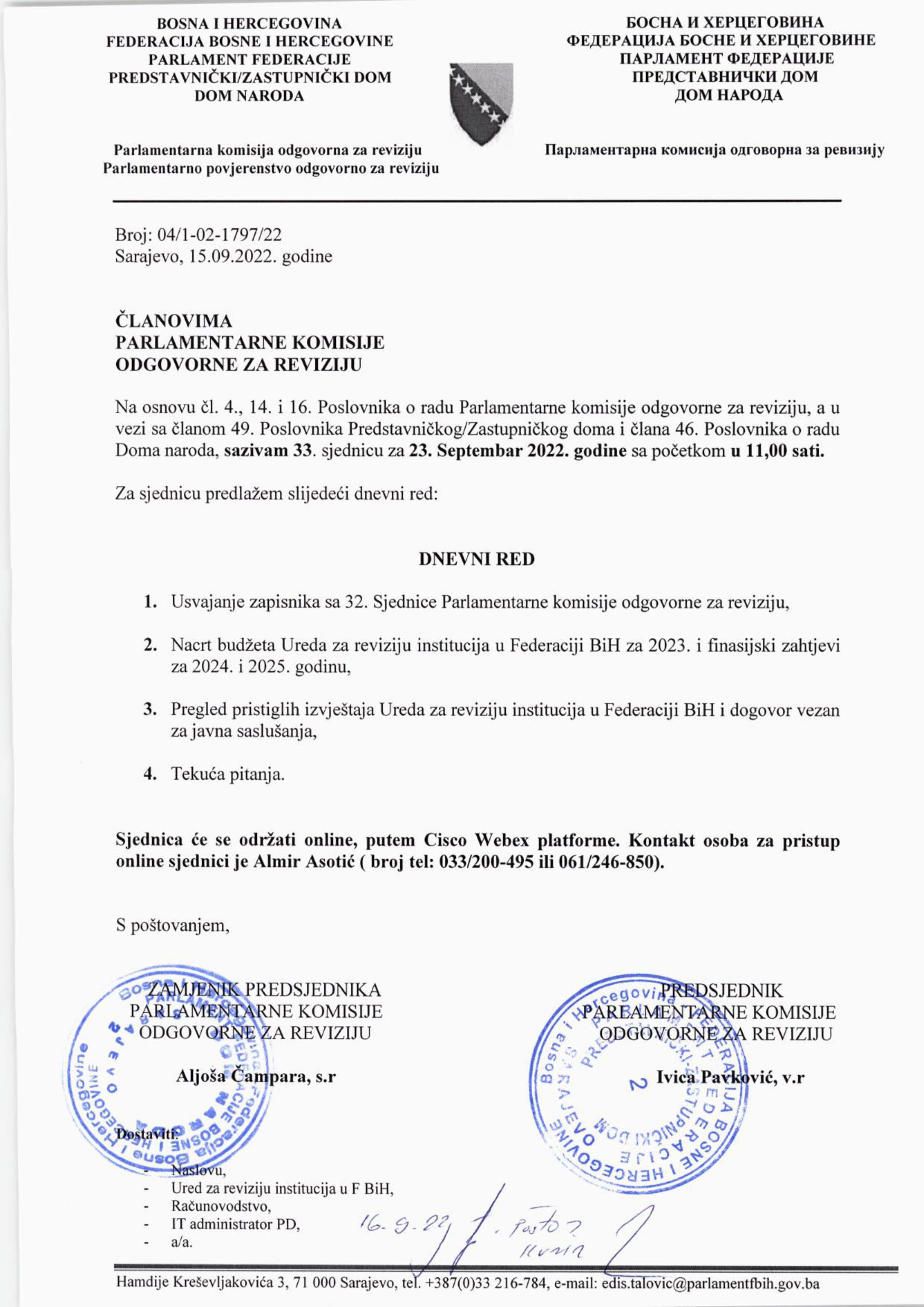 Poziv za 33. sjednicu Parlamentarnog povjerenstva odgovornog za reviziju 16.09.2022 Najave HR Pročitaj više