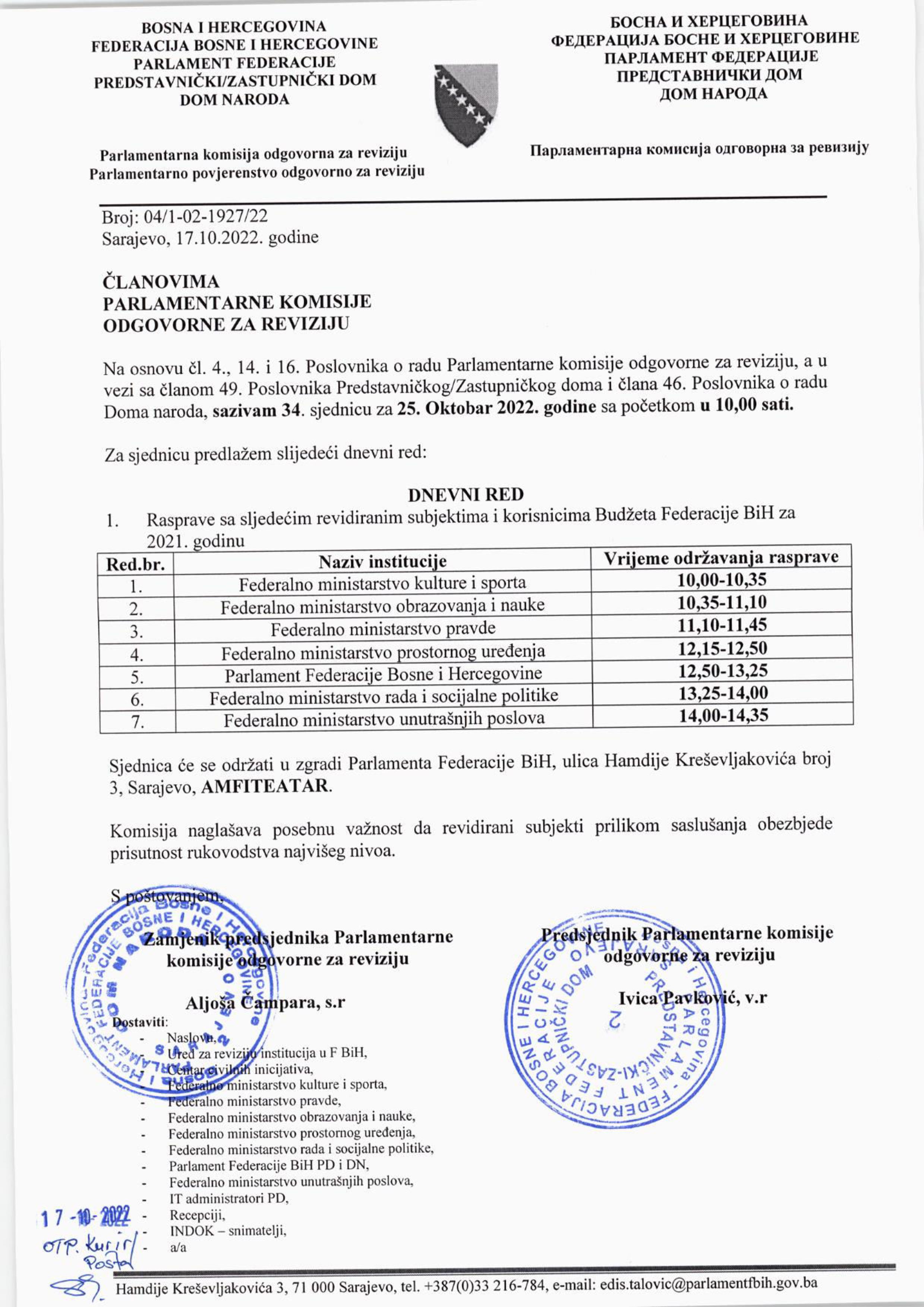 Poziv za 34. sjednicu Parlamentarnog povjerenstva odgovornog za reviziju 17.10.2022 Najave HR Pročitaj više