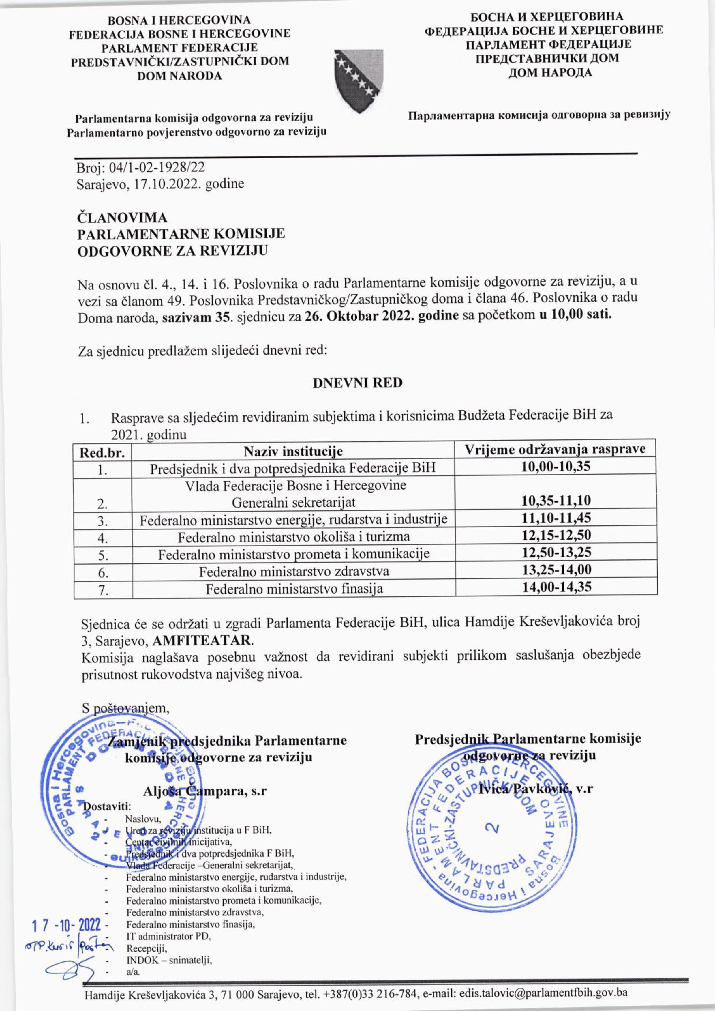Poziv za 35. sjednicu Parlamentarnog povjerenstva odgovornog za reviziju 17.10.2022 Najave HR Pročitaj više