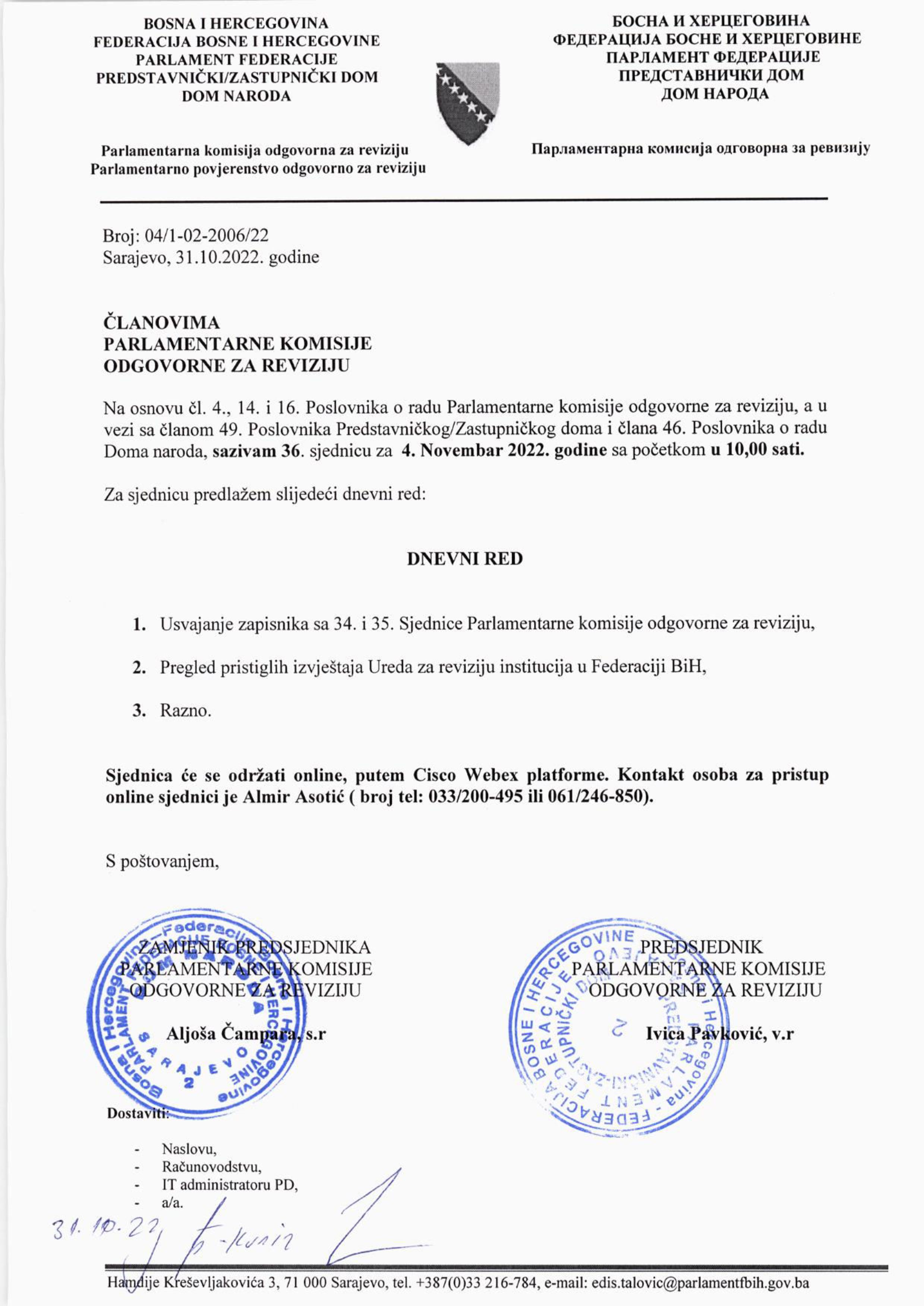 Poziv na 36. sjednicu Parlamentarnog povjerenstva odgovornog za reviziju 31.10.2022 Najave HR Pročitaj više