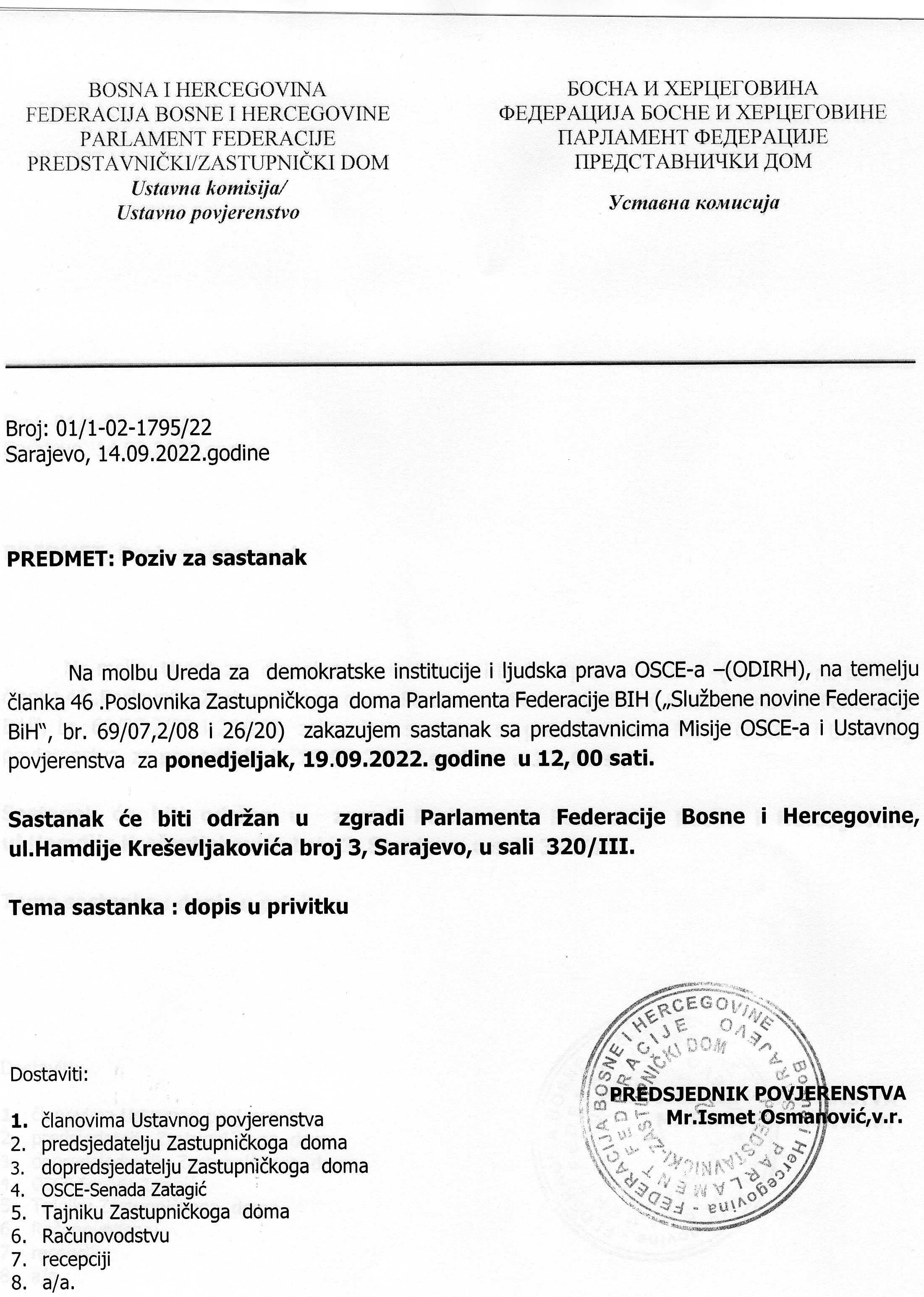 Sastanak Ustavnog povjerenstva sa misijom OSCE-a