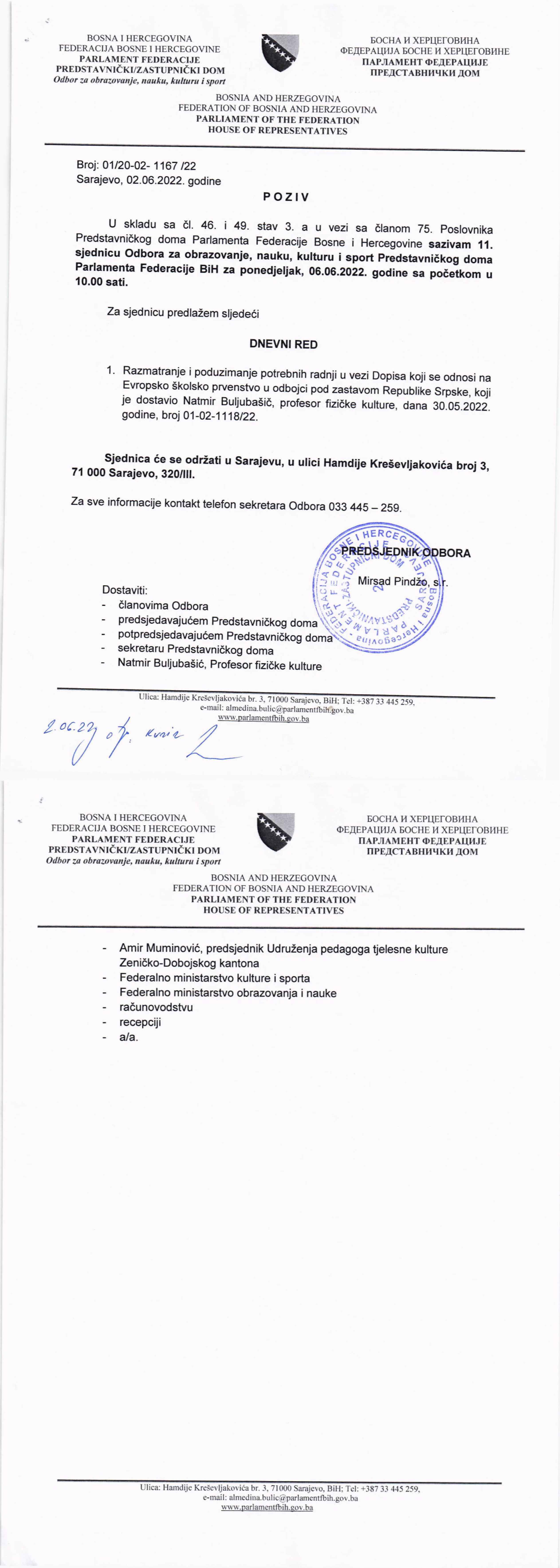 Poziv za 11. sjednicu Odbora za obrazovanje, nauku kulturu i sport 02.06.2022 Najave HR Pročitaj više