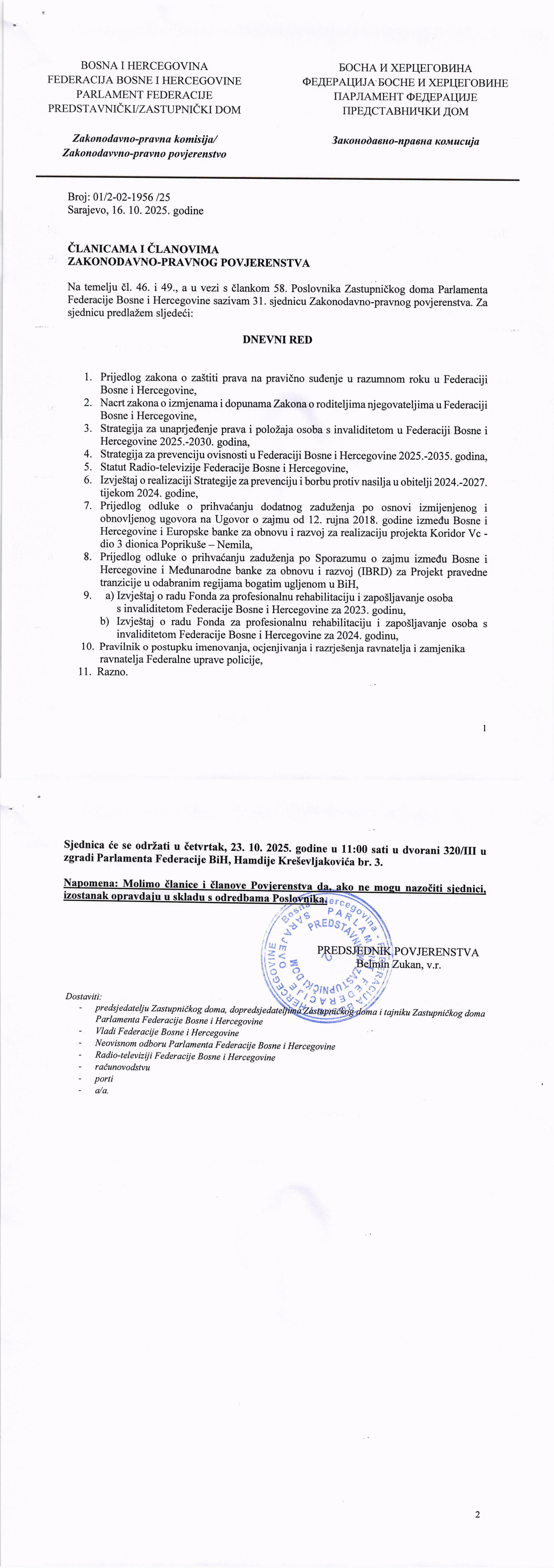 | Kontakt | Tajnik Zakonodavno-pravnog povjerenstva ----- Tel: 033/209-720 |